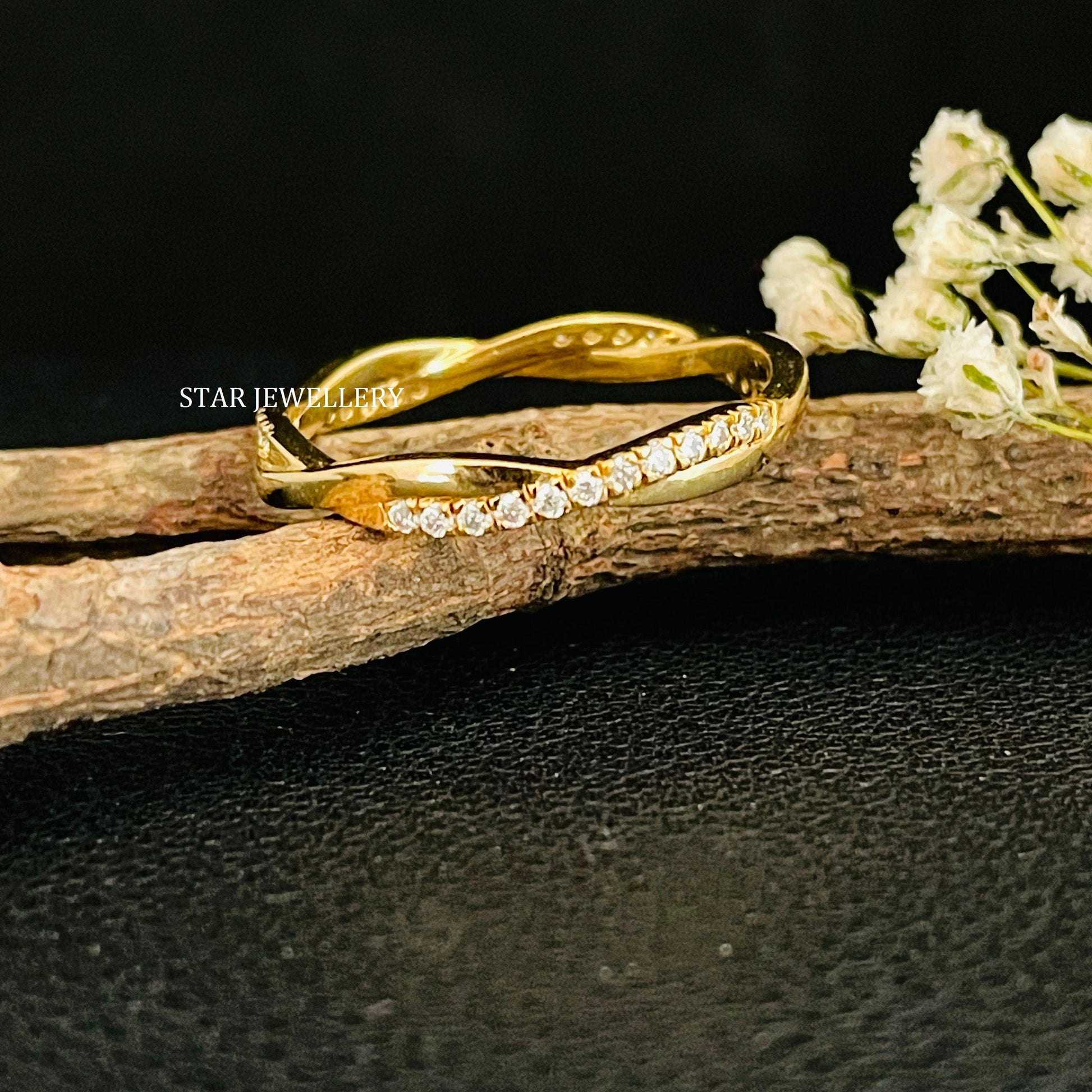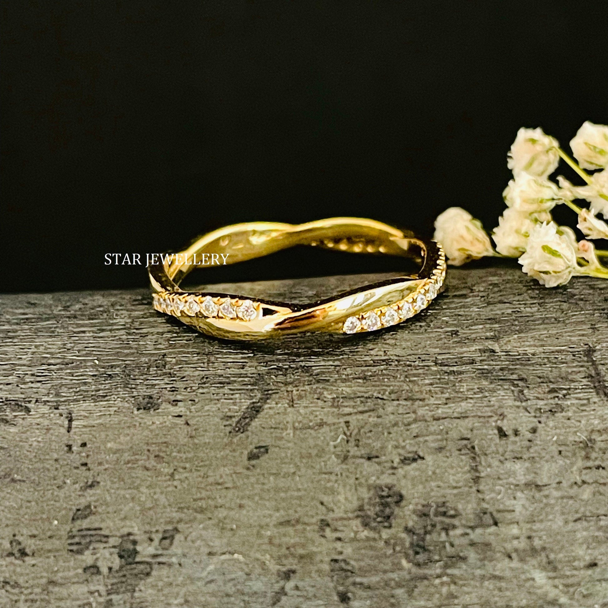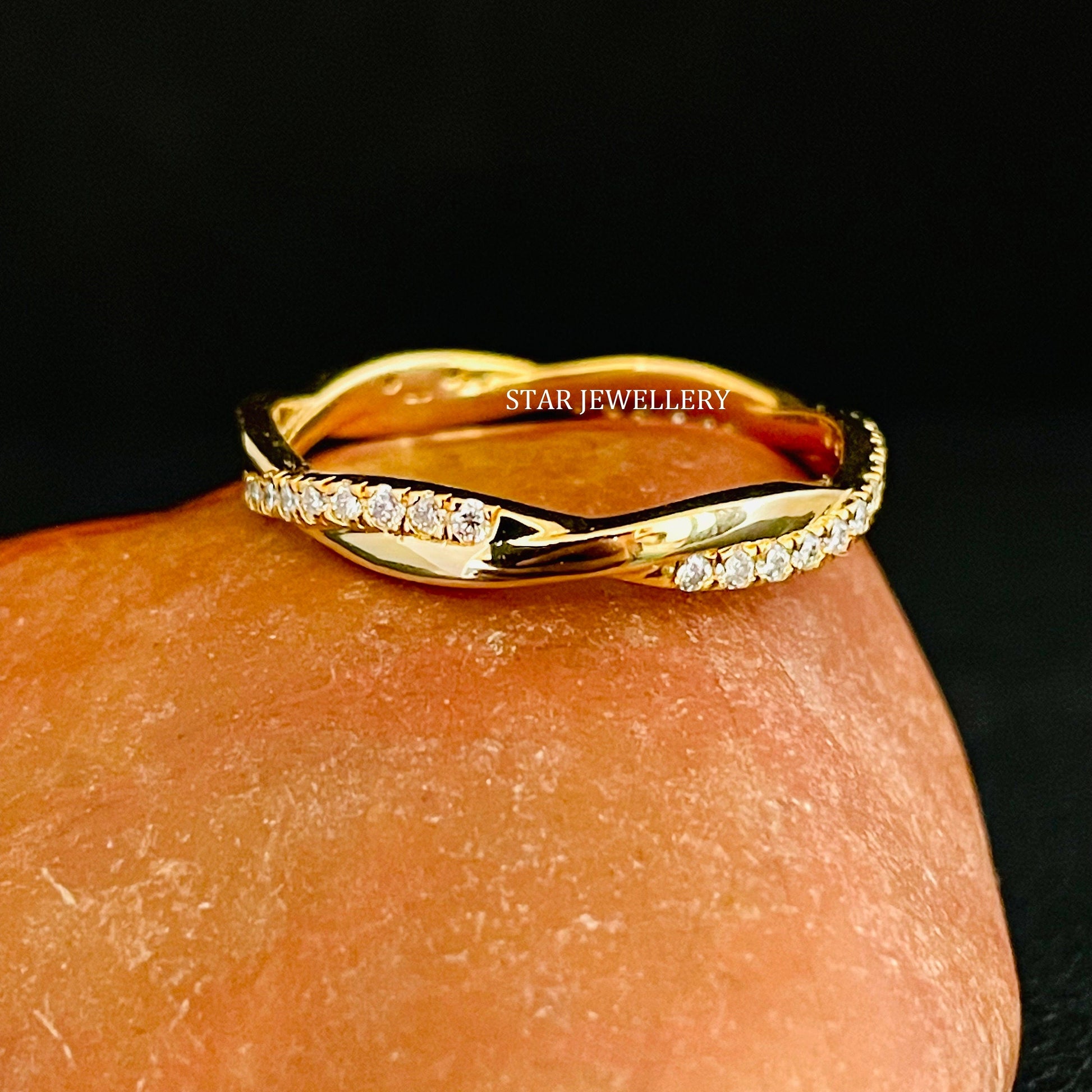 Diamond Twist Ring, Twist Diamond Infinity Eternity Wedding Ring, Rose Gold Infinity Ring, 14K Gold Thin Eternity Infinity Wedding Band Ring