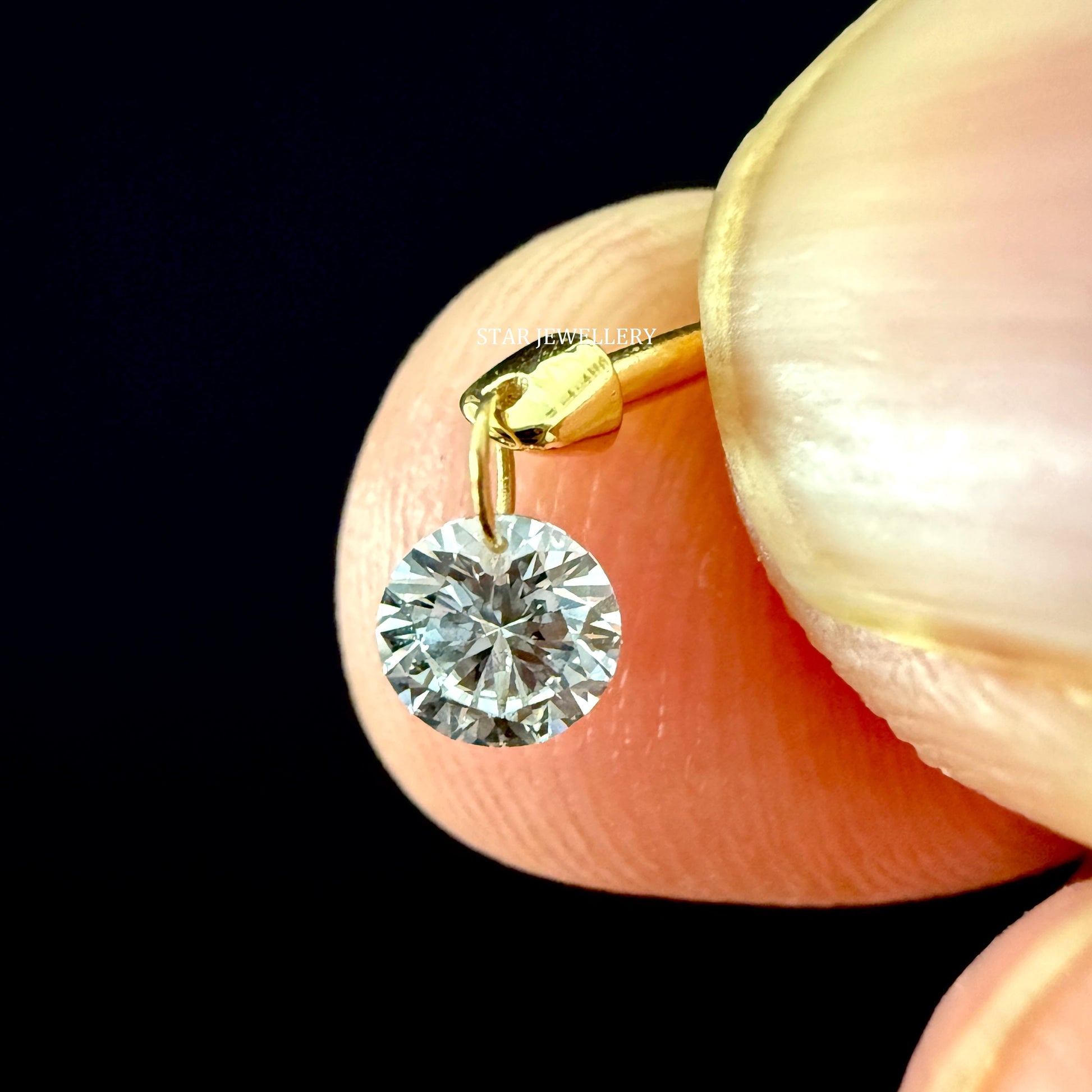 Floating Round Diamond Stud Earring, Floating Lab Grown Round Diamond Solid Gold Stud Earring with 16g , 18g flat Back Threaded Post fro her