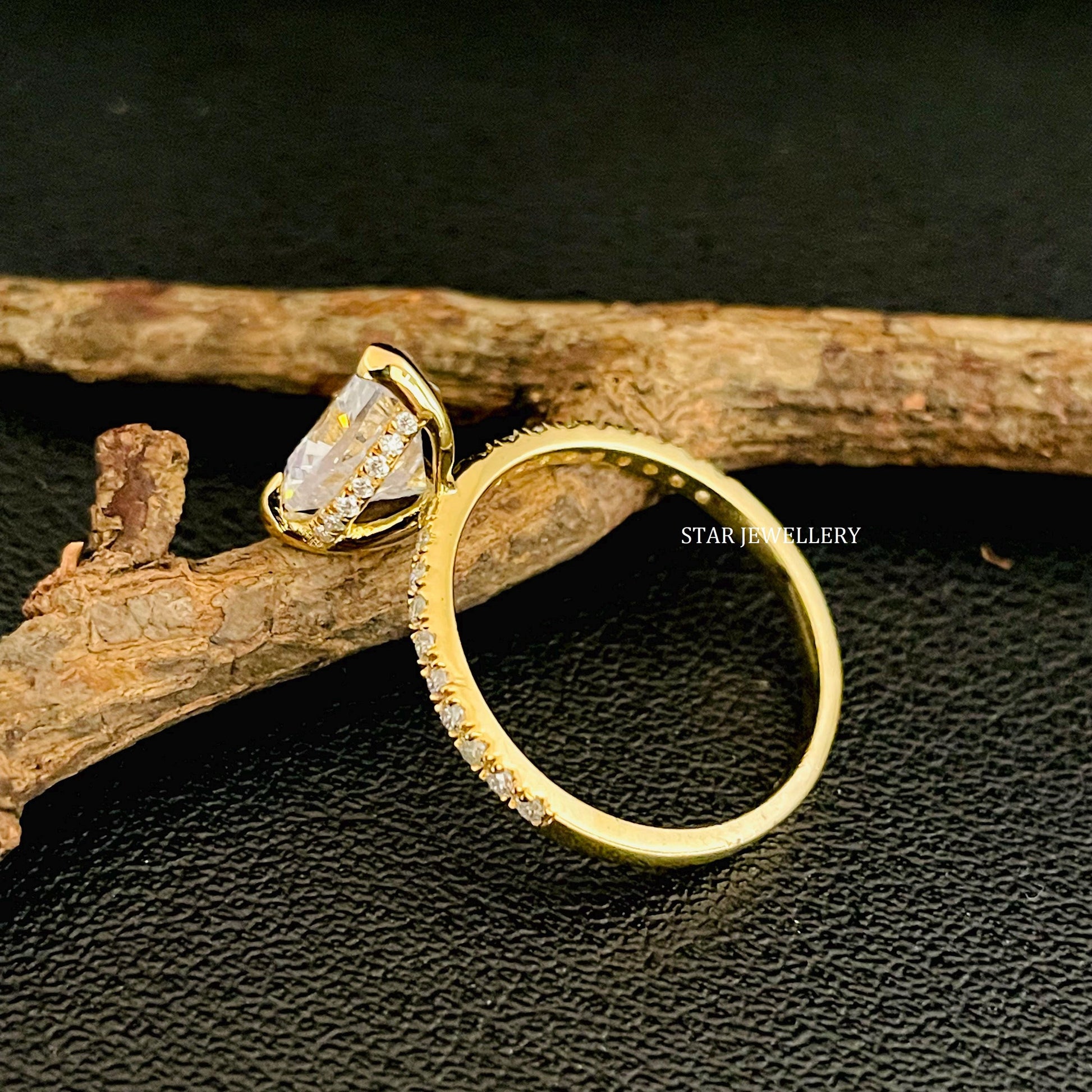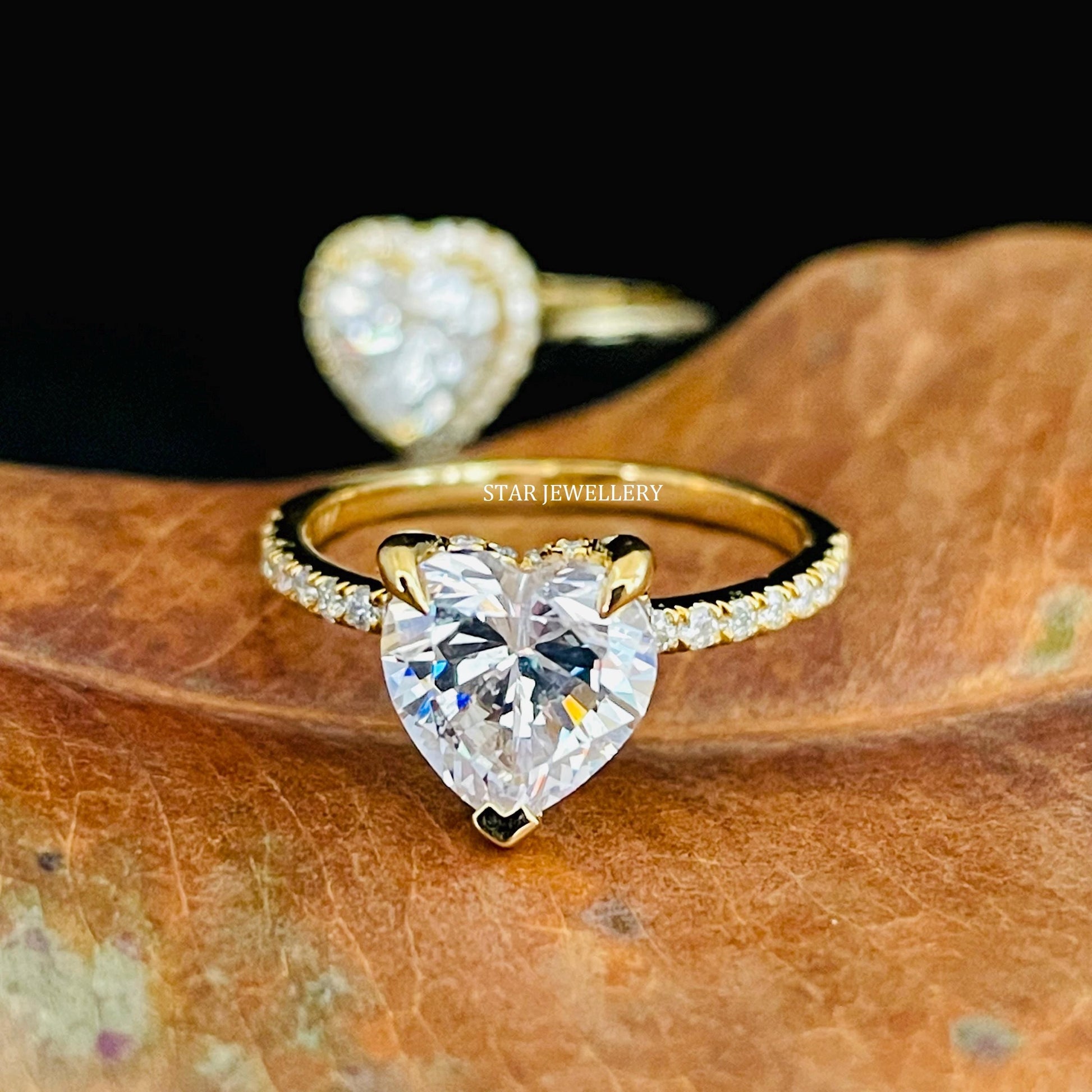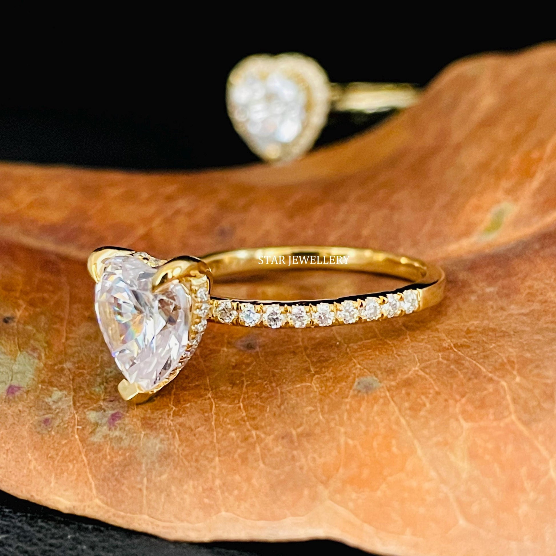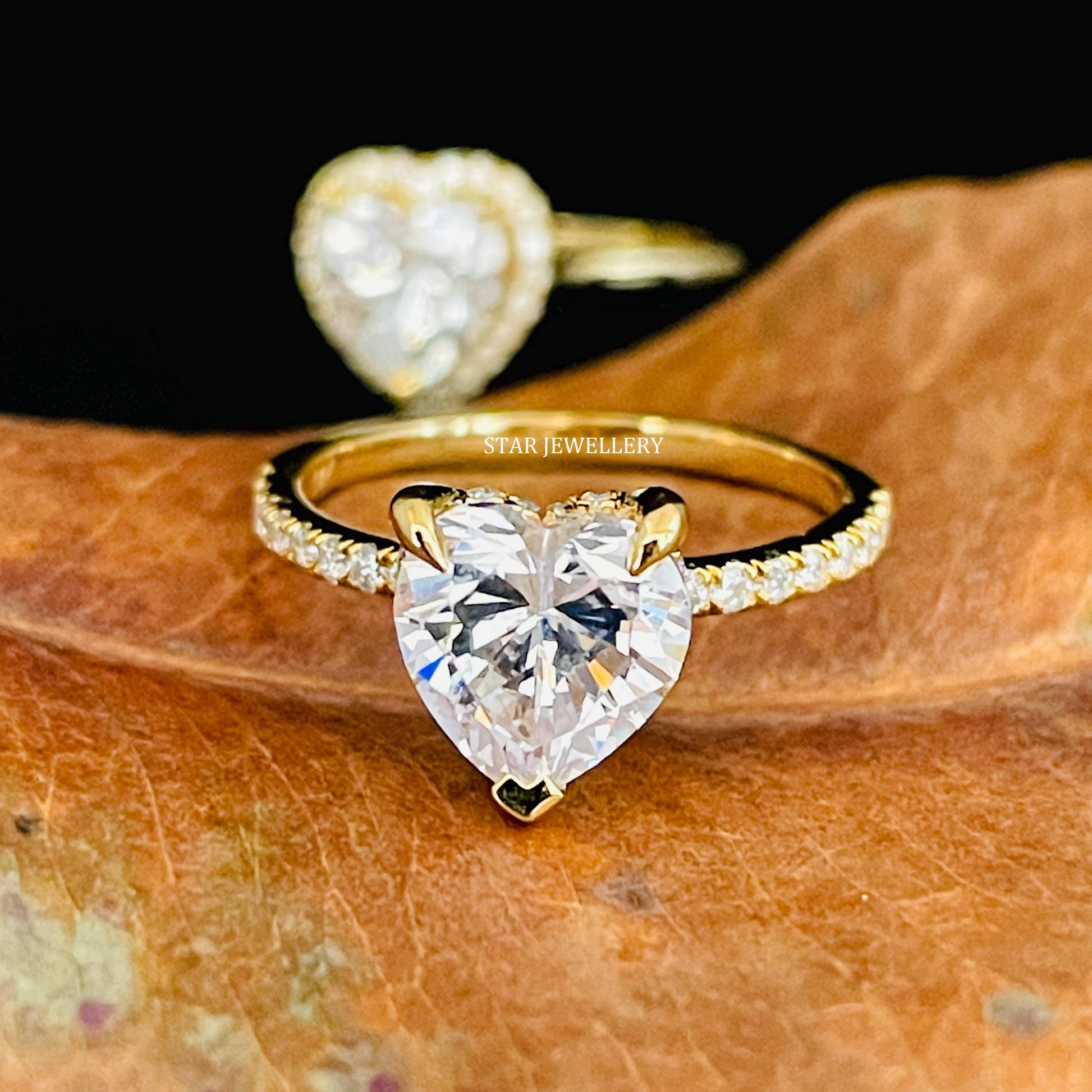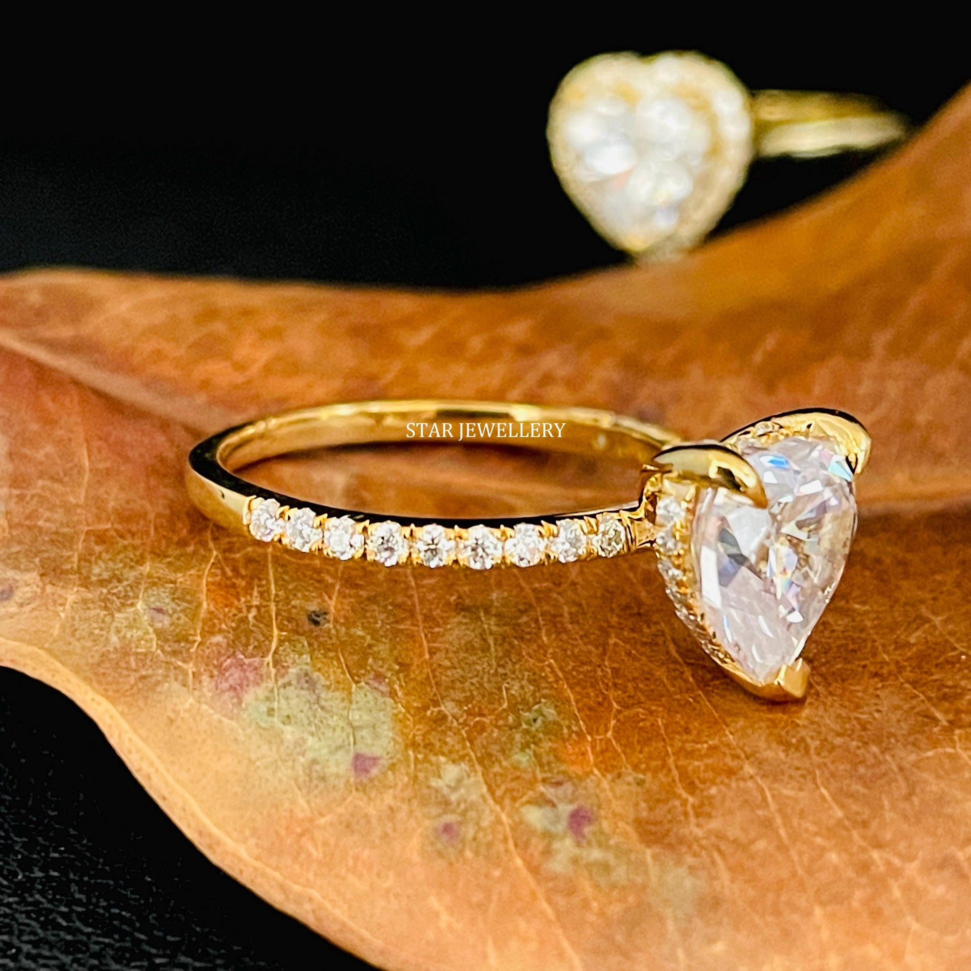 Heart Cut Lab Diamond Hidden Halo Engagement Ring, IGI Certified 1.0 - 2.0 Ct Heart Cut Lab Grown Ring with Studded Shank, Promise Ring for her, Gift for her