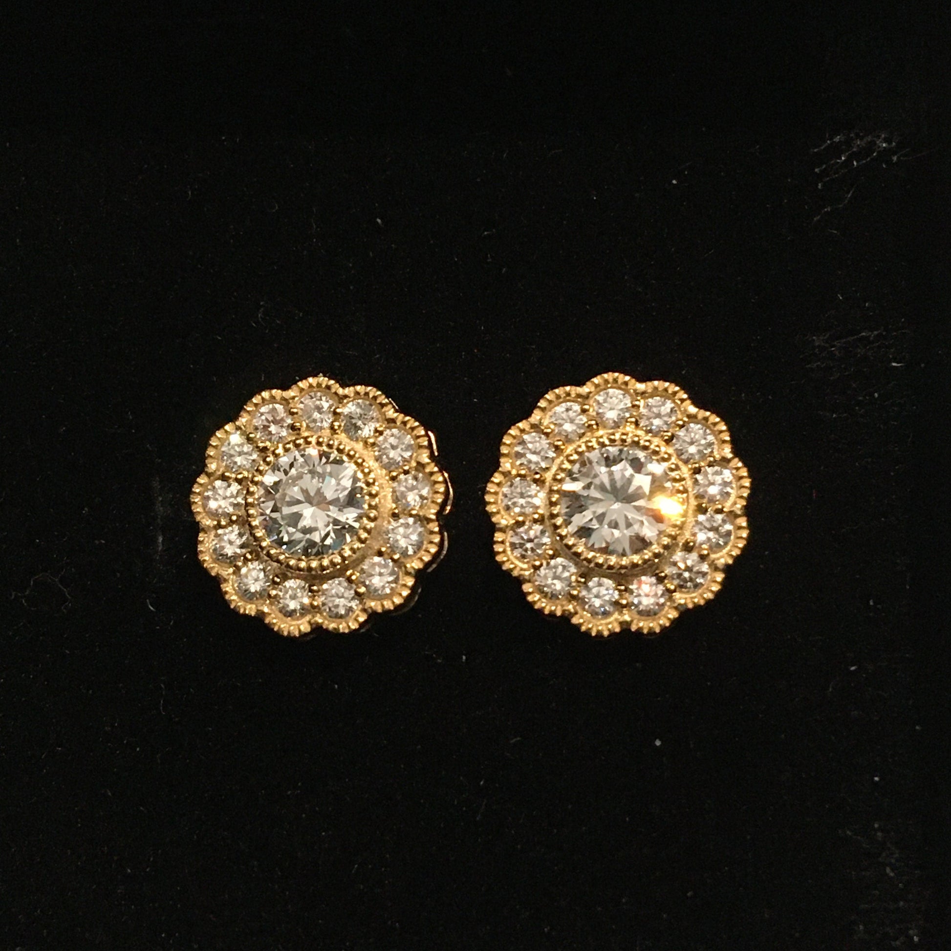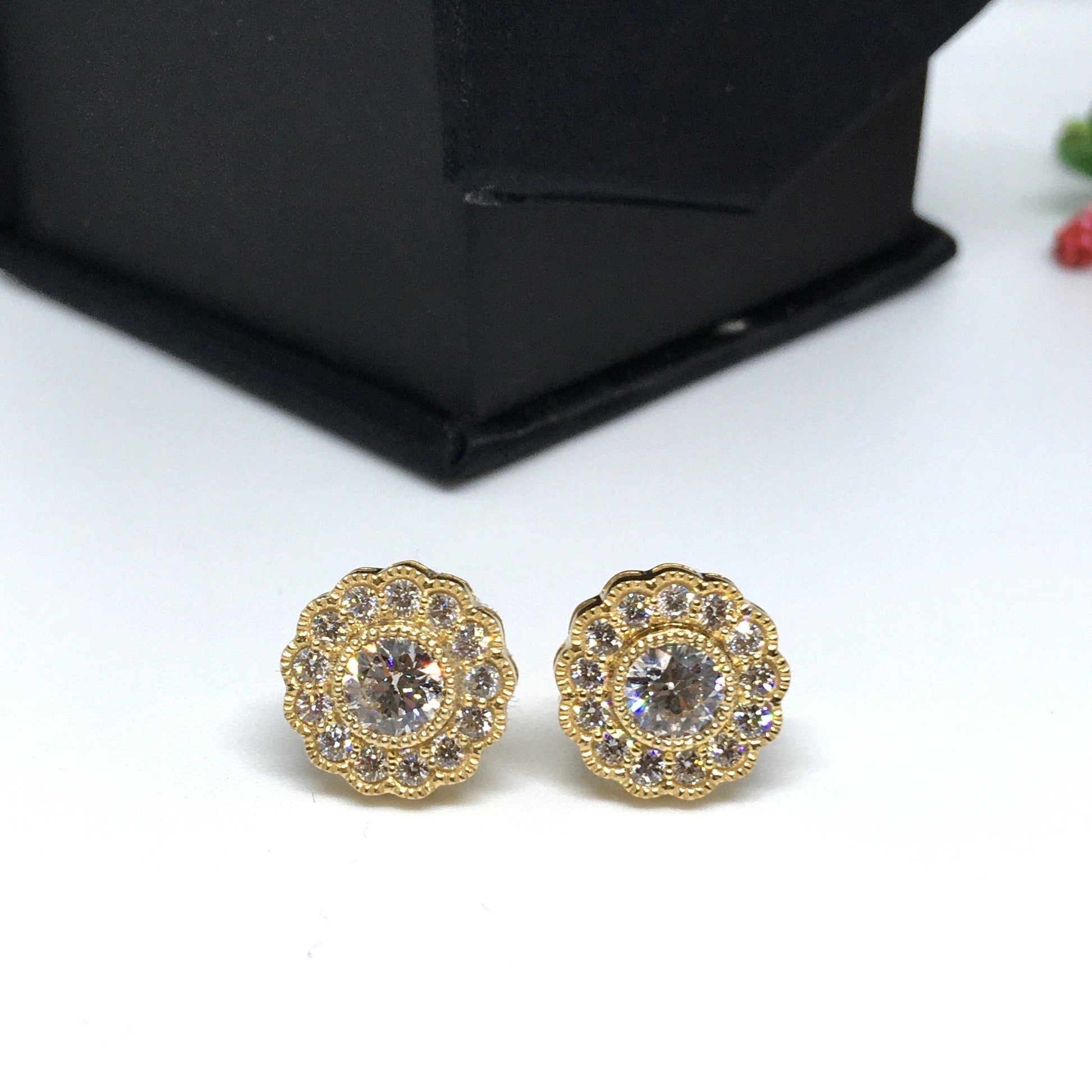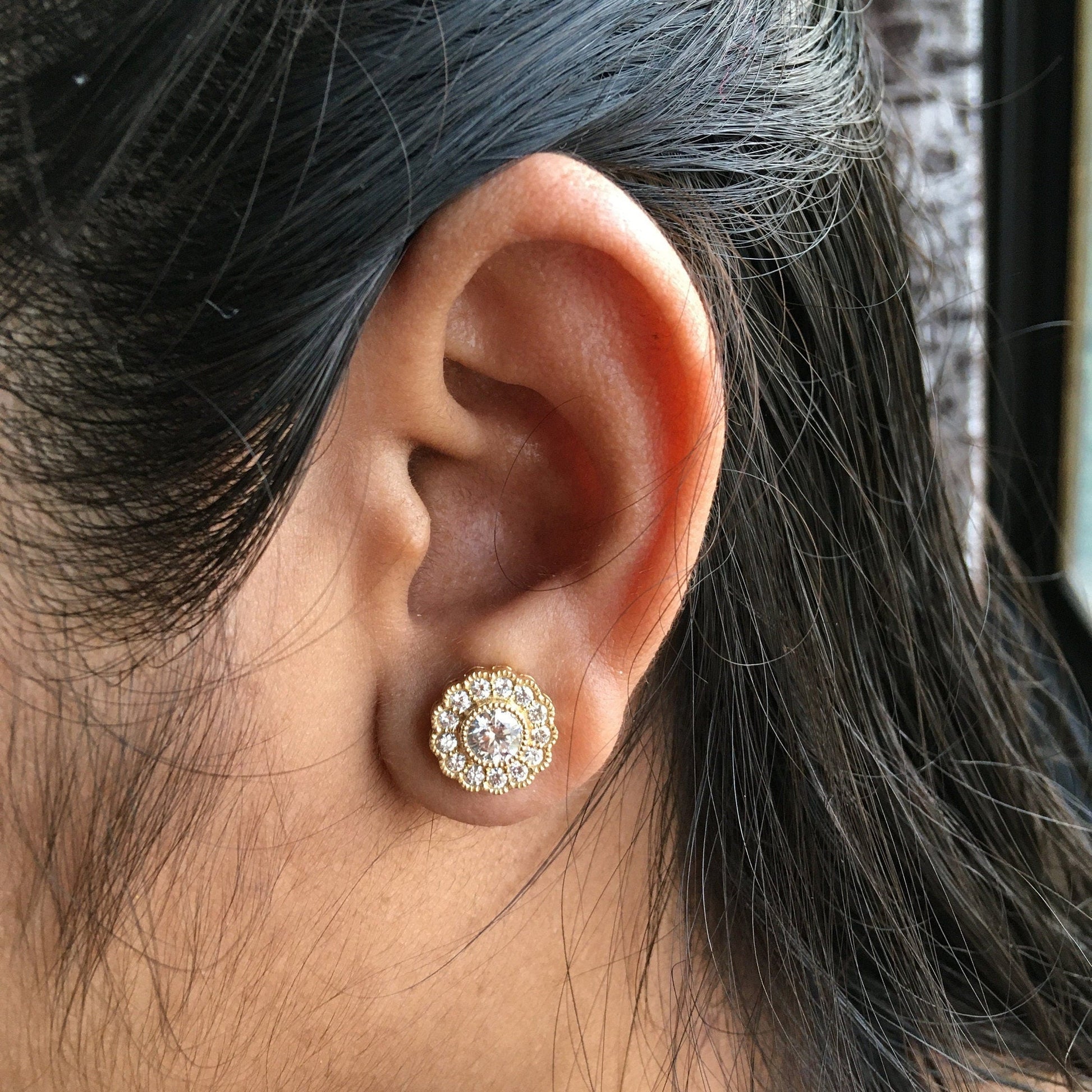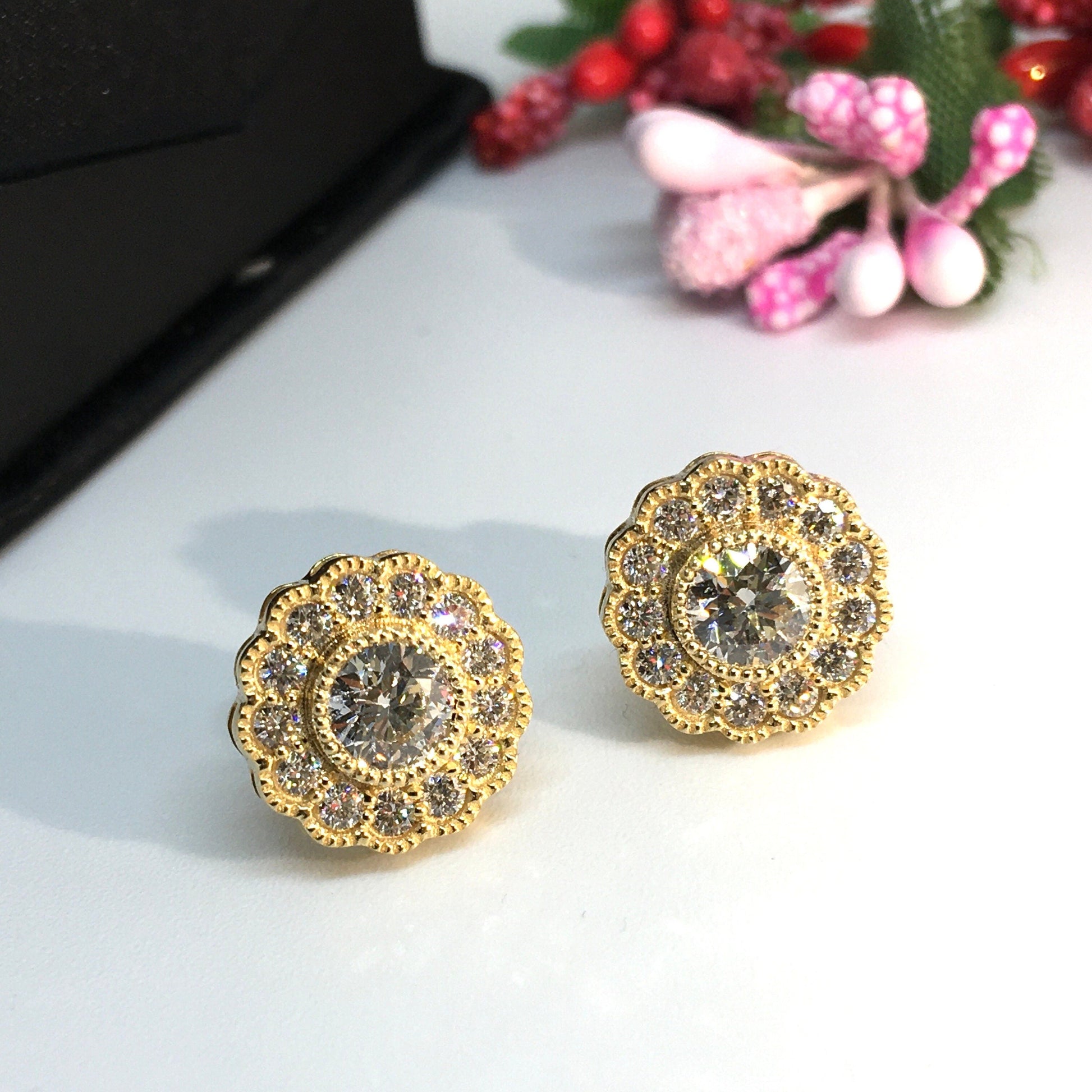 Huge Diamond Cluster Earring, 1.70 Ct Prong Set Diamond Cluster Earring with Milgrain, Bezel Set Solitaire Moissanite 14K Gold Diamond Cluster Earring, Stud Earrings