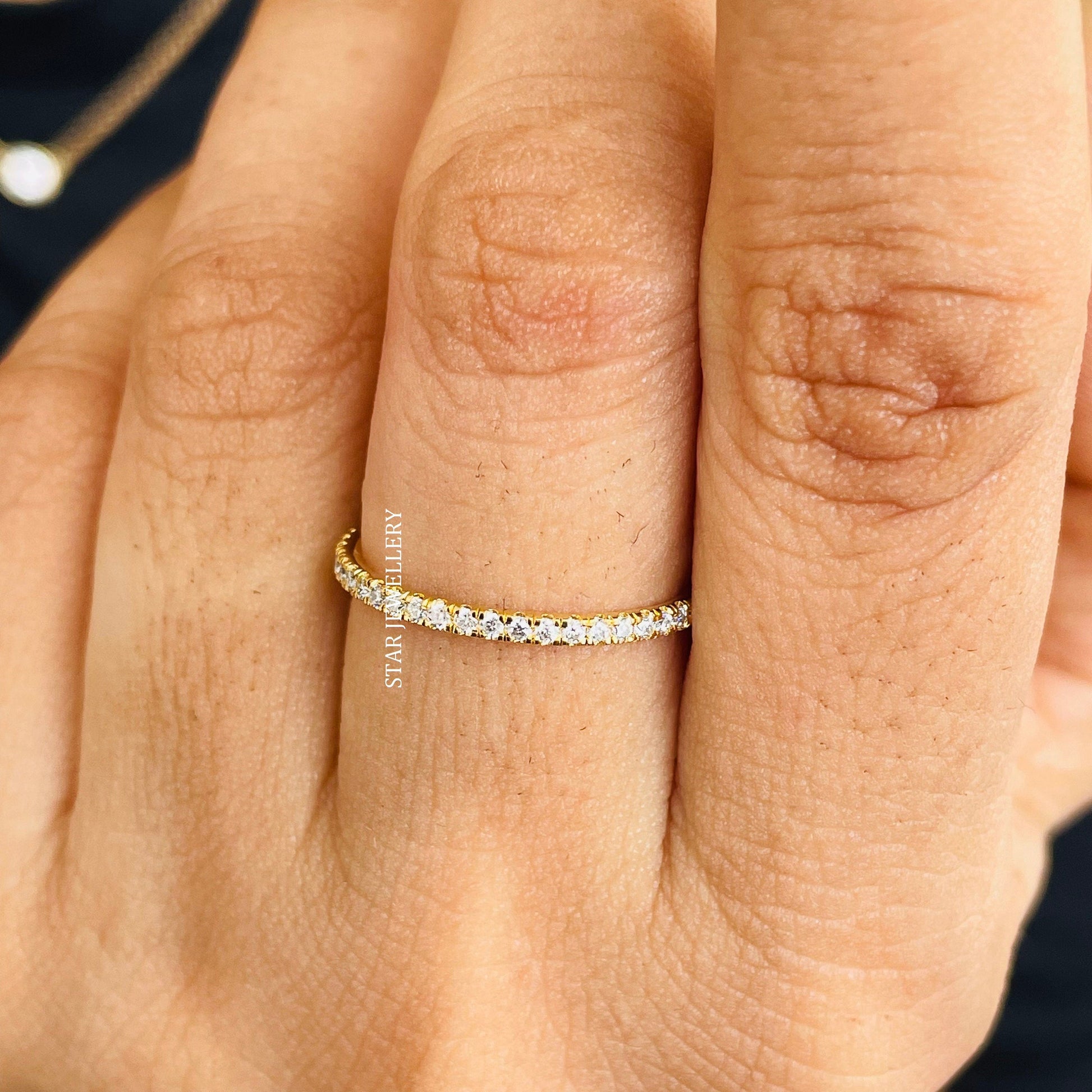 Minimalist Solid Gold Half Eternity Diamond Ring, Natural Diamond Solid Gold Thin Half Eternity Diamond Ring for her, 14CT Gold Thin Half Eternity Ring.