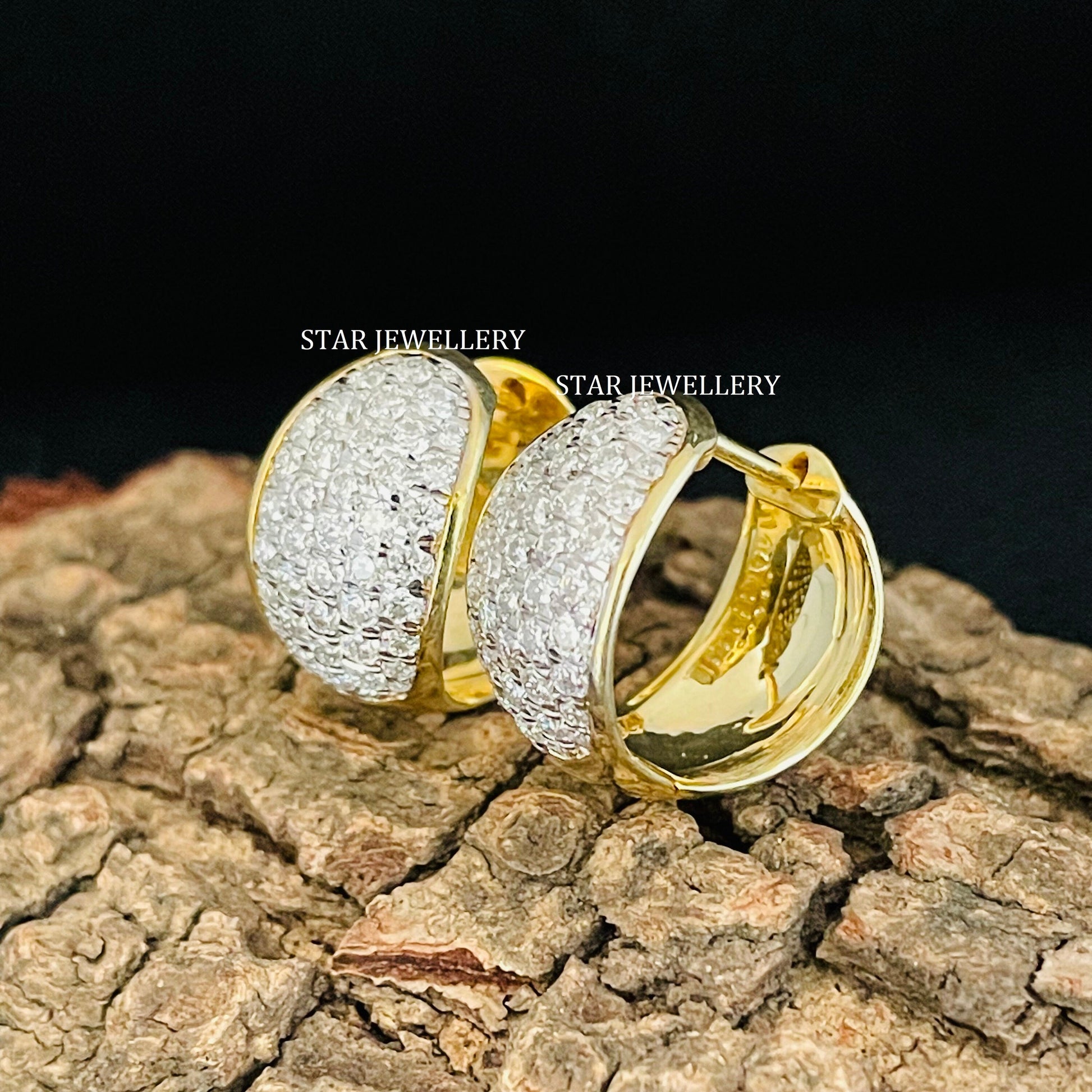 Pave Set Natural Diamond Cloud Hoop Earrings, Solid Gold Cloud Hoop Earring for Bride, Bridesmaid Cloud Diamond Hoop Earring, Graduation Gift Hoops