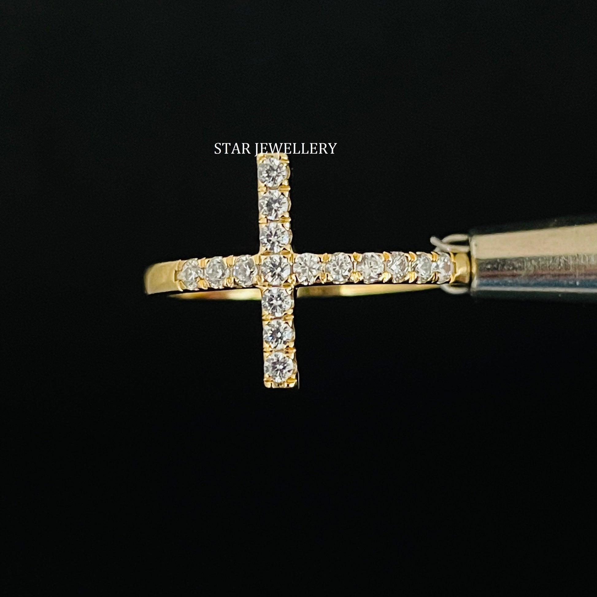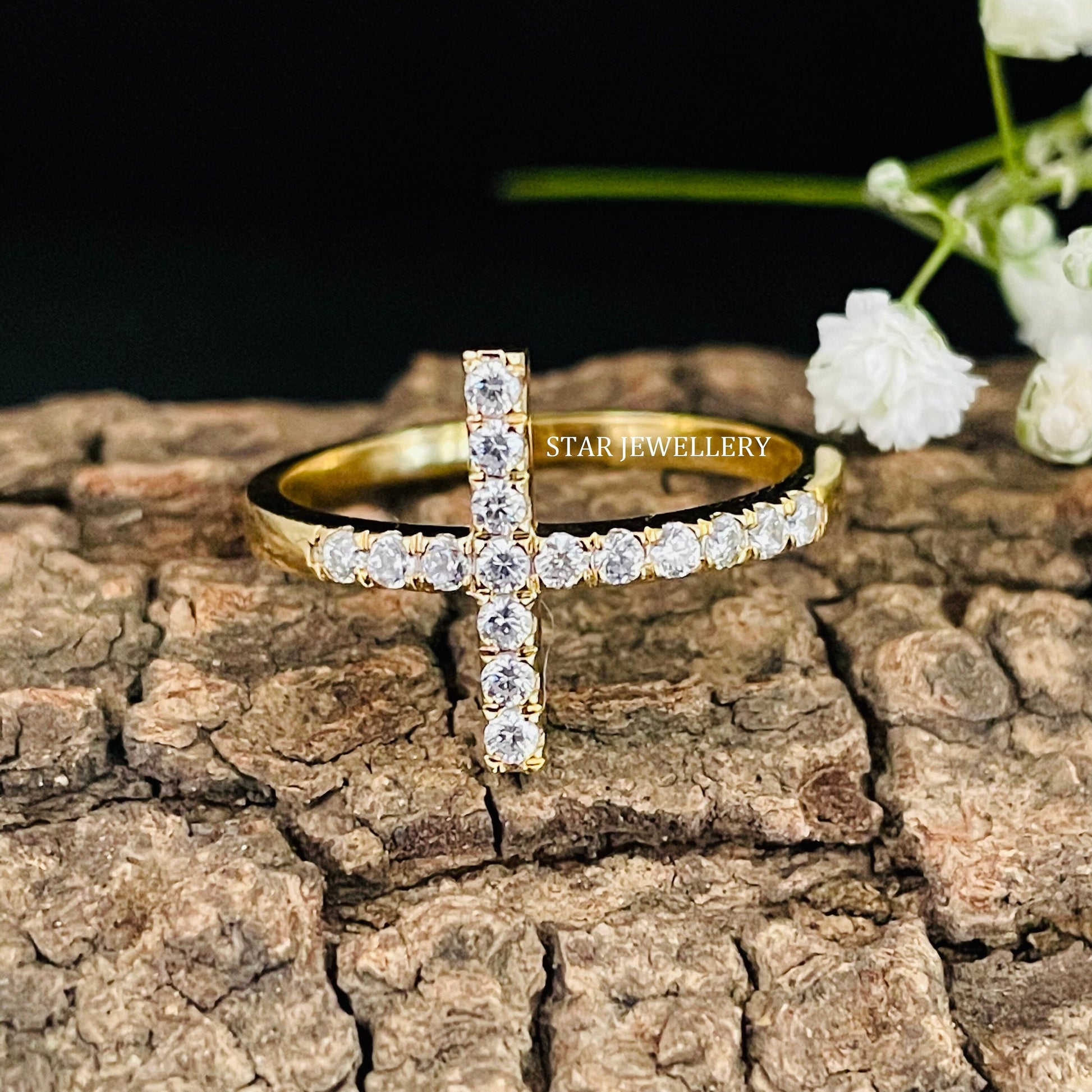 Natural Diamond Cross Ring, 14K Solid Gold Pave Set Diamond Cross Ring, Everyday wear Solid White Gold Diamond Cross Ring for her