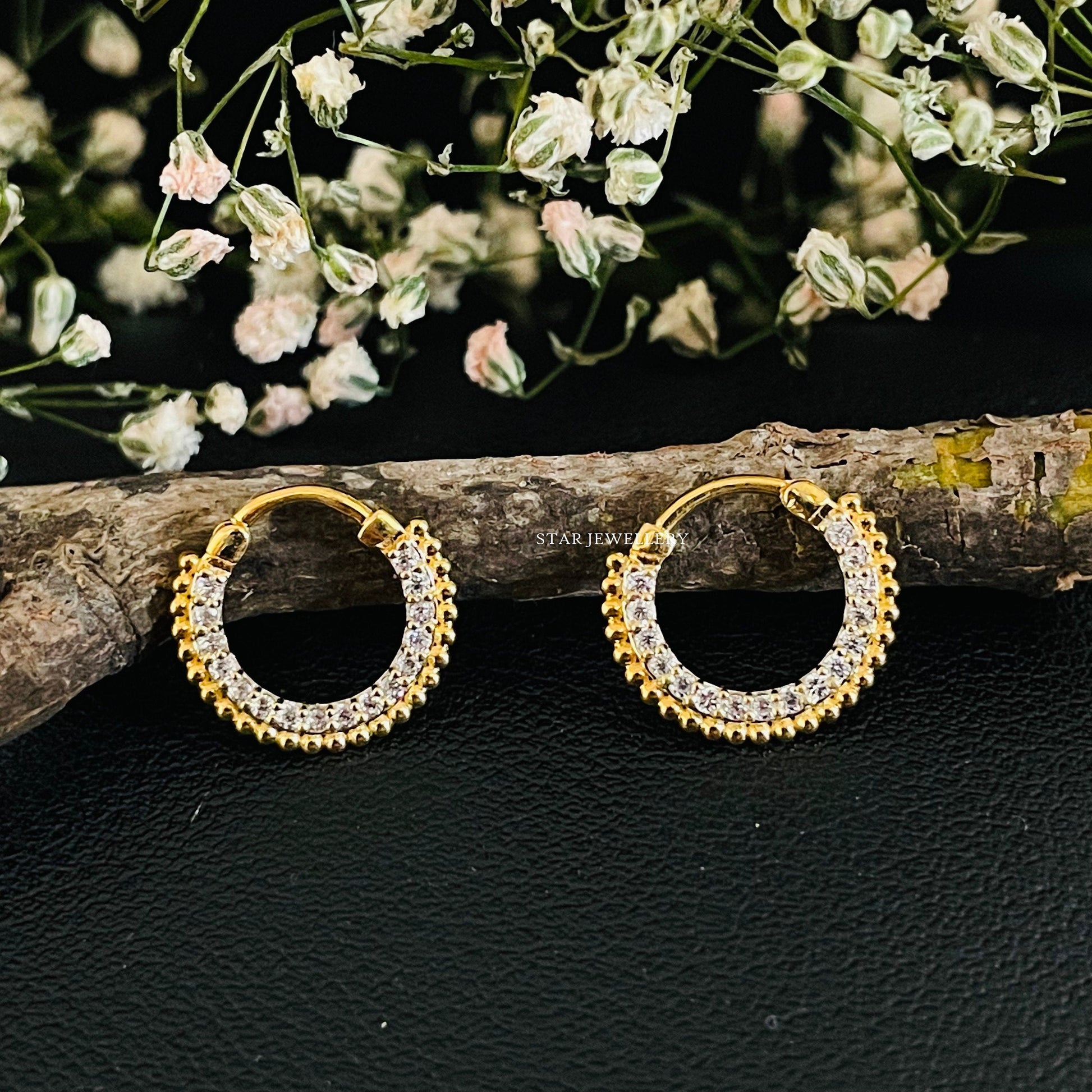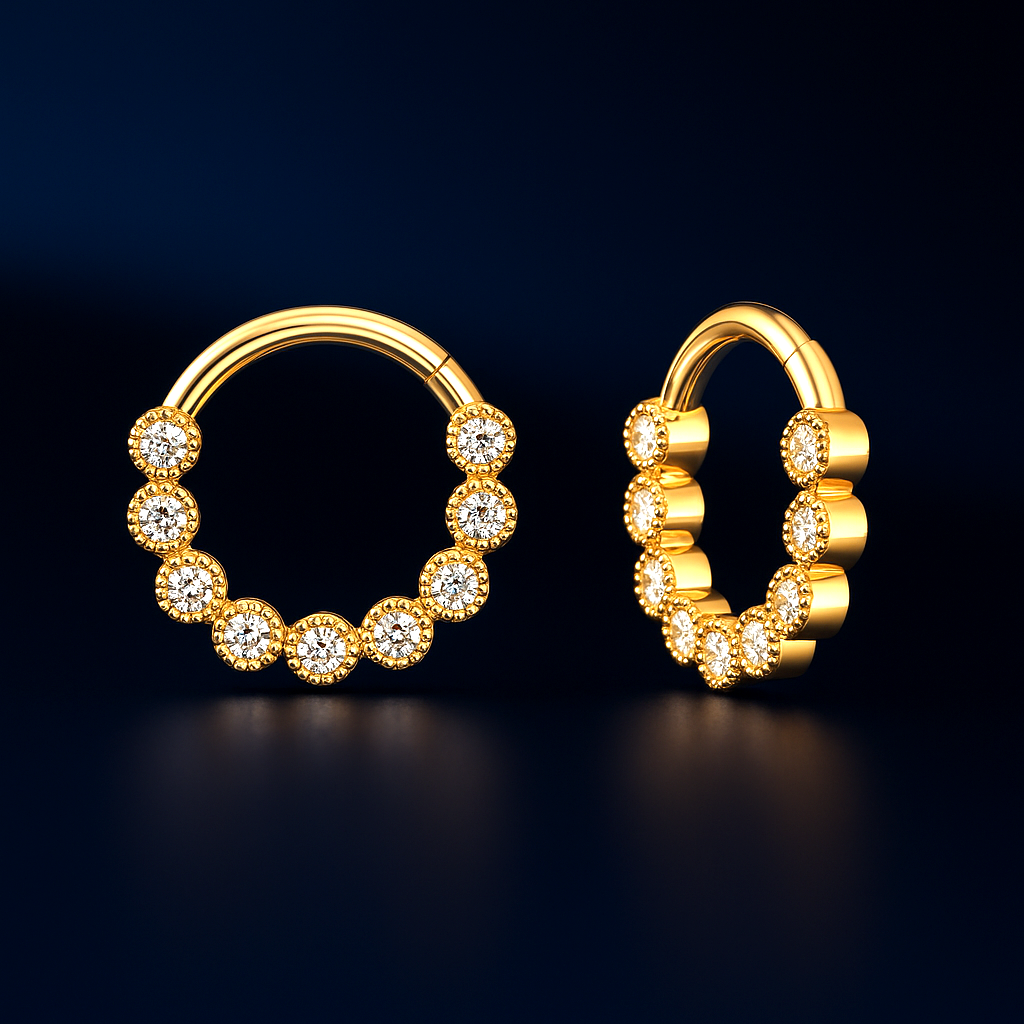 Natural Diamond Daith Piercing, Diamond Miligrain Septum Nose Ring in 14K Gold, Diamond Clicker Daith Piercing, Miligrain Septum Clicker