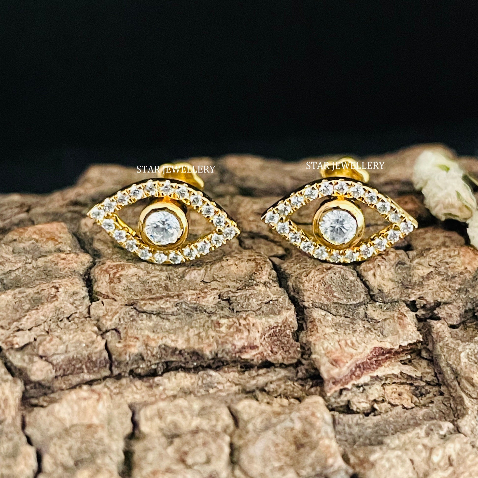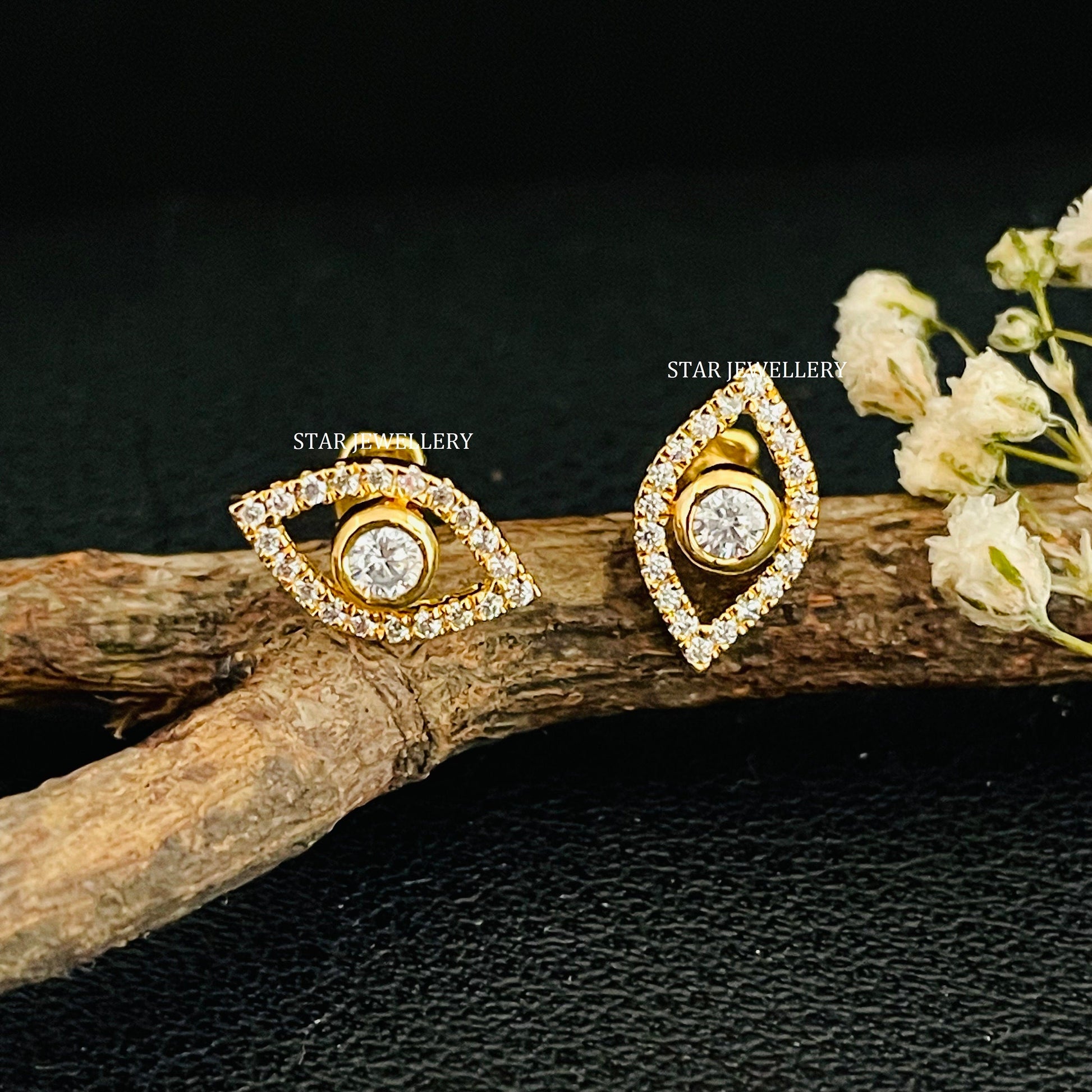 Natural Diamond Evil Eye for Tragus, Lobe, Conch, 14K Diamond Evil Eye Piercing for her, Micro Pave Diamond Evil Eye Gold Piercing