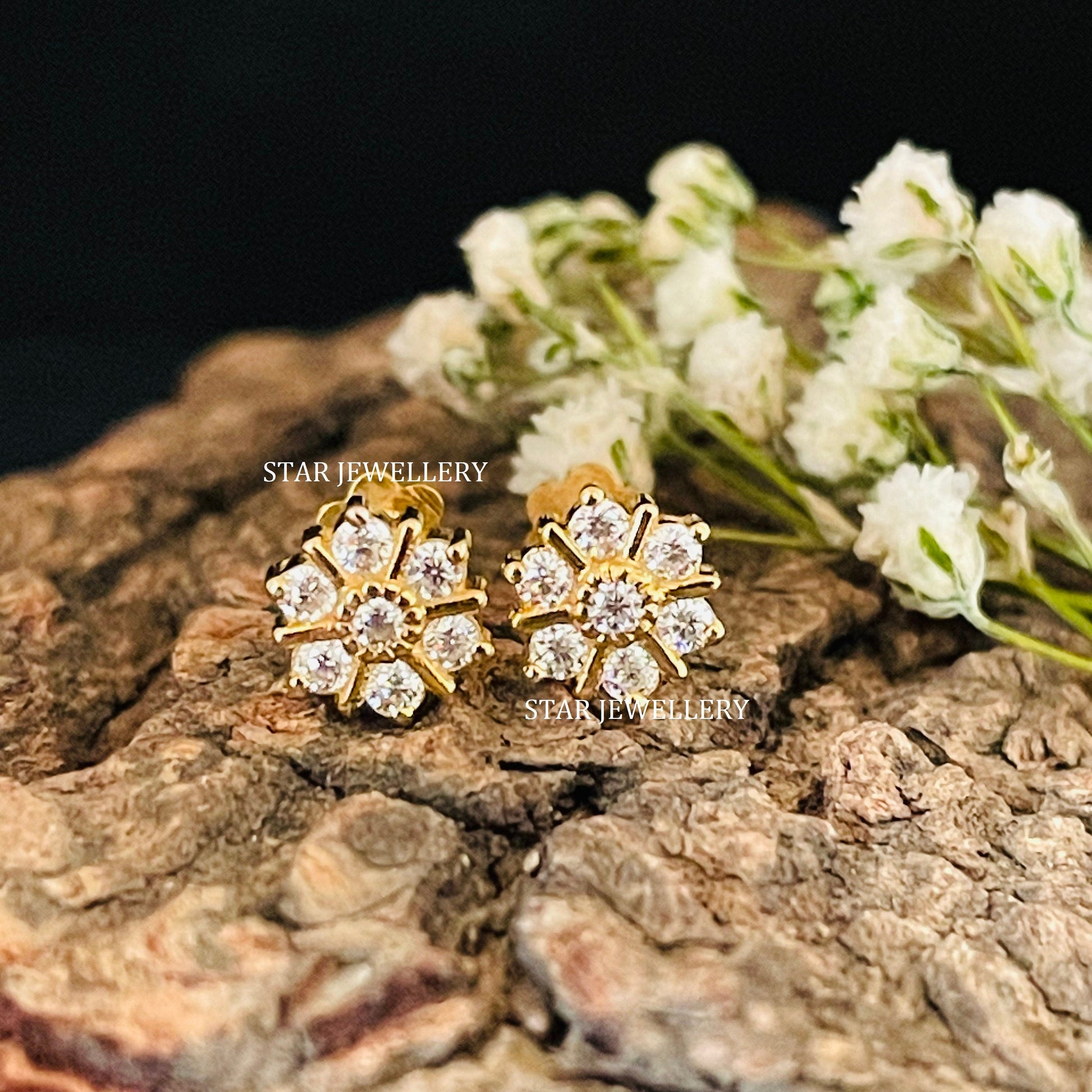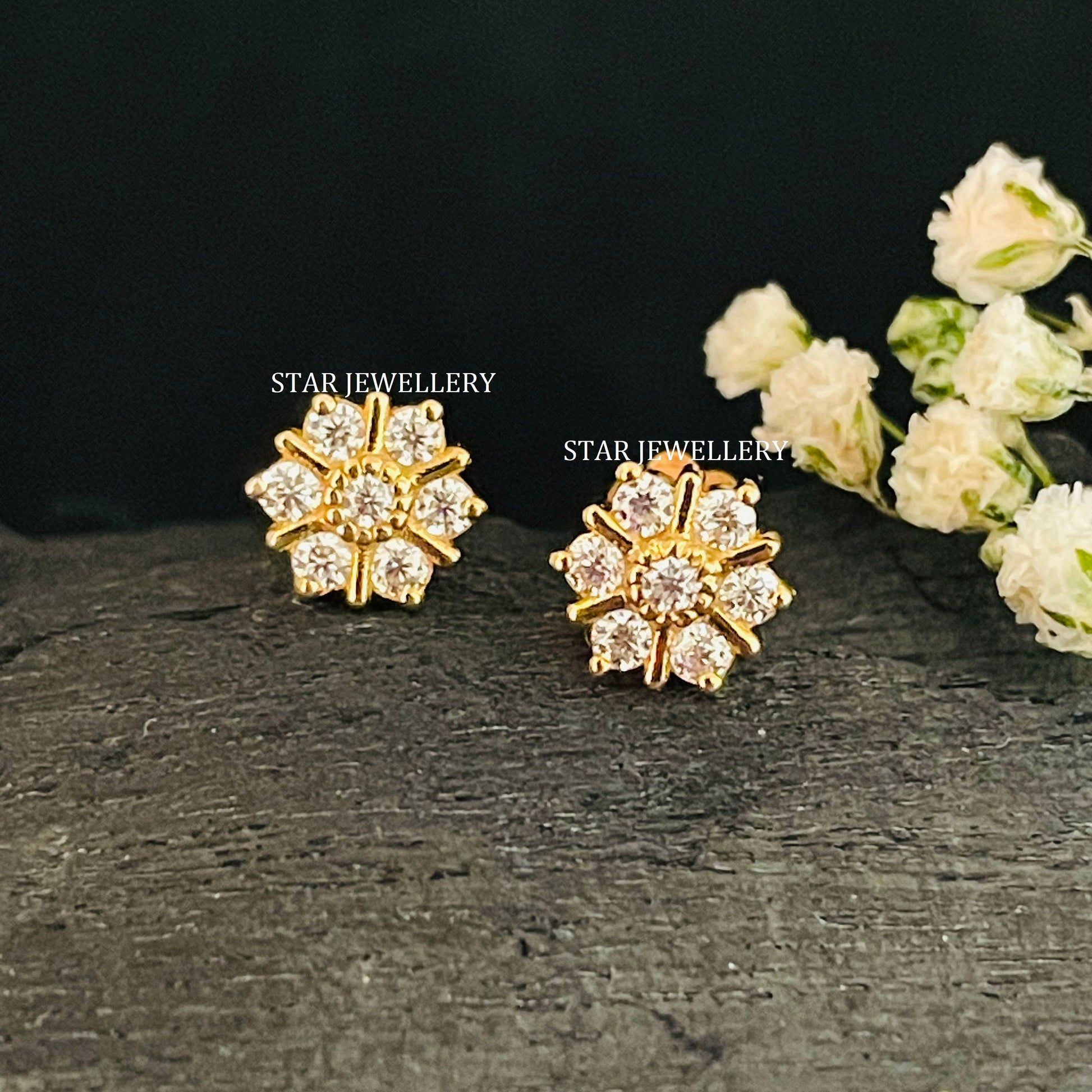 Natural Diamond Flower Stud for Nose Tragus Lobe Conch