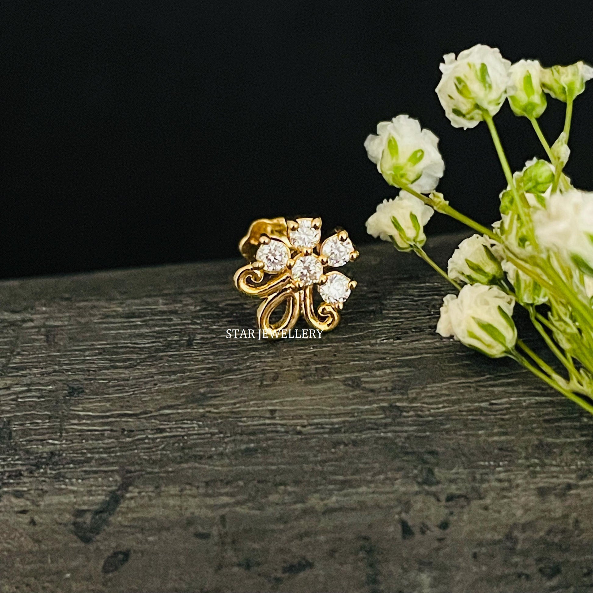 Natural Diamond Flower Stud for Nose Ear Piercing