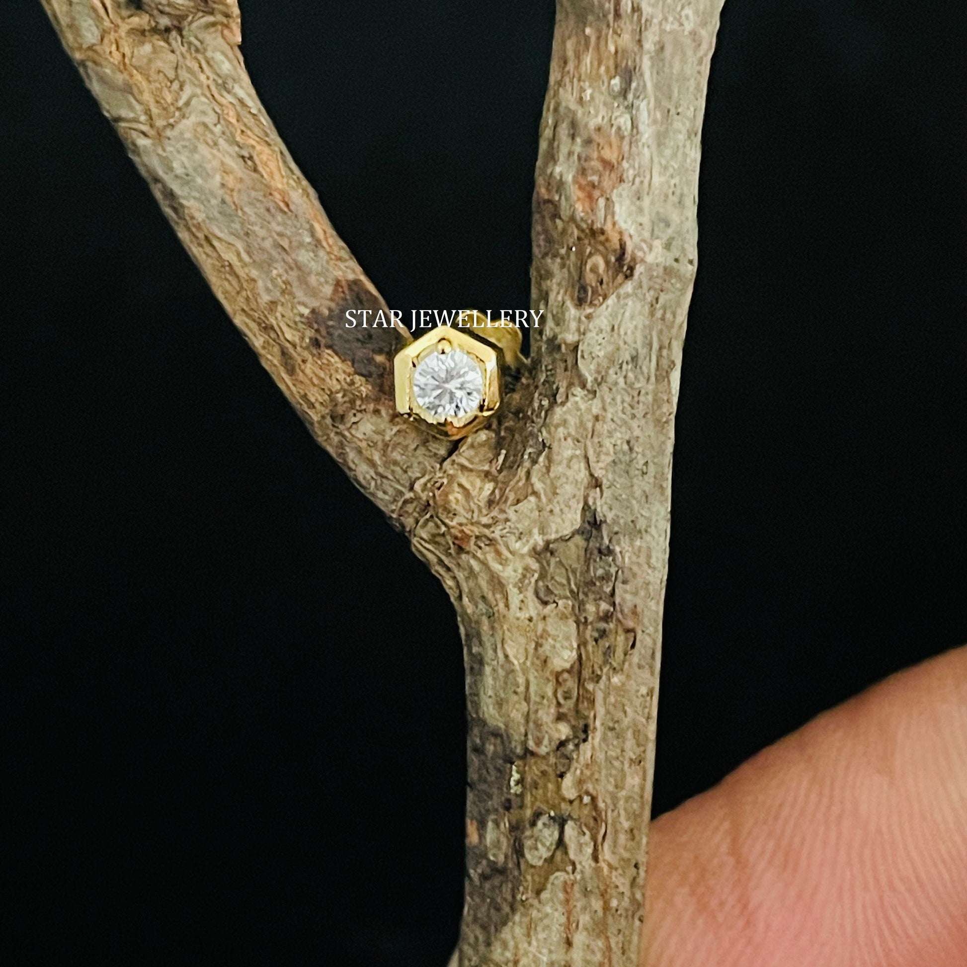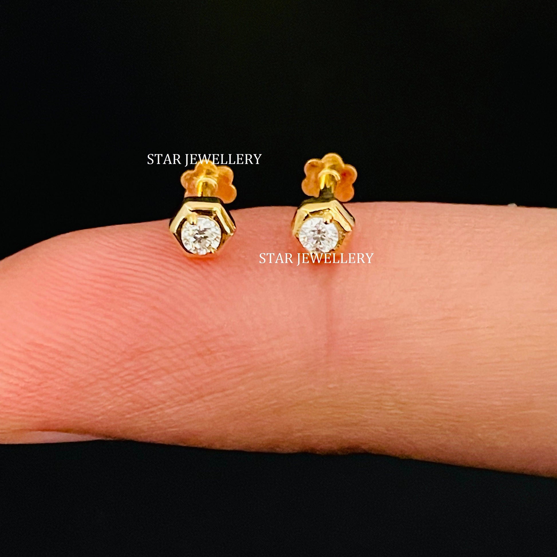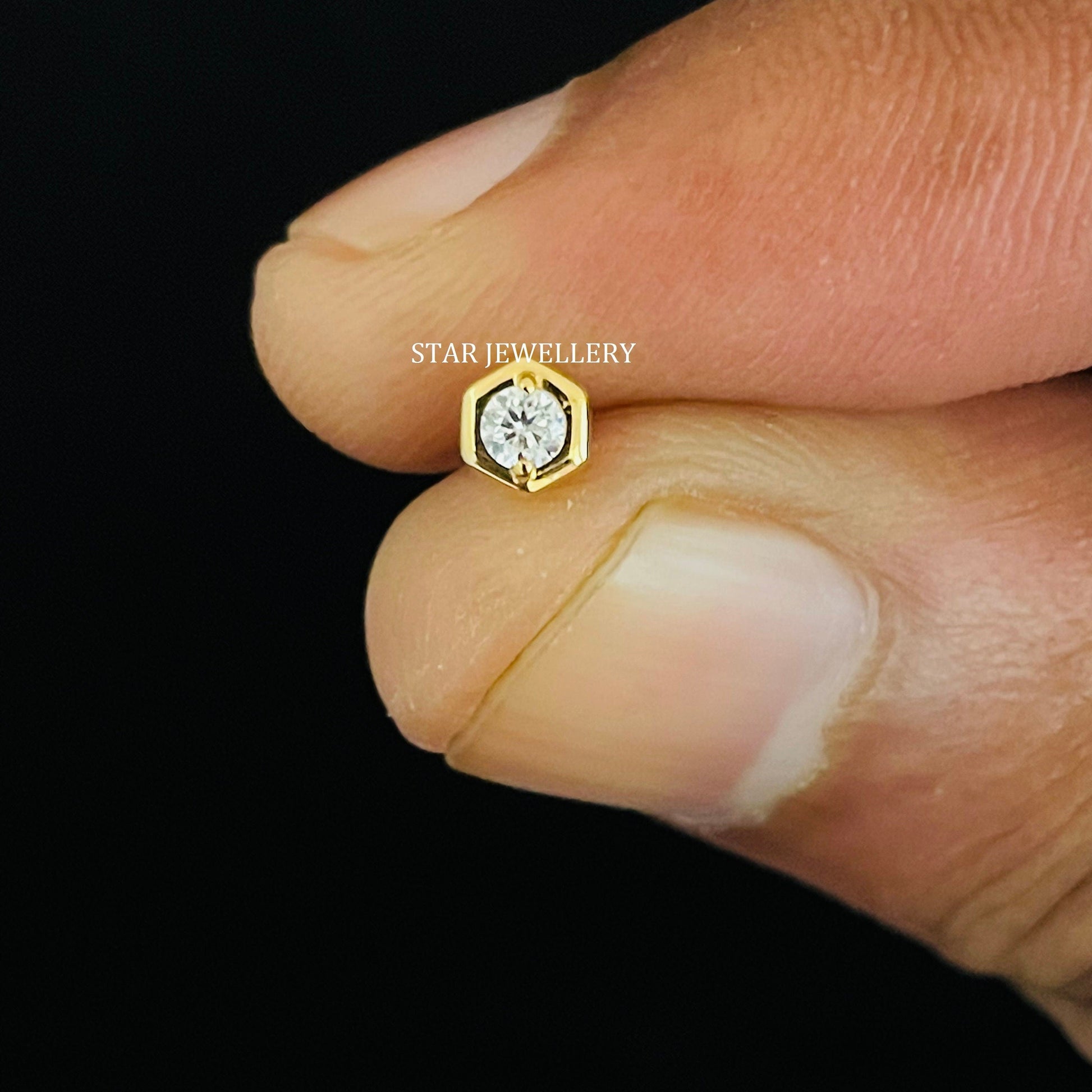 Natural Diamond Hexagon Stud for Ear Piercing