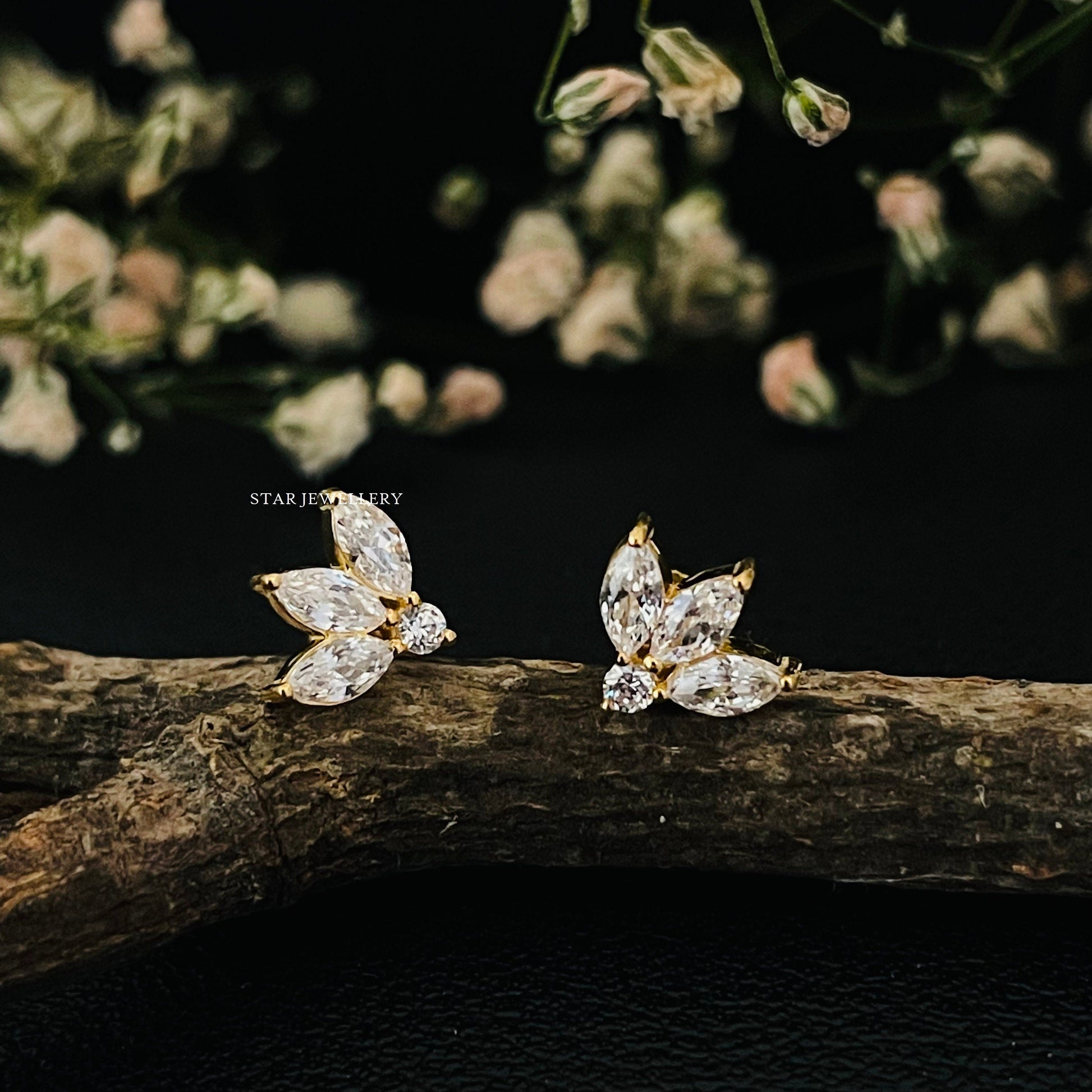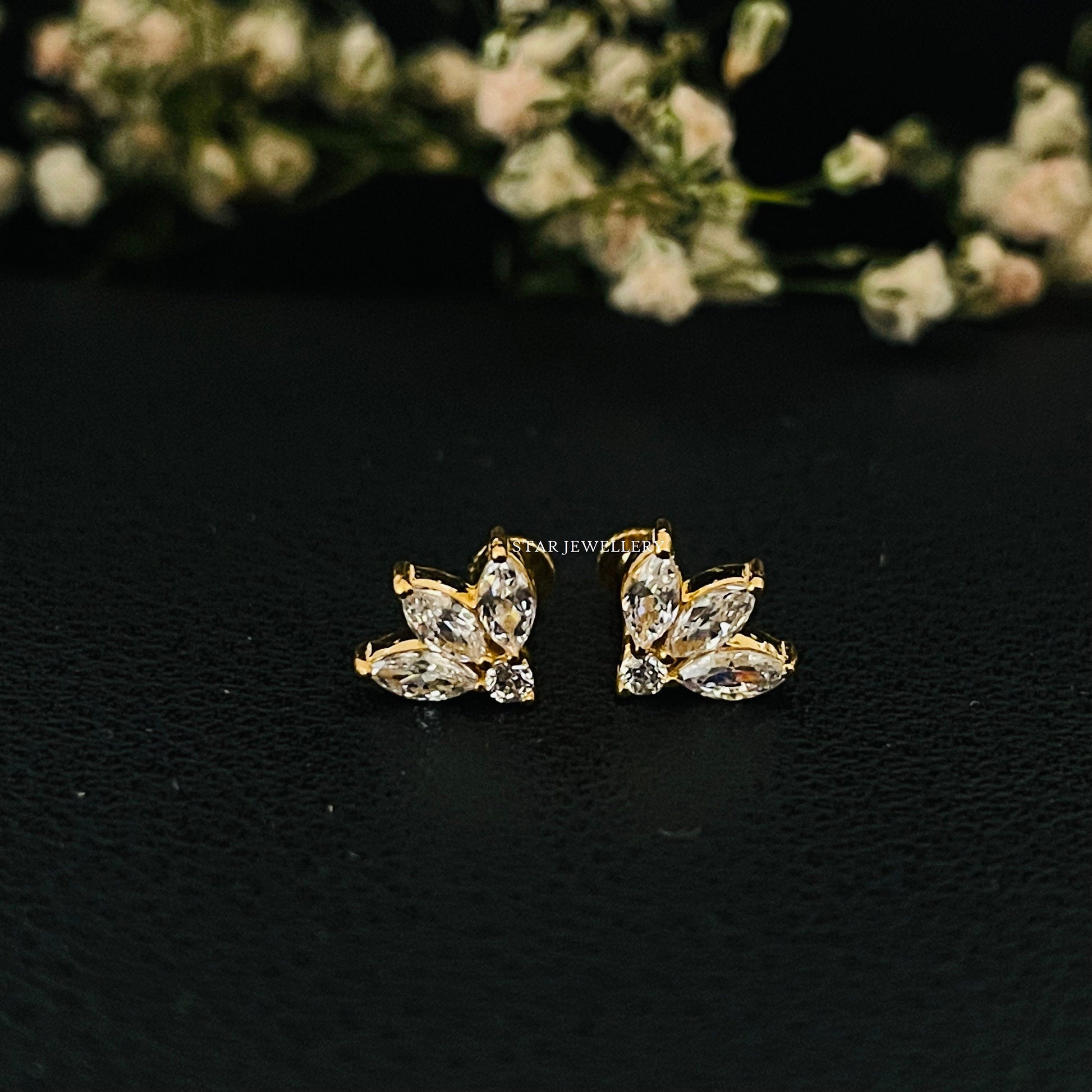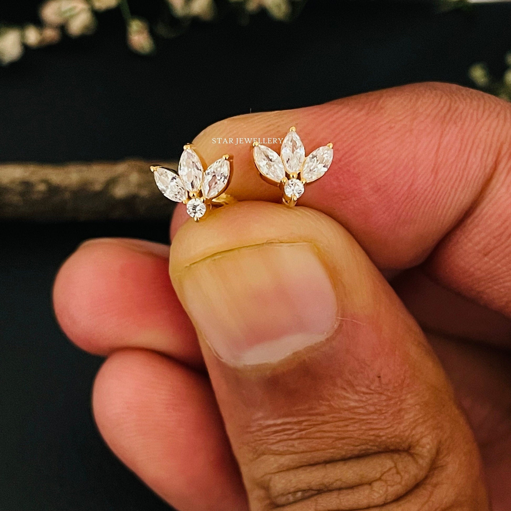 Natural Diamond Lotus Stud Ear Piercing, 14K Solid Gold Lotus Stud Earring, Lotus Studs for Lobe, Conch, Tragus, Helix Tragus, Cartilage