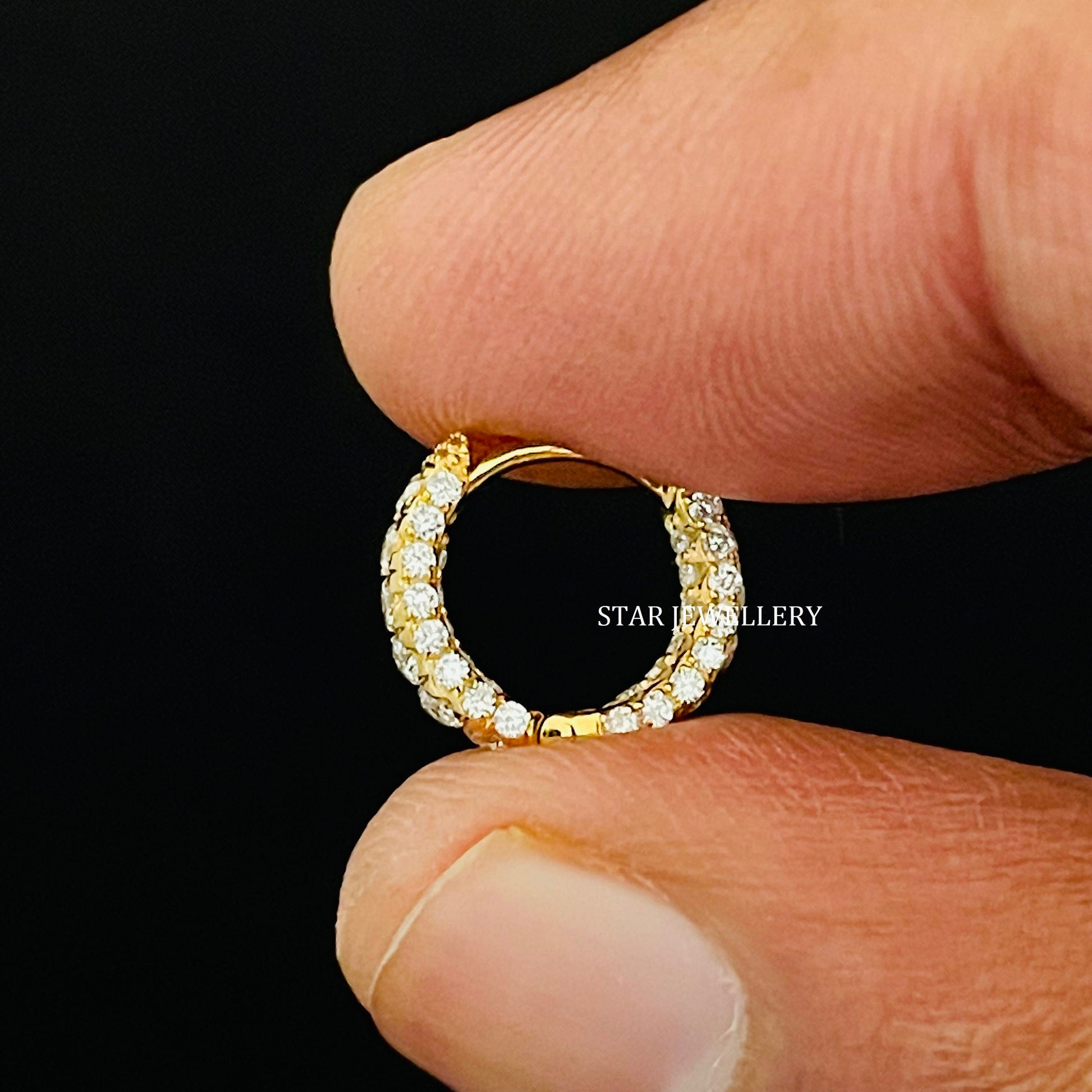 Natural Diamond 8 MM Hoop Earring, 14K Solid Gold Diamond Hoop Earring, Bridal Hoop Earring for her, Graduation Gift for her, Bridesmaid Diamond Hoop Earring, Sold as Pair