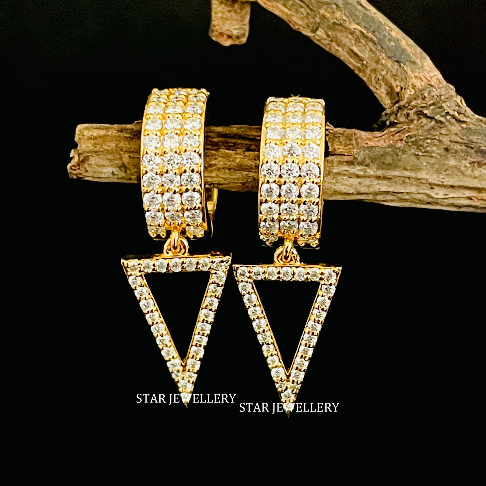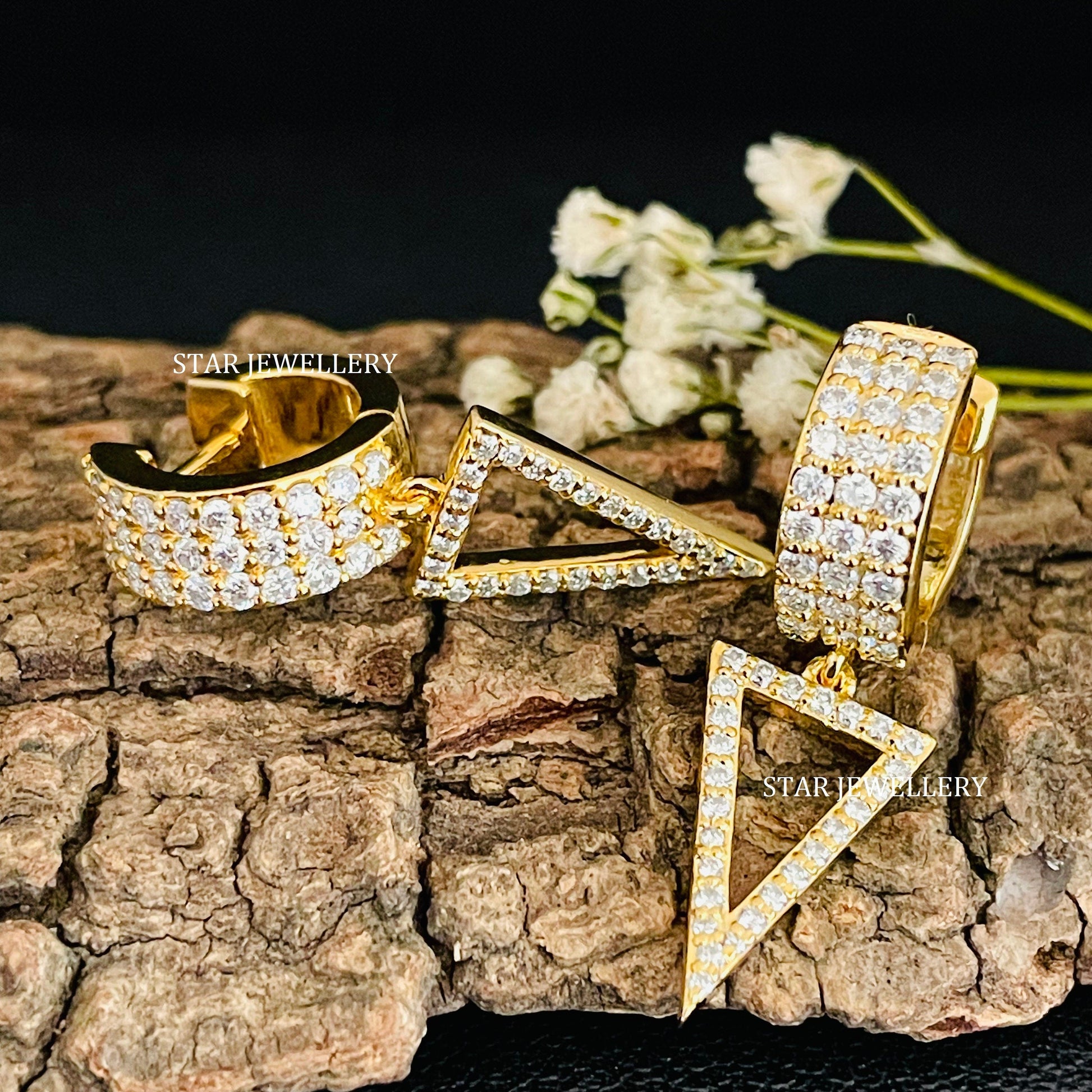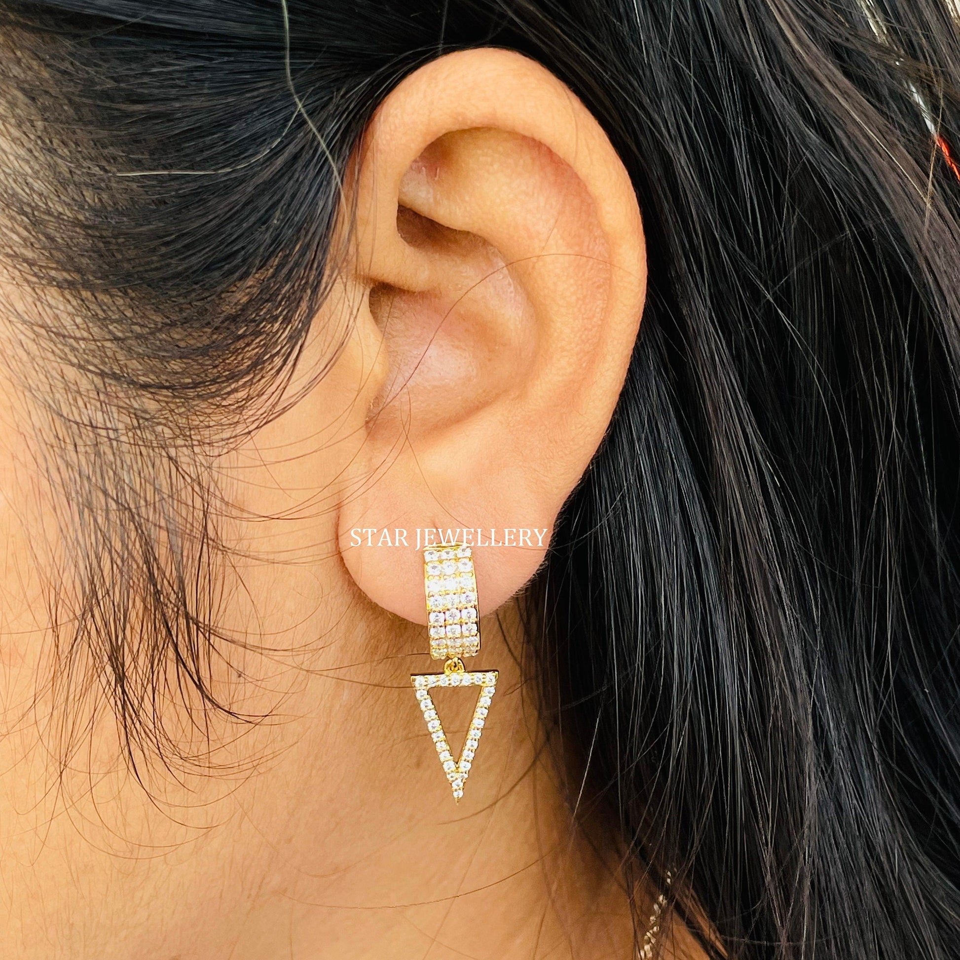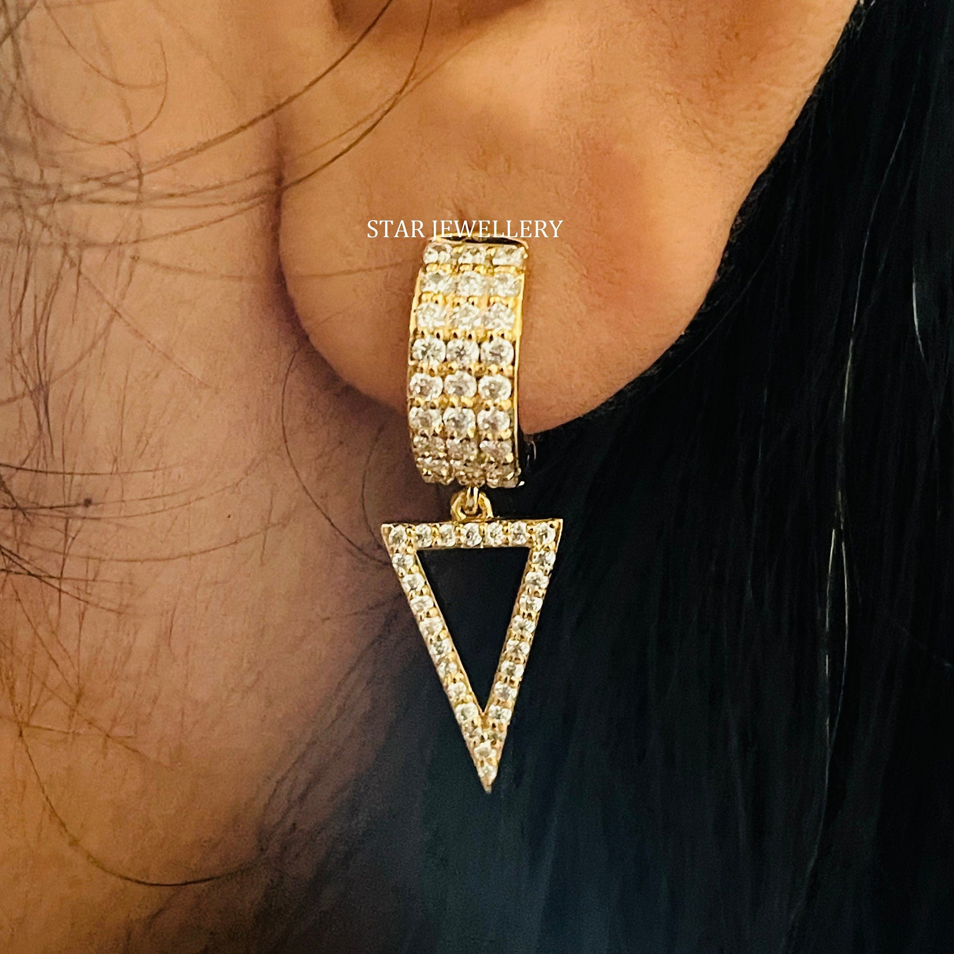 Natural Diamond Triangle Drop Hoop Earring, Dangle Drop Solid Gold Bridal Hoop Earring, Graduation Gift, Triangle Drop Diamond Hoop Earring