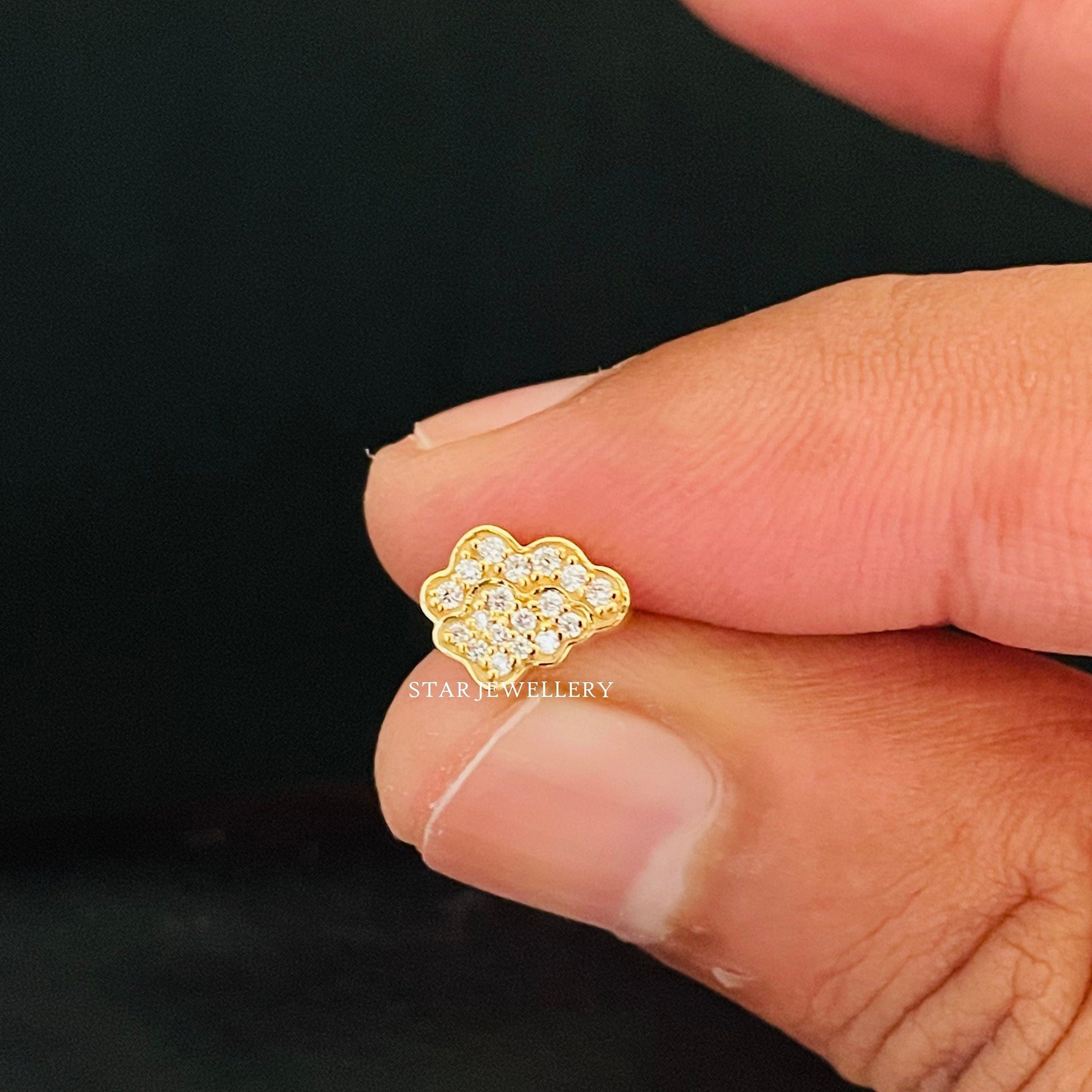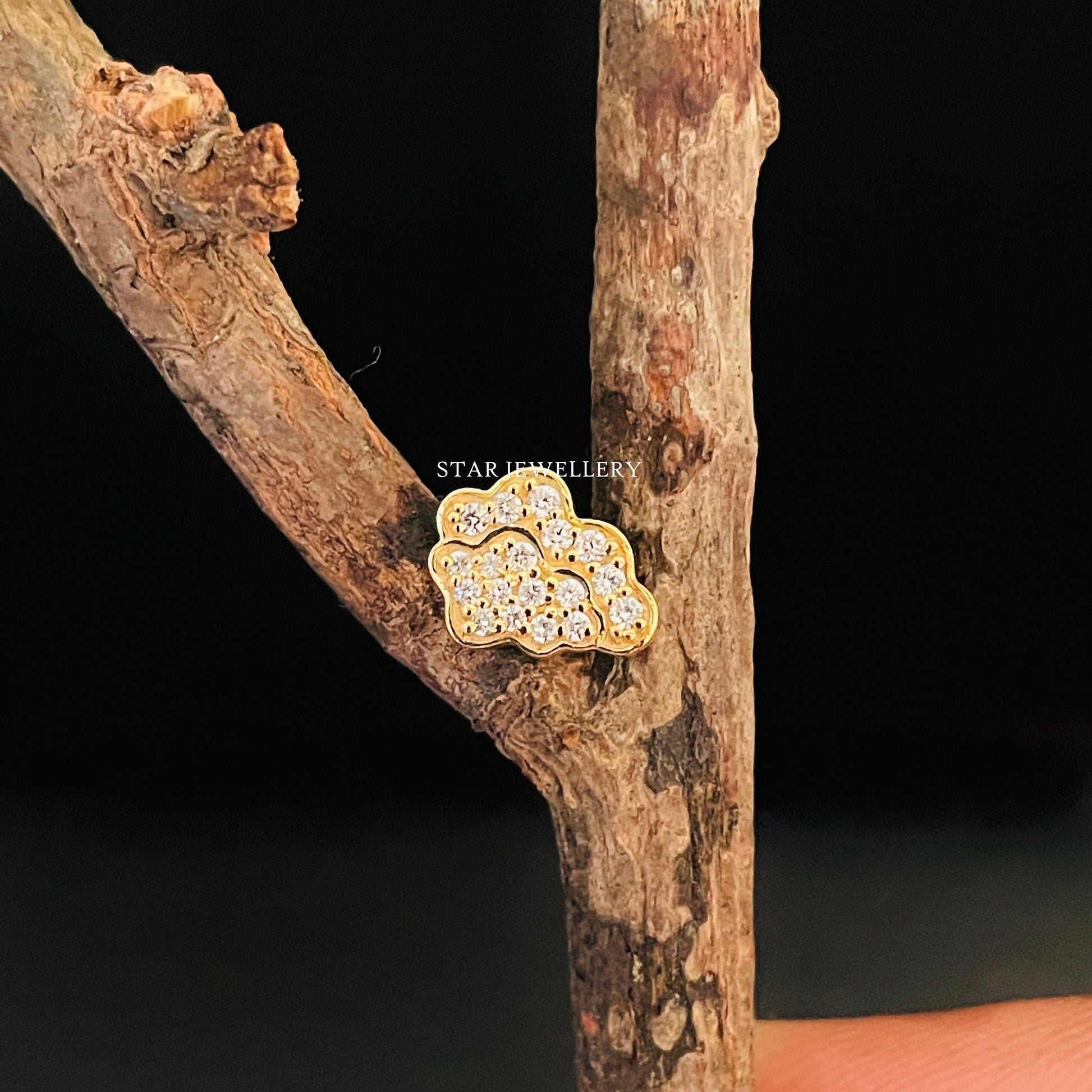 Natural Diamond Vintage Cloud Piercing, Diamond Cloud Piercing for Helix, Tragus, Earlobe, Conch, Rook, 14K Solid Gold Cloud Ear Piercing