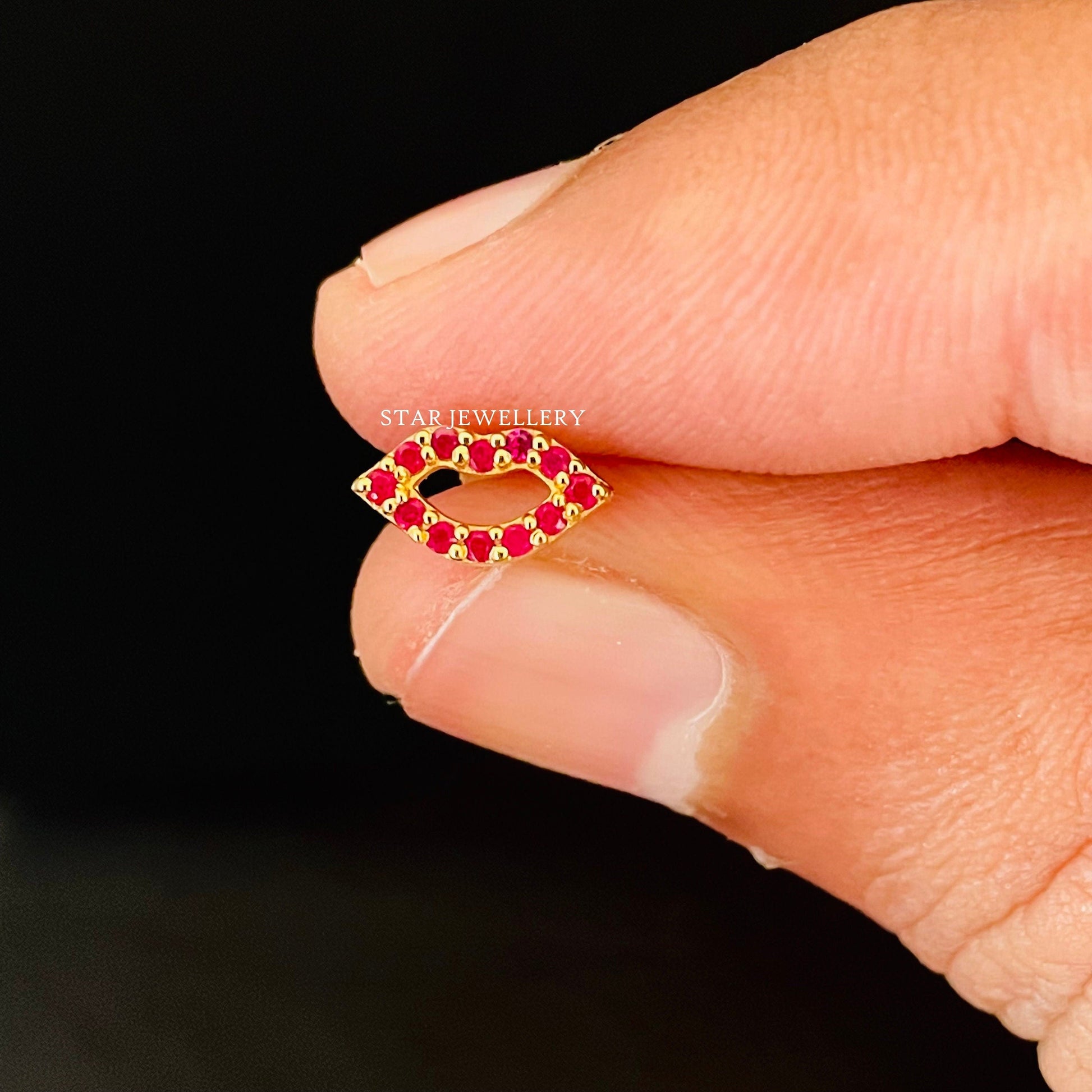 Natural Diamond Lips Piercing, Diamond Lips Earring for Helix, Tragus, Earlobe, Conch, Rook, 14K Solid Gold Lips Ear Piercing for her