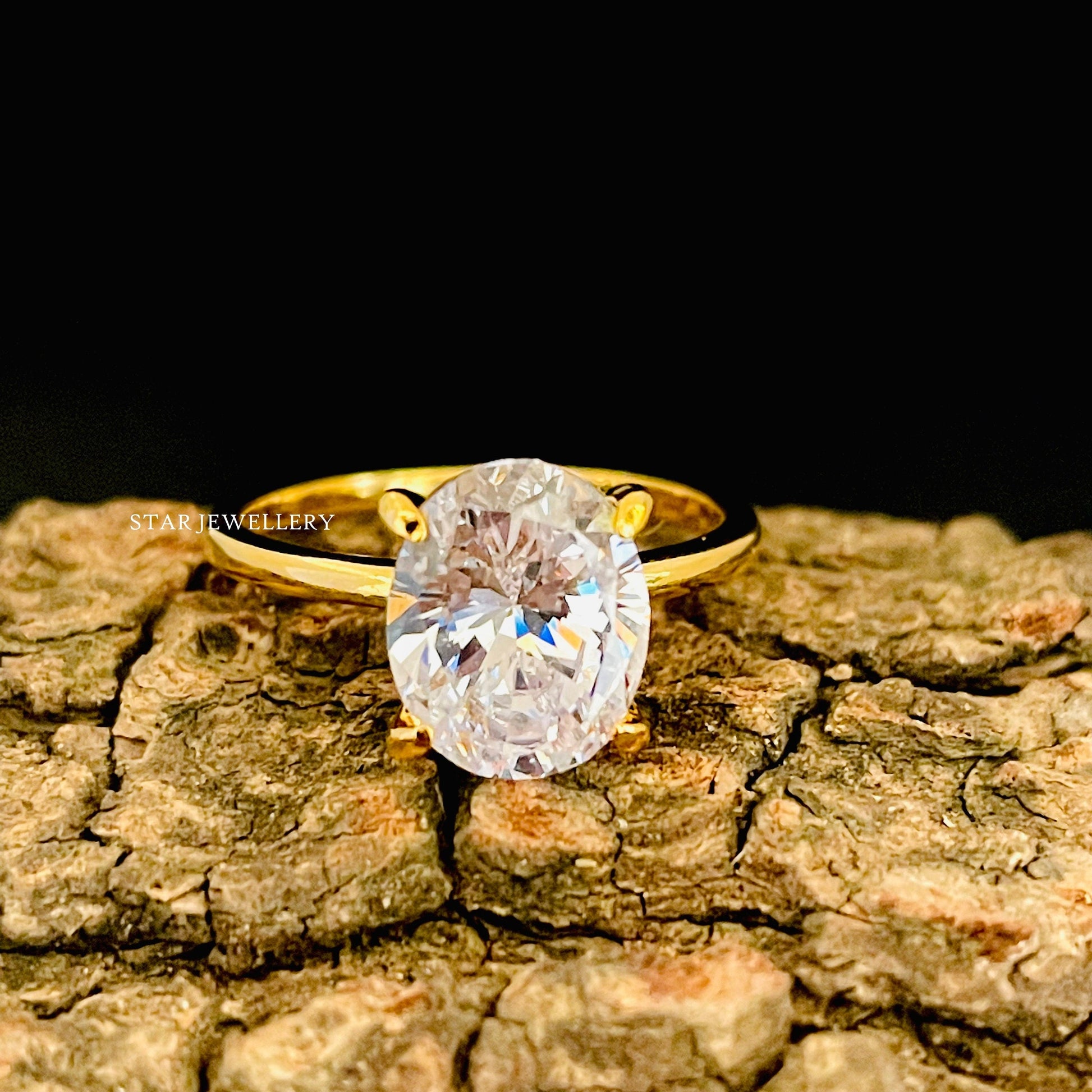 3.0 Ct Oval Solitaire CVD Lab Grown Diamond Engagement Ring
