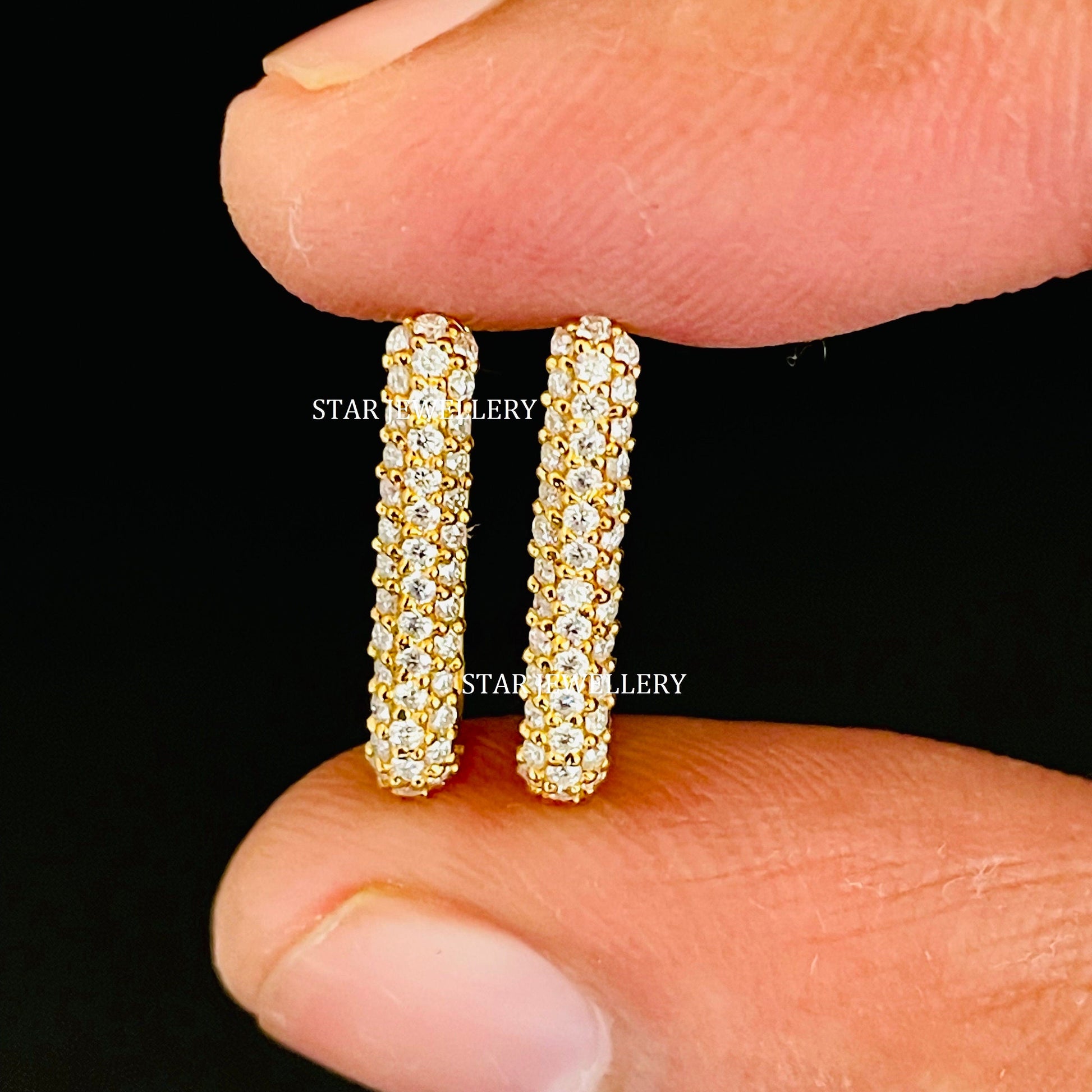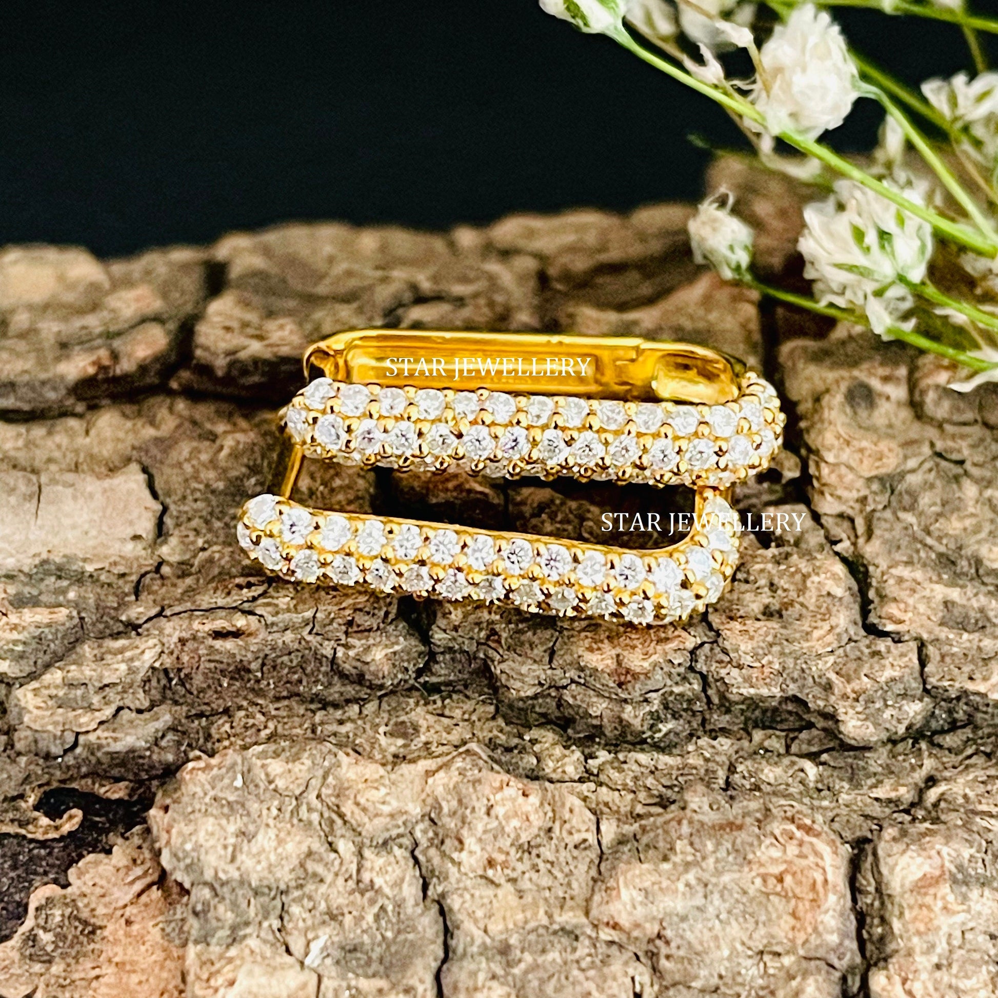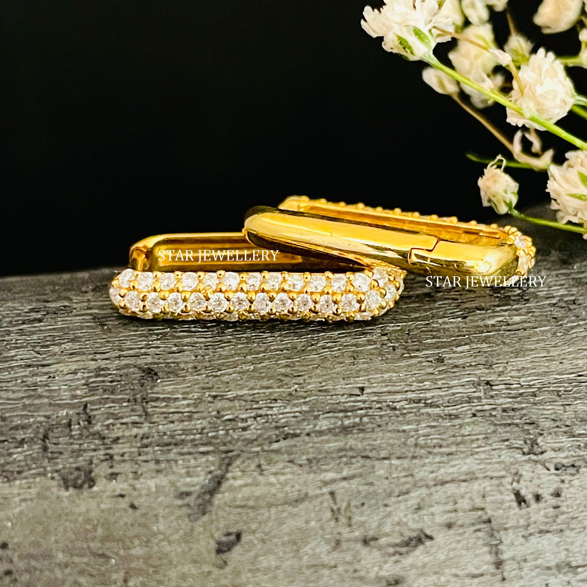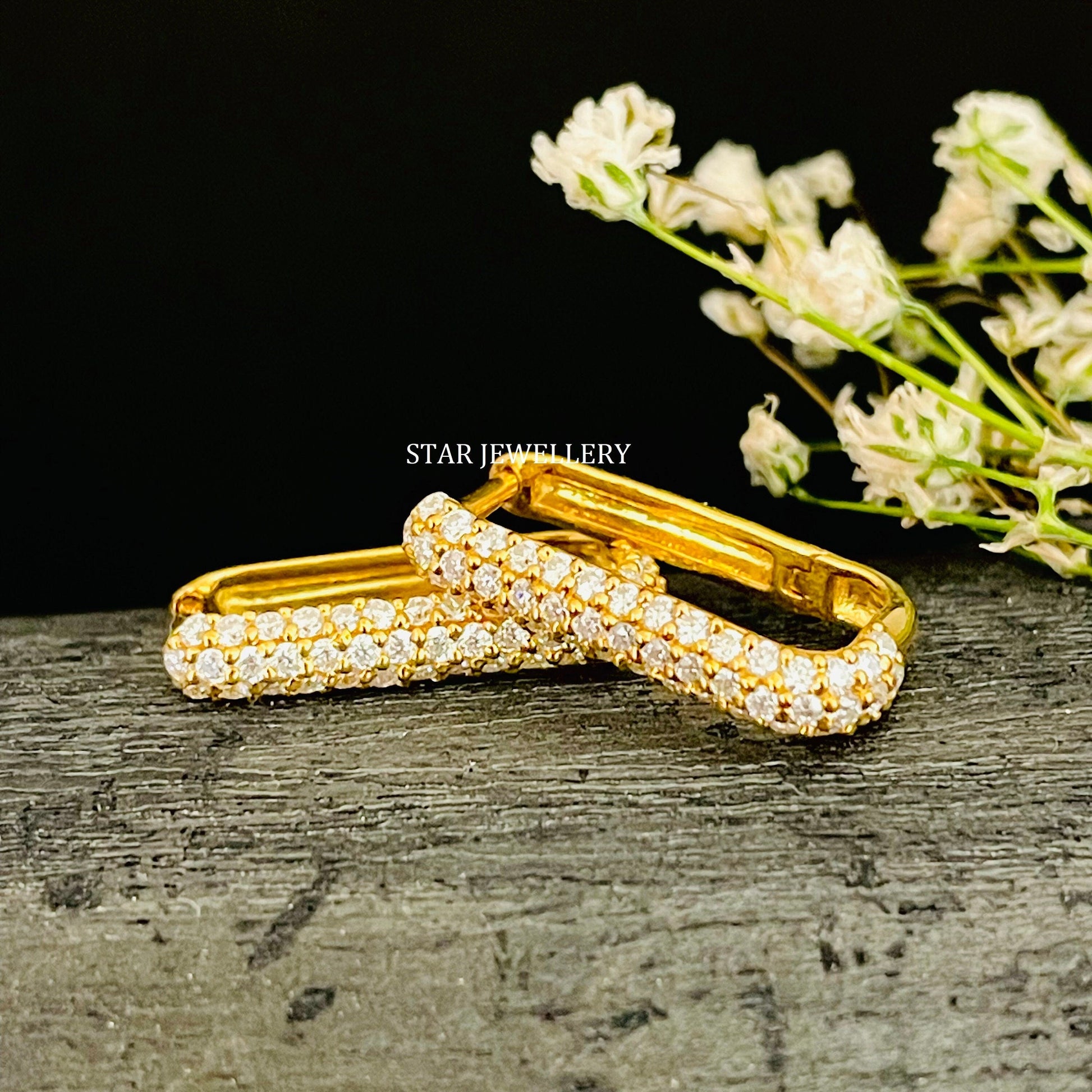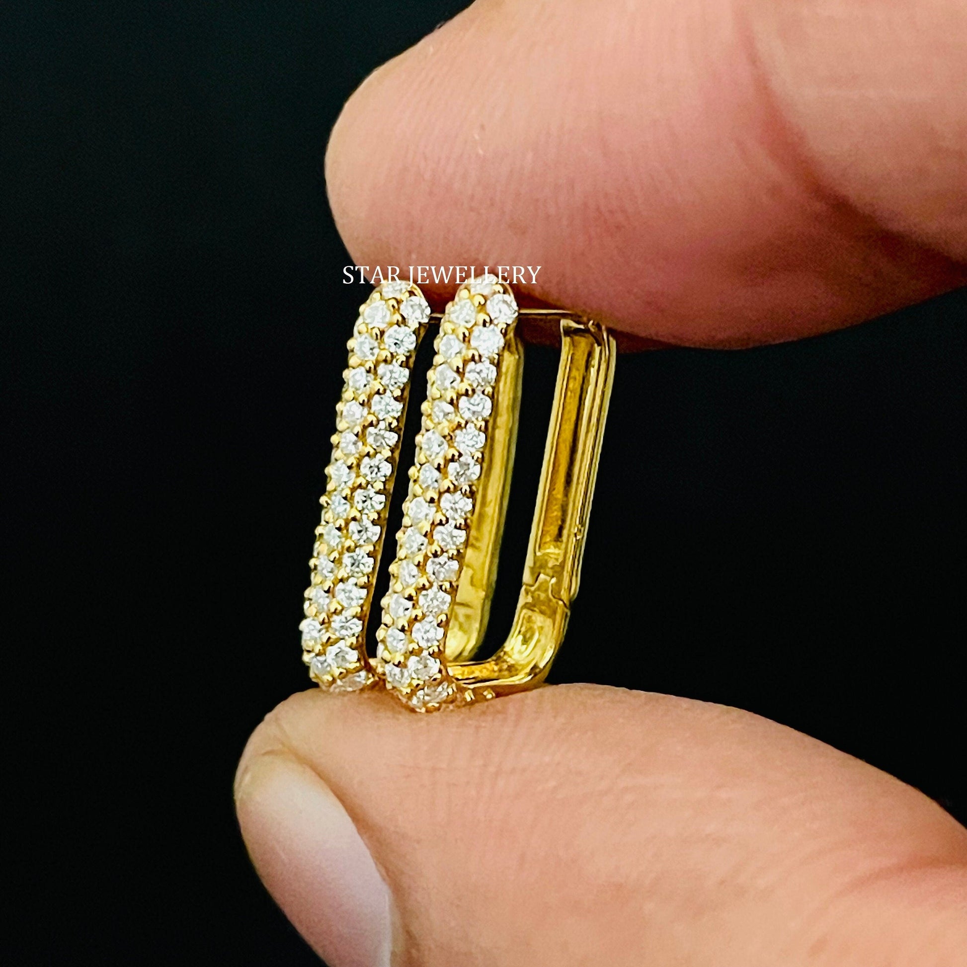 Rectangular Diamond Hoop Earring, Solid Gold Rectangular Hoop Earring, A Perfect Graduation Gift, 14K Solid Gold Rectangular Hoop Earrings