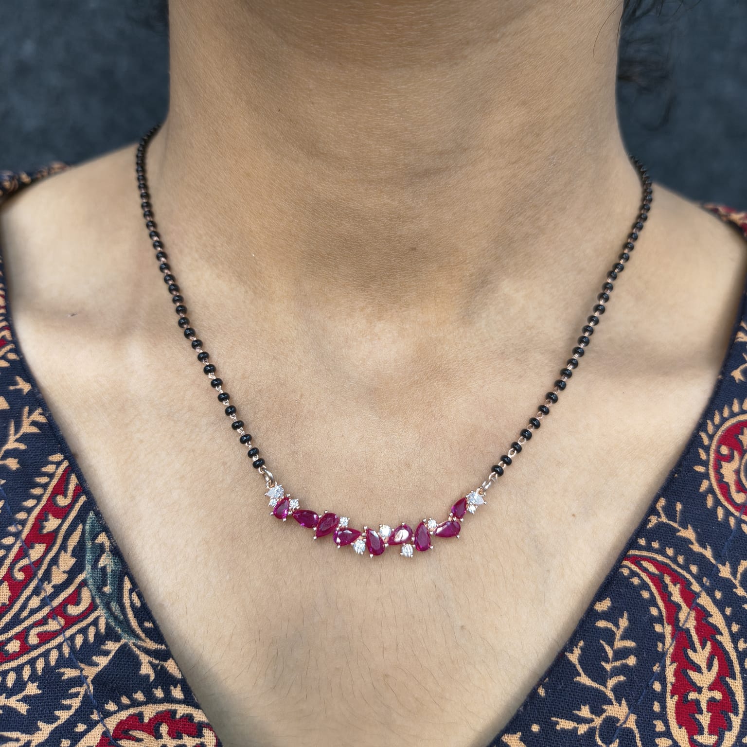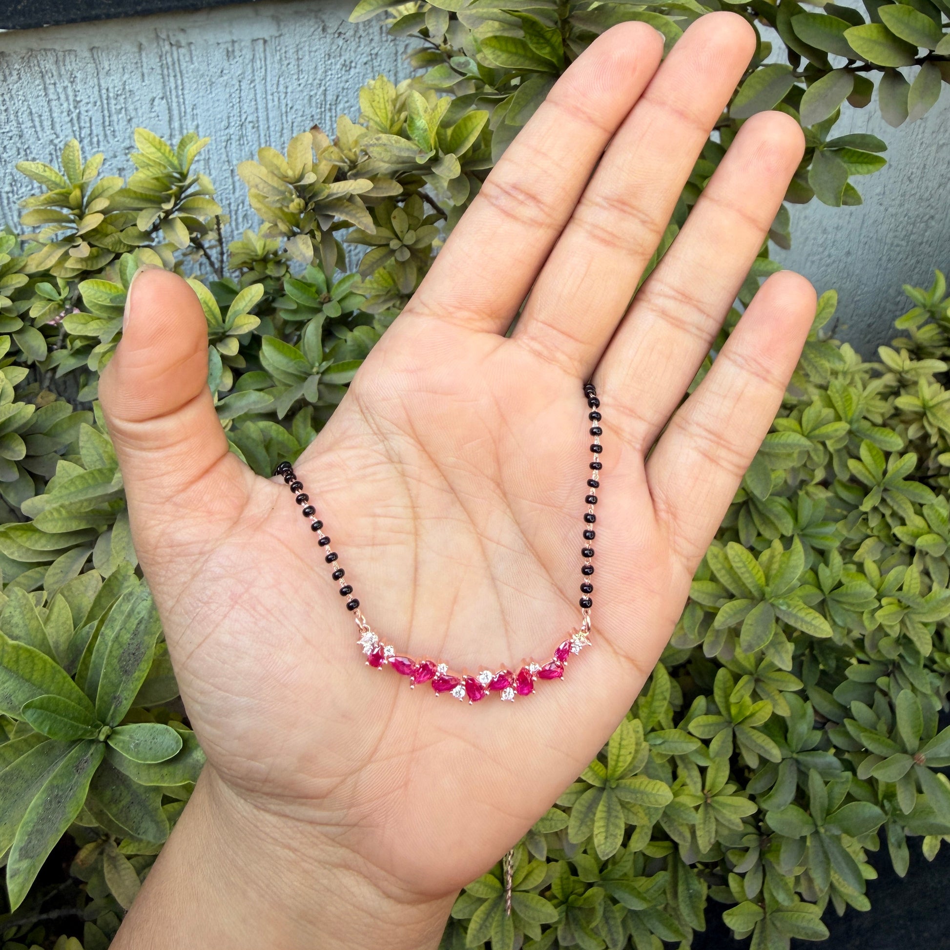 Rose Gold Plated Ruby Drop Diamond Mangalsutra