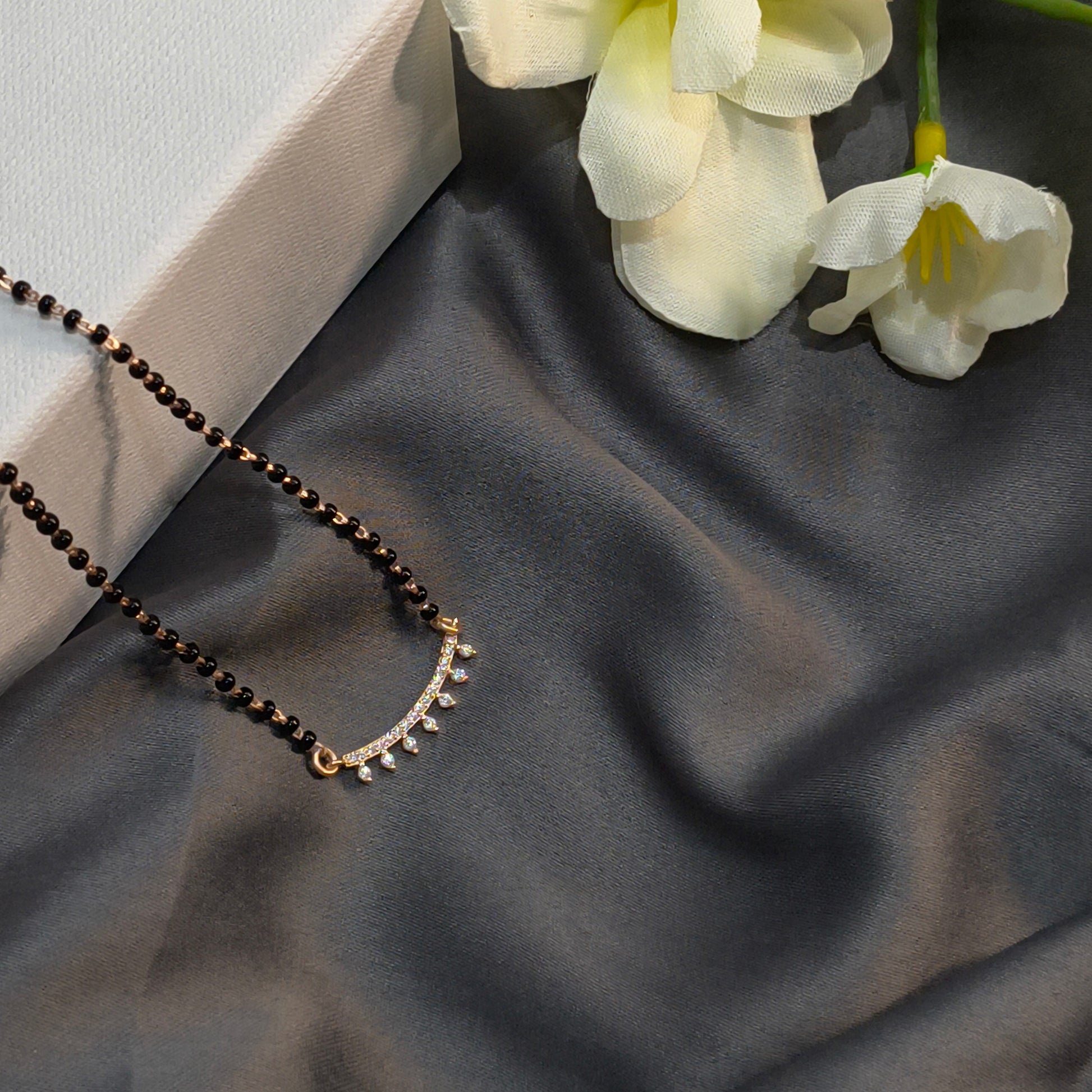 Add a touch of elegance and tradition to your look with the RoseGold Plated Silver Crown Mangalsutra. Crafted from high-quality 925 sterling silver and plated with luxurious rose gold, this stunning mangalsutra features an intricate crown-inspired design, perfect for brides and everyday elegance. Anti-tarnish and skin-friendly, it stays radiant and comfortable for all-day wear. A symbol of love and commitment, this mangalsutra makes a meaningful gift for weddings, anniversaries, or special occasions.