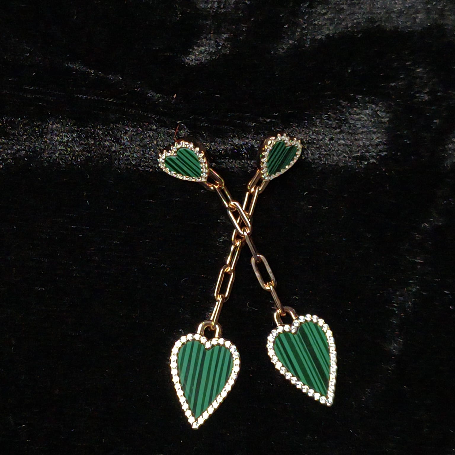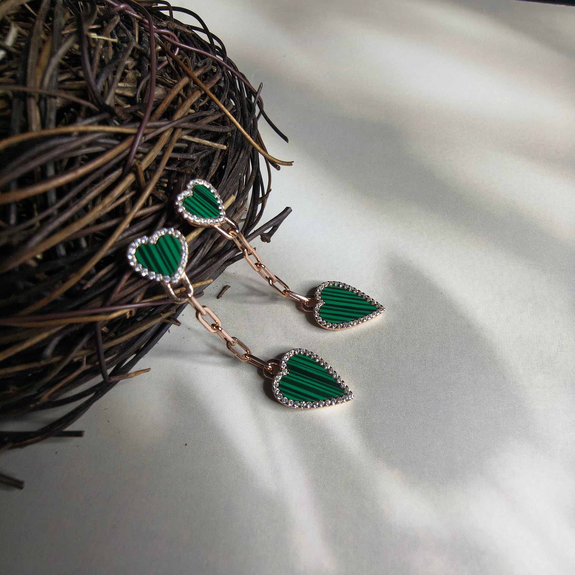 Design: Green heart-shaped drop earrings for a modern and feminine look