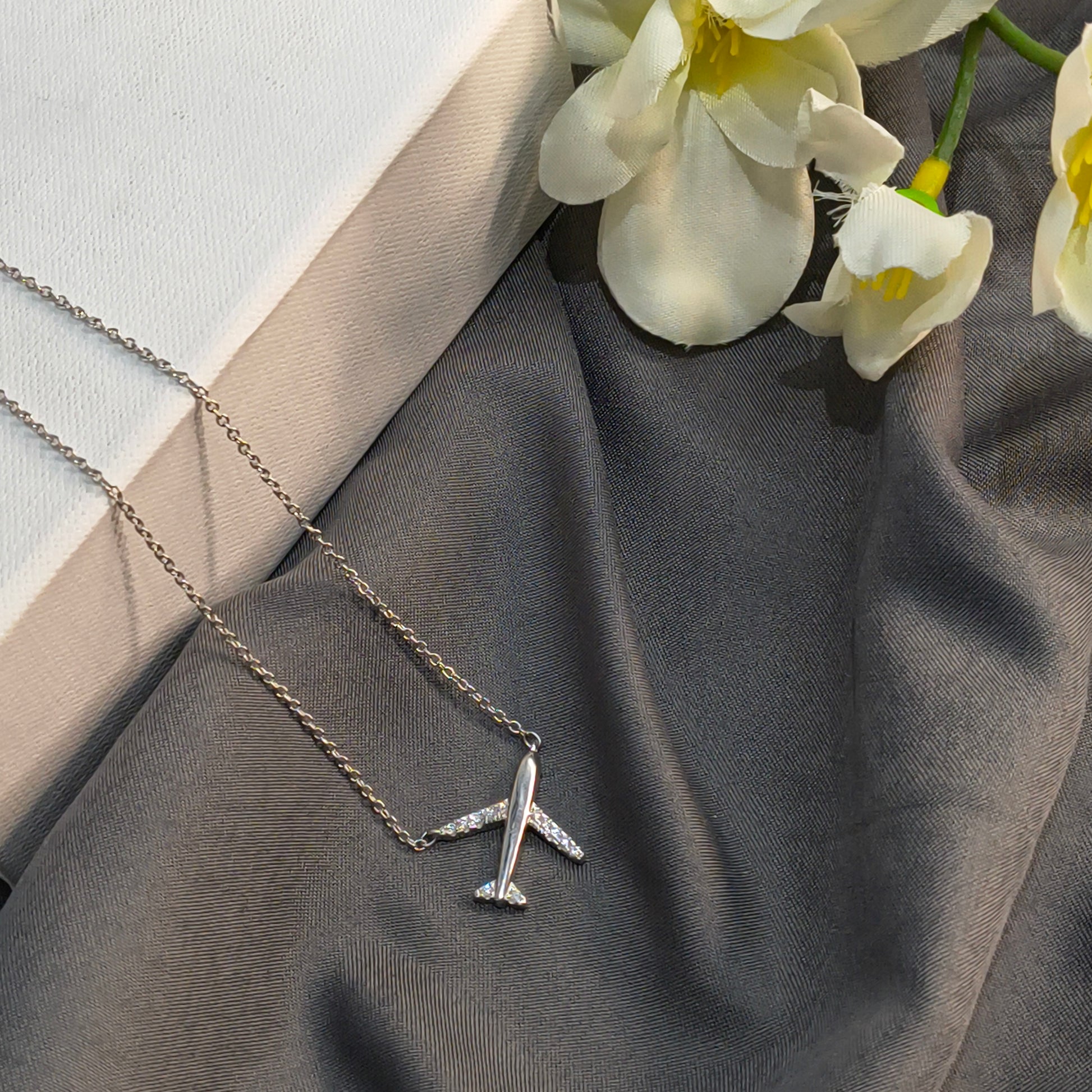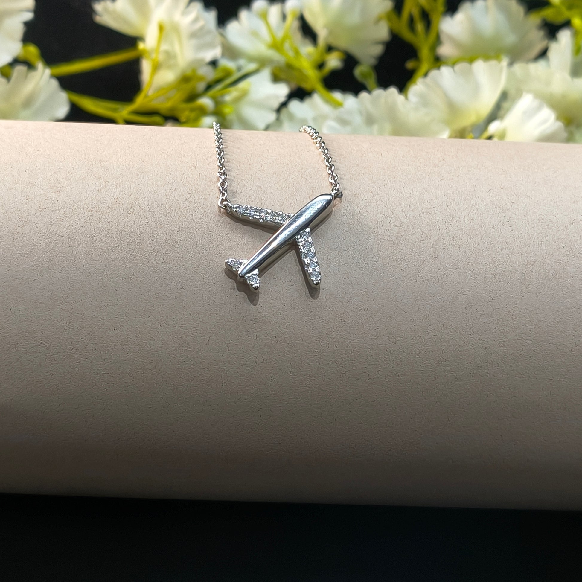 Silver Airplane Pendant is sleek and stylish, featuring wings studded with quality zirconia stones that add sparkle and charm. This pendant comes with a chain but is categorized as a pendant, perfect for adding a unique touch to any outfit.