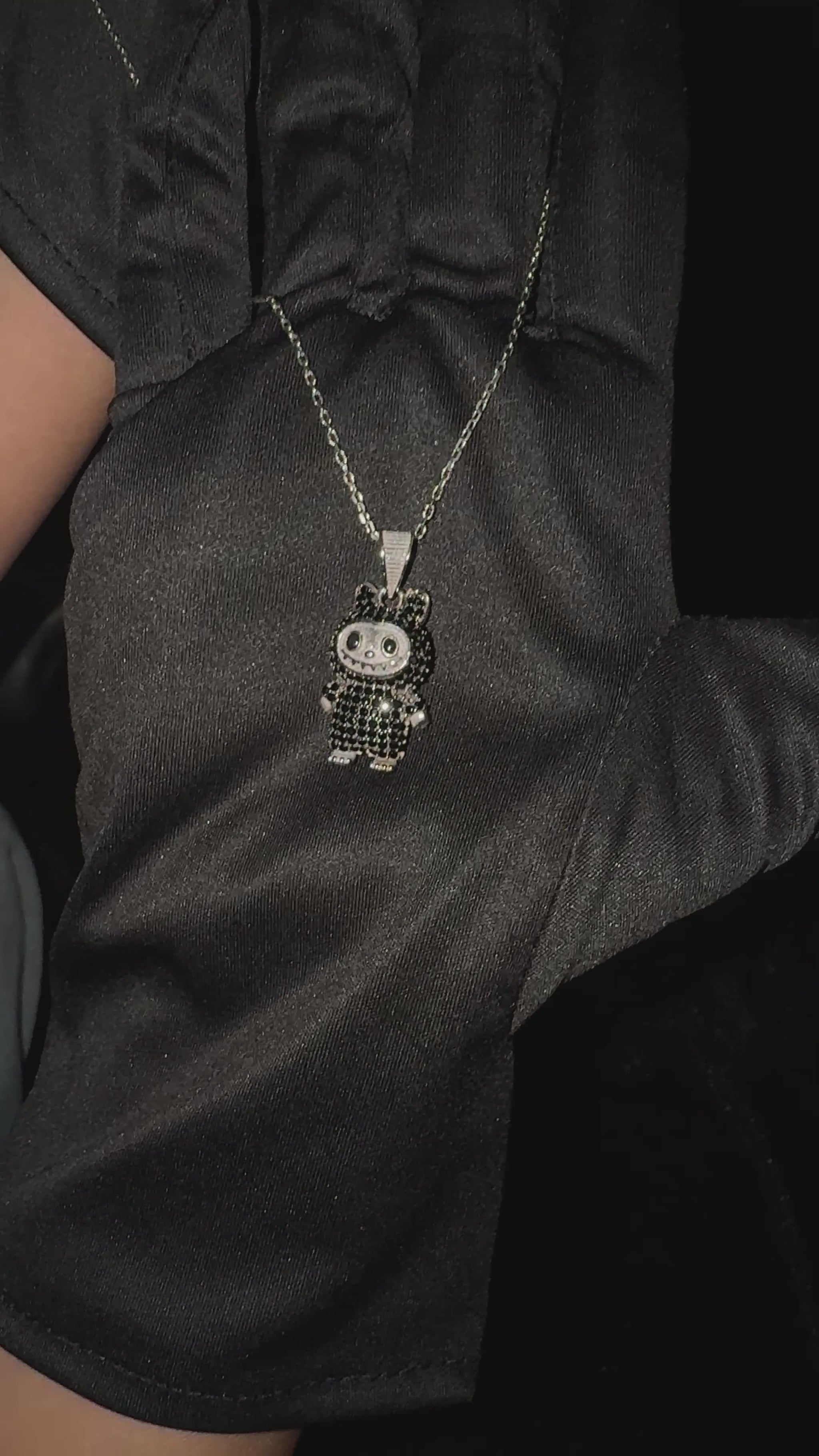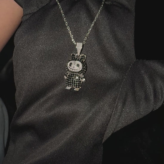 Silver Black Labubu Necklace