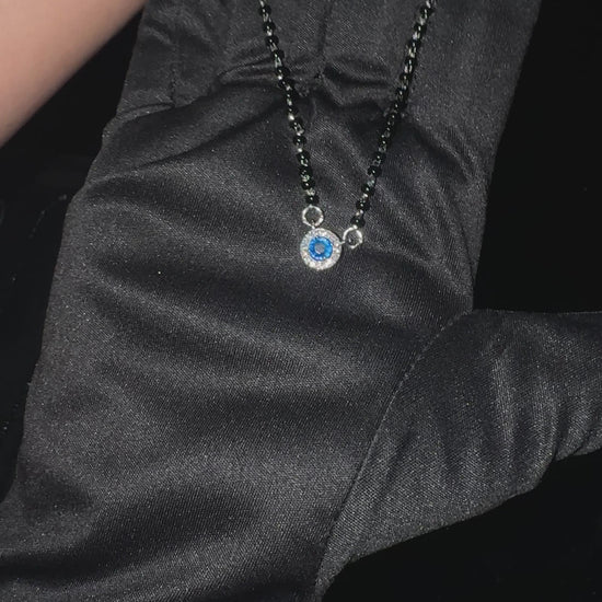 Blend tradition with elegance with the Silver Blue Stone Mangalsutra, crafted from premium 925 sterling silver. Featuring a sparkling white stone pendant accented with classic black beads, this mangalsutra offers a timeless design that is perfect for modern and traditional outfits alike. Anti-tarnish and skin-friendly, it stays comfortable on sensitive skin while retaining lasting shine. Ideal for daily wear, weddings, festivals, or gifting, it is a versatile and meaningful accessory.