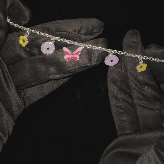 Welcome your precious new arrival with the delightful Silver Butterfly Garden Baby Bracelet. Crafted from premium, hypoallergenic 925 Sterling Silver, this enchanting piece features beautiful butterfly charms that celebrate new beginnings and makes a gorgeous first piece of jewellery.