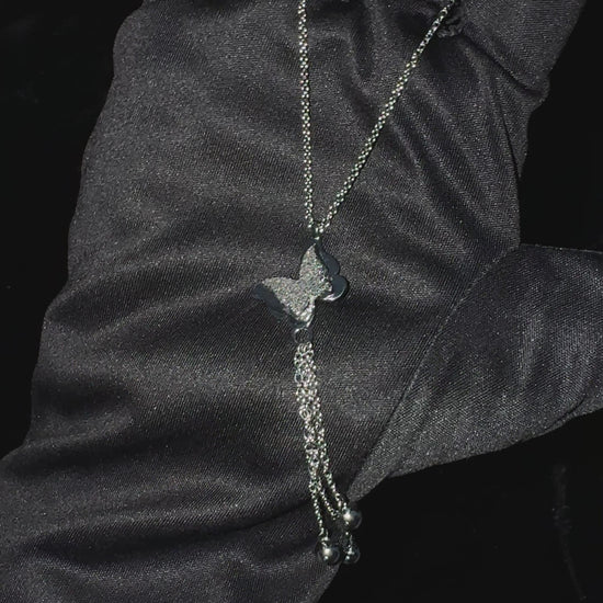 Capture the magic of flight with the Silver Butterfly Effect Necklace. A larger silver butterfly takes center stage, adorned with a smaller textured butterfly that adds depth and sparkle. Crafted from 925 sterling silver, this necklace brings a whimsical yet elegant touch to everyday outfits, brunches, or evening occasions.