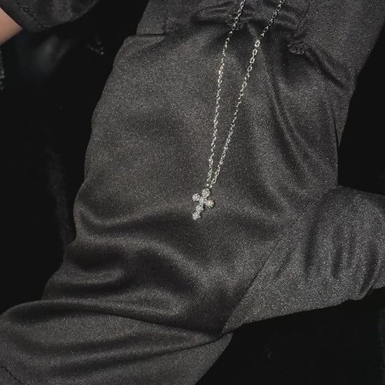 Silver Cross Necklace features a classic cross design studded with sparkling zirconia stones, blending faith and elegance in one beautiful piece.