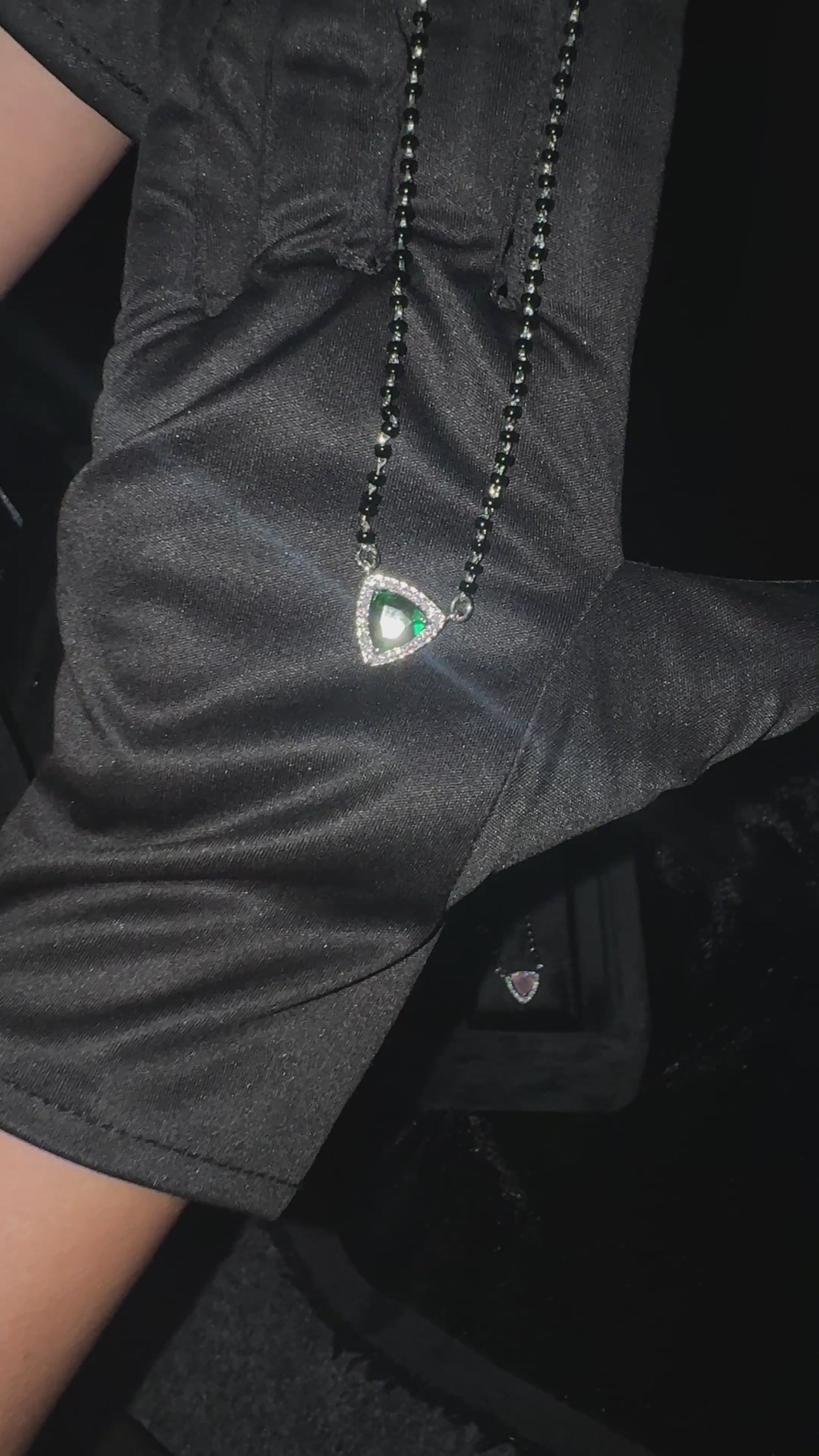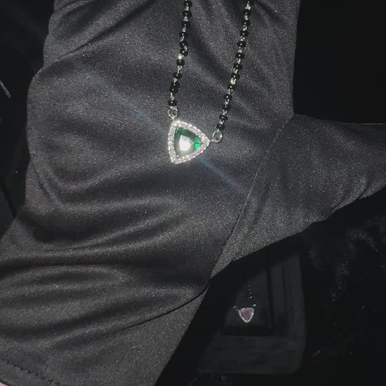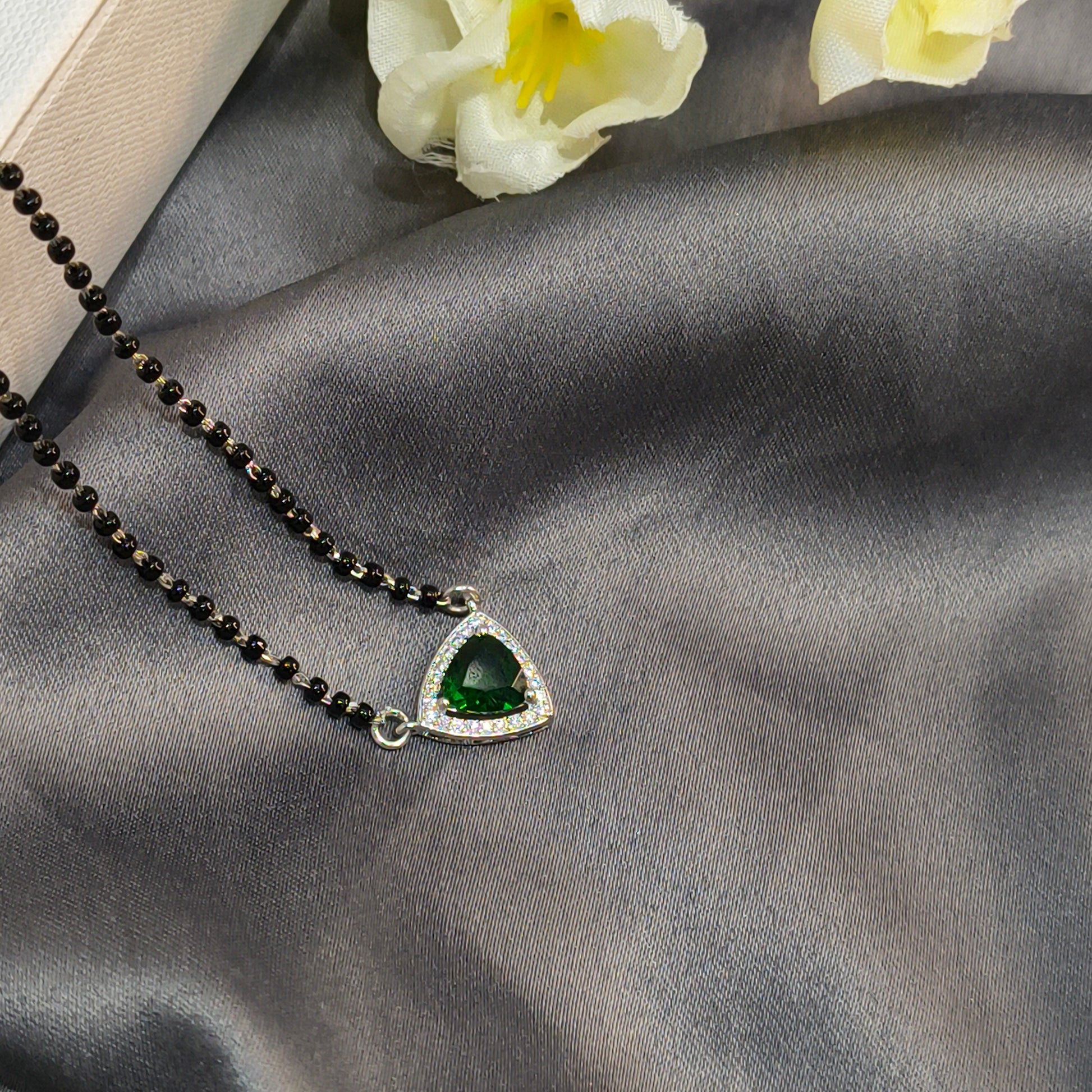 Bring a vibrant touch to tradition with our Silver Elegant Green Triangle Mangalsutra, crafted from premium 925 sterling silver. Featuring striking Green triangle accents, this mangalsutra combines elegance and modern design, perfect for daily wear, weddings, or festive occasions. Anti-tarnish and skin-friendly, it is gentle on sensitive skin while keeping its shine for years. A versatile accessory that beautifully complements both ethnic and contemporary outfits.