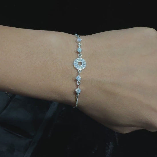 The Silver Halo of Light Bracelet embodies pure elegance in its minimalist design. At its heart lies a luminous pave-set circle, symbolizing unity and brilliance, while a delicate trail of sparkling stones appears to float gracefully along the slender chain. Handcrafted in 925 sterling silver, this bracelet is skin-friendly, anti-tarnish, and designed to complement both everyday looks and evening occasions with effortless sophistication.