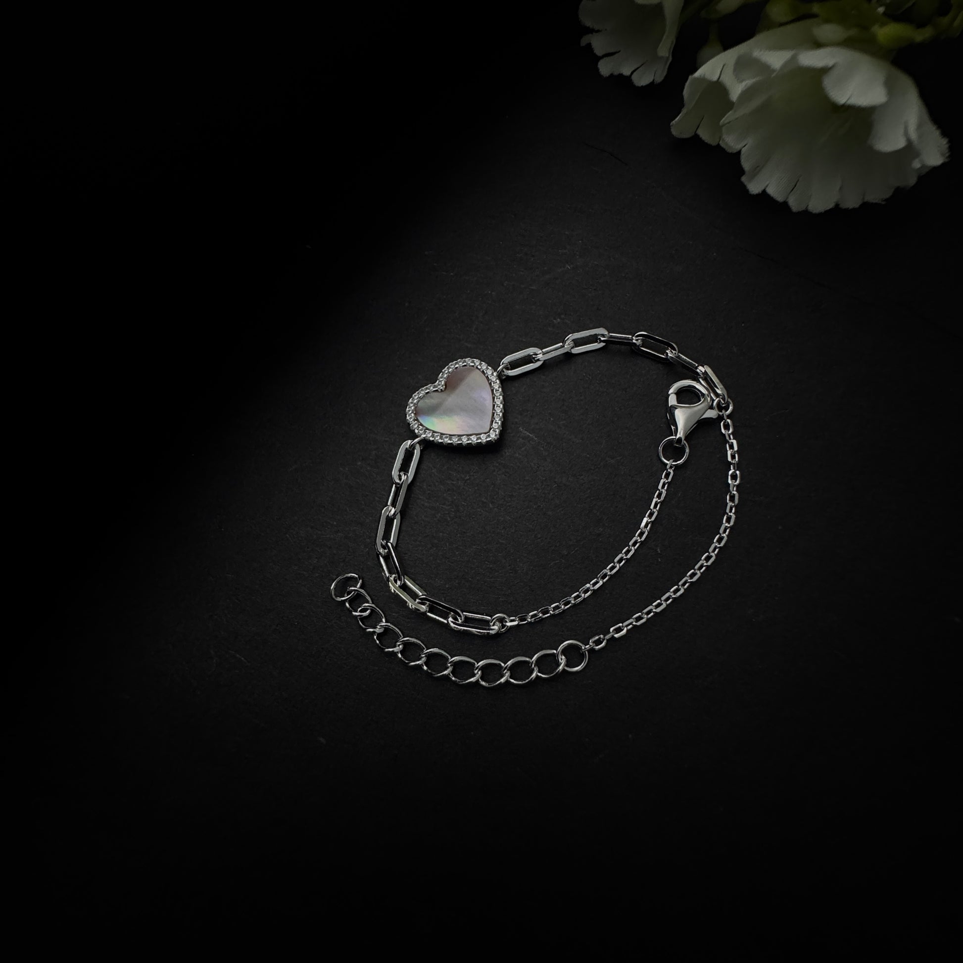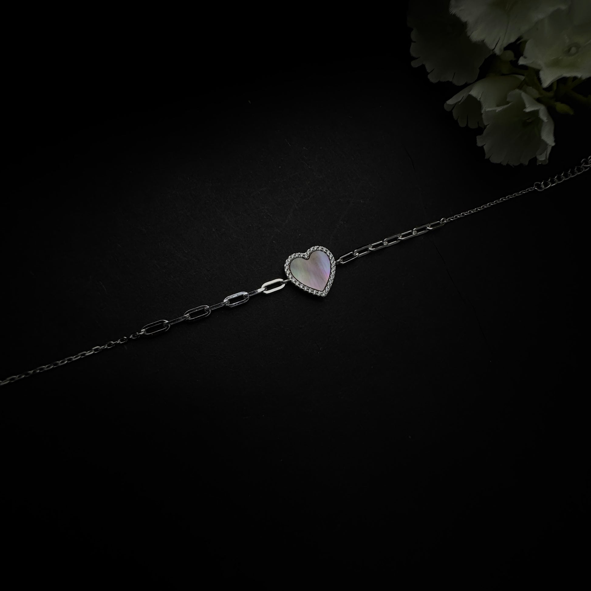 Bring a playful sparkle to your wrist with the Silver Heart Link Bracelet, crafted from 925 sterling silver. Featuring a sleek link chain and a heart charm that shimmers like a rainbow glow, this bracelet captures light beautifully, adding a magical, eye-catching effect to any outfit. Anti-tarnish and skin-friendly, it’s perfect for everyday wear, layering with other bracelets, or gifting to someone special.