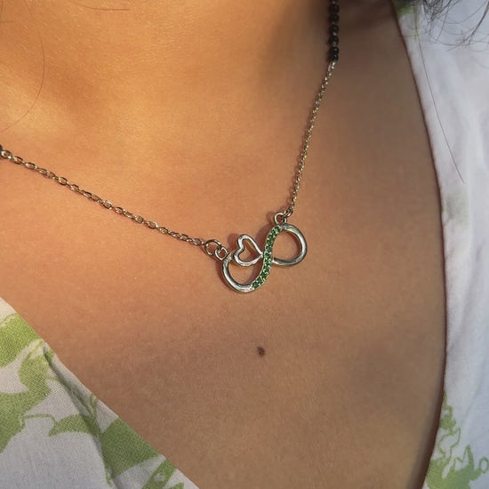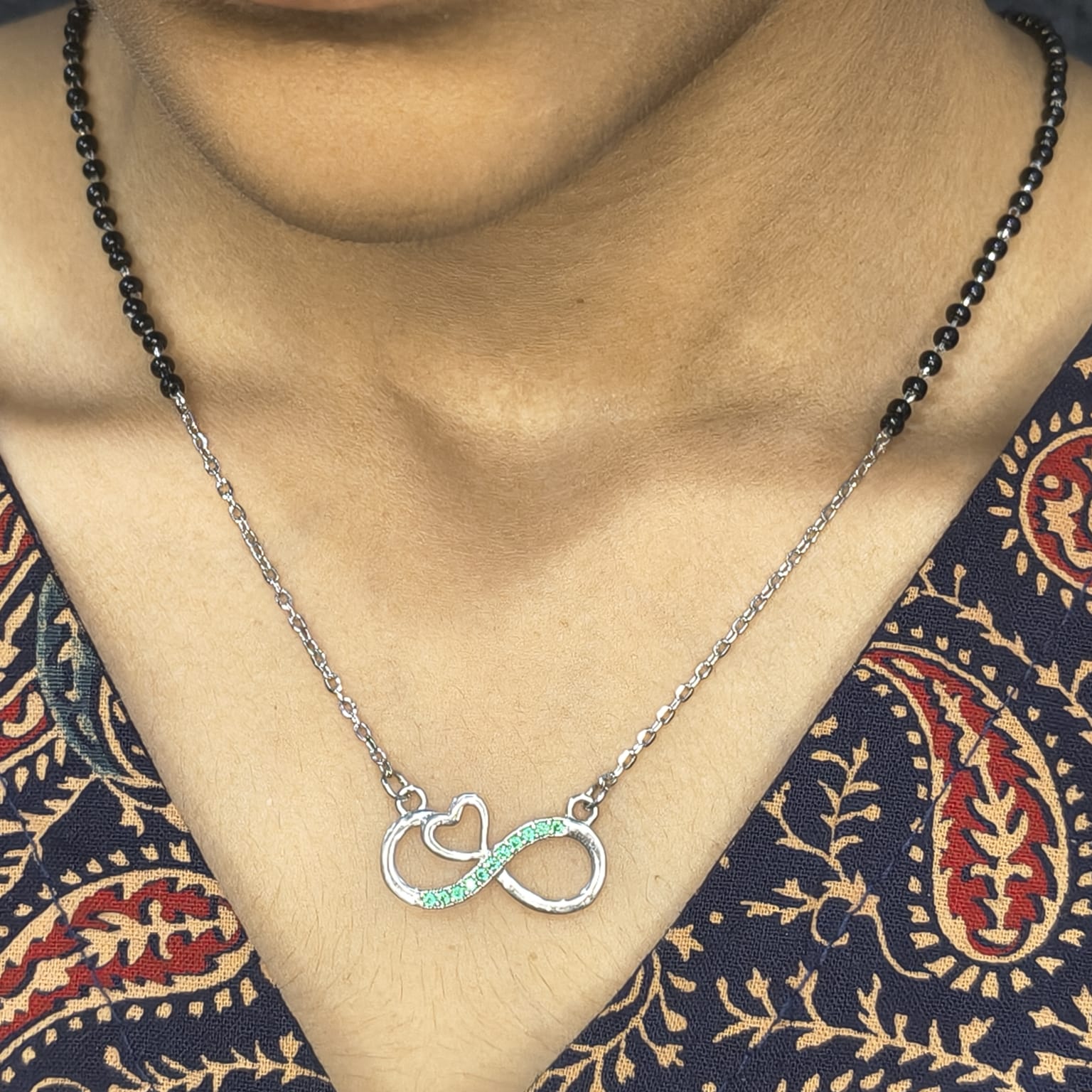 Celebrate eternal love with our Silver Infinity Chain Mangalsutra, crafted from premium 925 sterling silver. Featuring a sleek infinity chain design, this mangalsutra is both modern and timeless, perfect for everyday wear or special occasions. Anti-tarnish and skin-friendly, it is gentle on sensitive skin, ensuring comfort and lasting shine. A beautiful symbol of commitment, this piece adds elegance and sophistication to your jewellery collection.