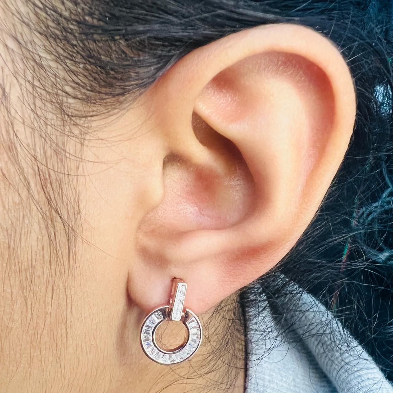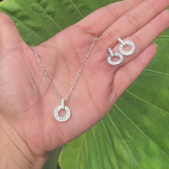 The matching earrings follow the same round, zircon-filled pattern, creating a perfectly coordinated and polished look.