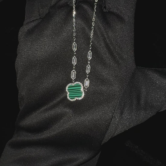 Bring a touch of luck and elegance to your style with the Silver Malachite Clover Necklace. Featuring a malachite-inspired four-leaf clover charm outlined with sparkling diamonds, this 925 sterling silver necklace symbolizes prosperity and good fortune. Its versatile design makes it perfect for everyday chic outfits, brunches, or evening events, adding a subtle statement to any look.