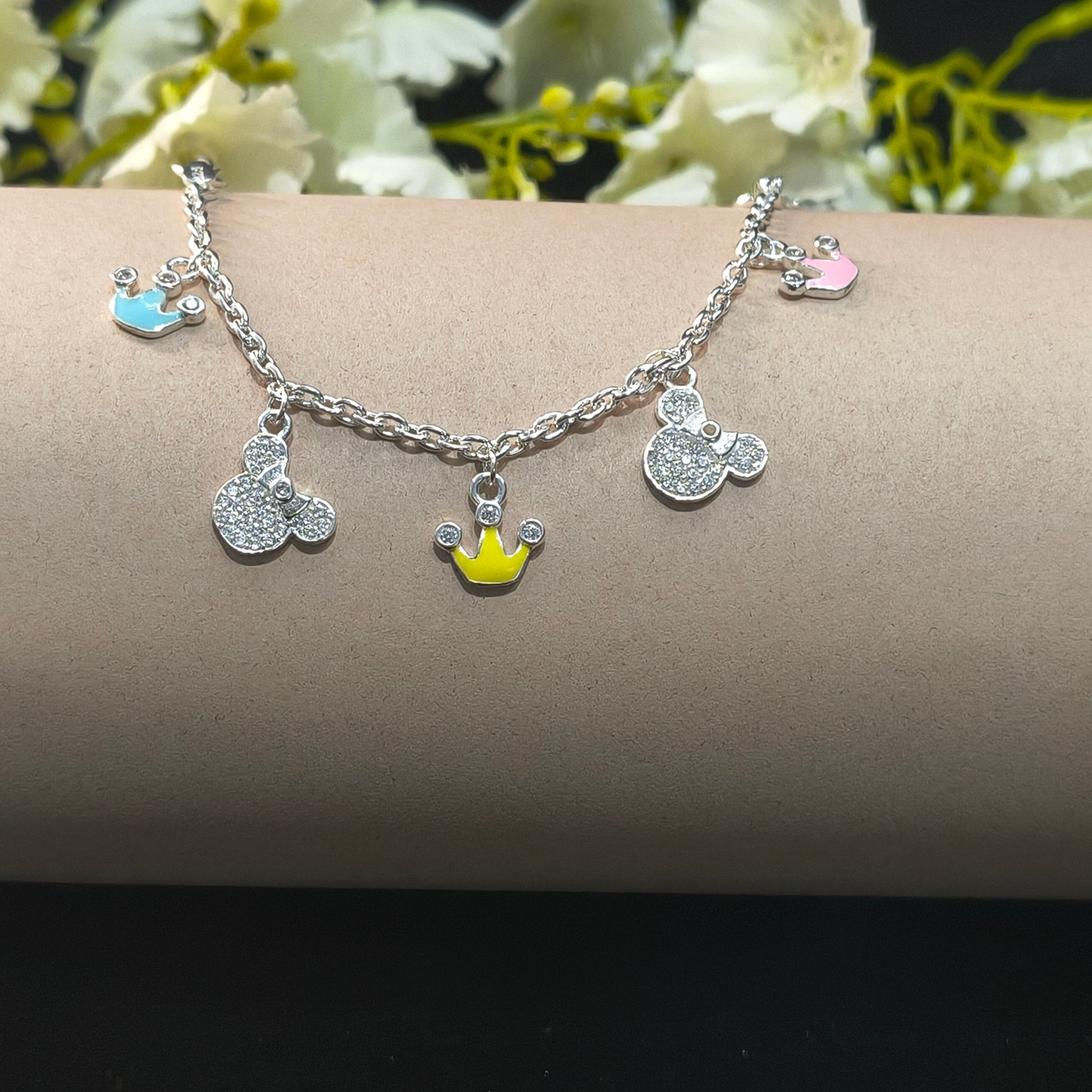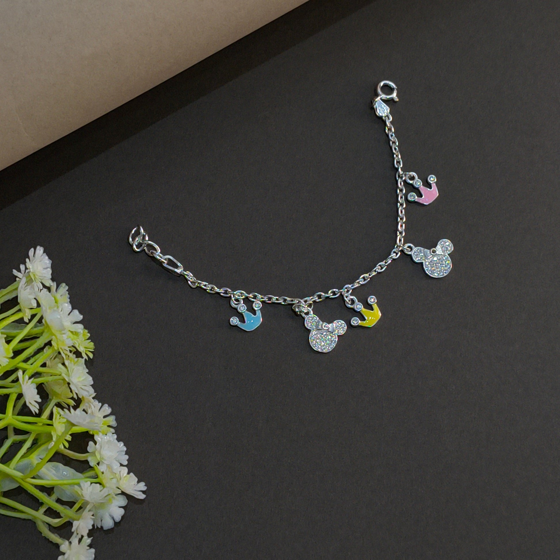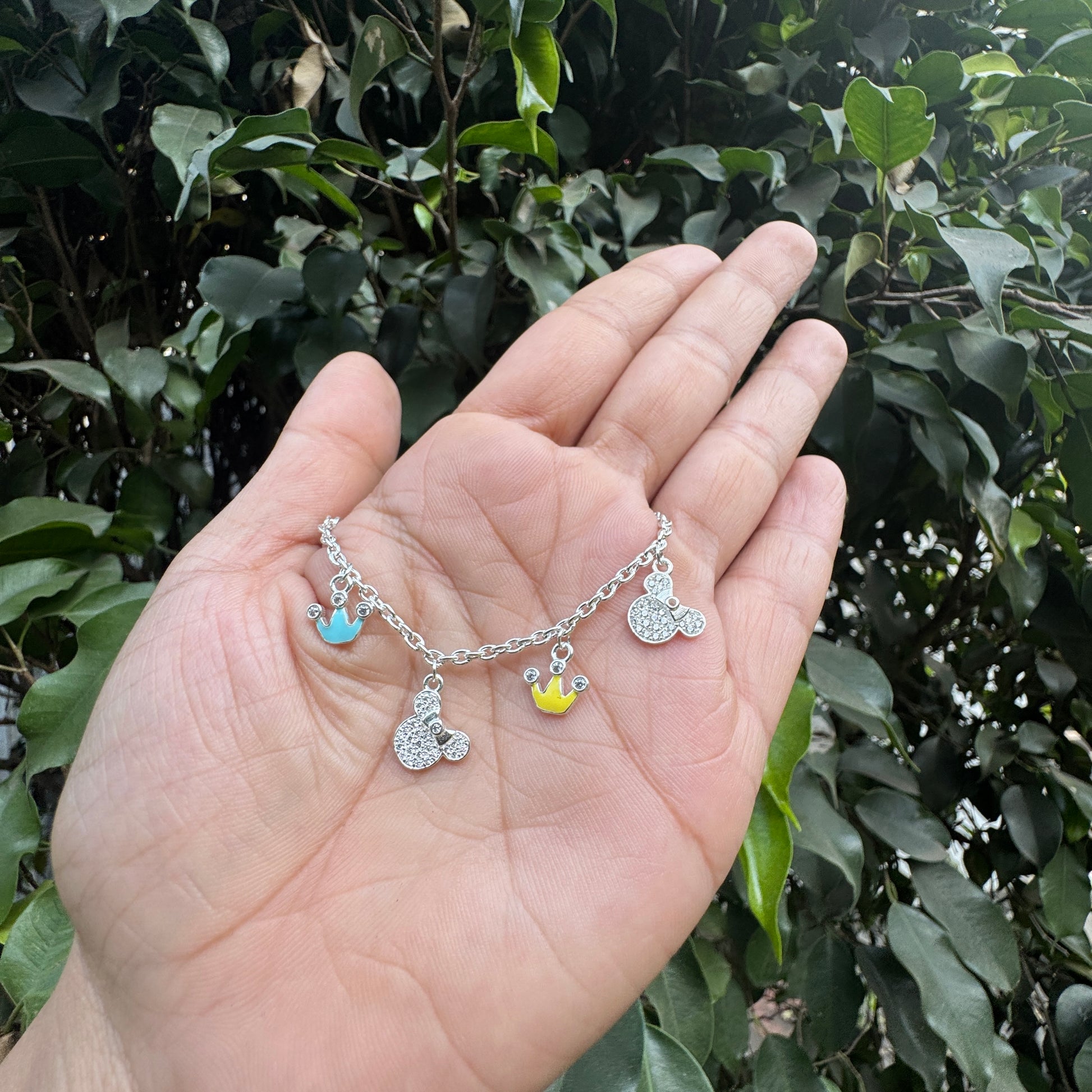 Add a touch of royal charm to your little one’s jewellery collection with the Silver Royal Crown & Mickey Baby Bracelet. Crafted from high-quality 925 sterling silver, this adorable bracelet features a delicate crown and hat design, designed to delight both babies and parents. Anti-tarnish and skin-friendly, it’s safe for sensitive baby skin and perfect for everyday wear or special moments. A timeless keepsake gift that celebrates the joy and innocence of childhood.