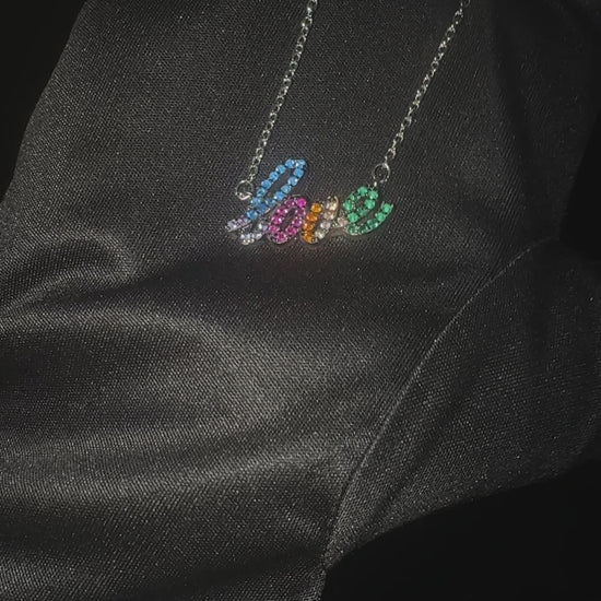 Box chain with individual letter charms spelling "LOVE"
