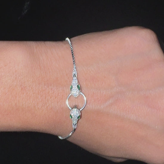 Silver Serpent Head Bracelet with Zircon Stones
