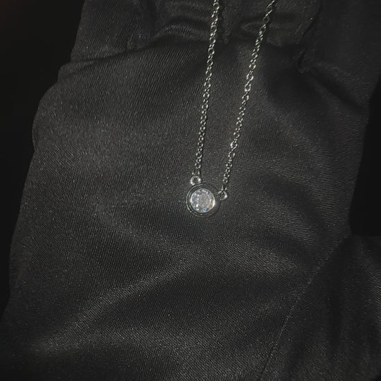 Silver Solitaire Pendant features a single dazzling stone set within a simple circular frame, offering timeless elegance in a minimalist design.