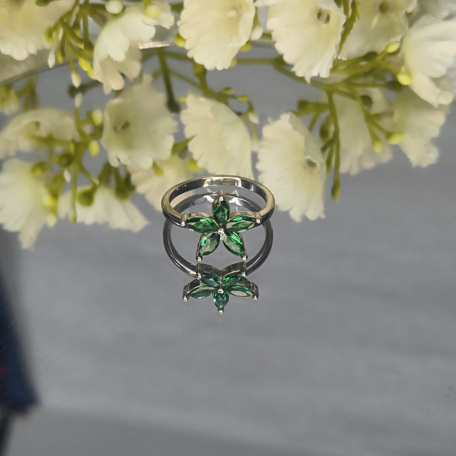 Bring a touch of natural elegance to your jewellery collection with the Silver Emerald Bloom Ring, beautifully crafted from premium 925 sterling silver. Featuring a rich emerald-green stone inspired by blooming petals, this ring radiates freshness, sophistication, and timeless charm. Designed to be anti-tarnish and skin-friendly, it offers lasting shine and all-day comfort. Perfect for everyday wear, festive occasions, or gifting, this ring effortlessly complements both ethnic and modern styles.