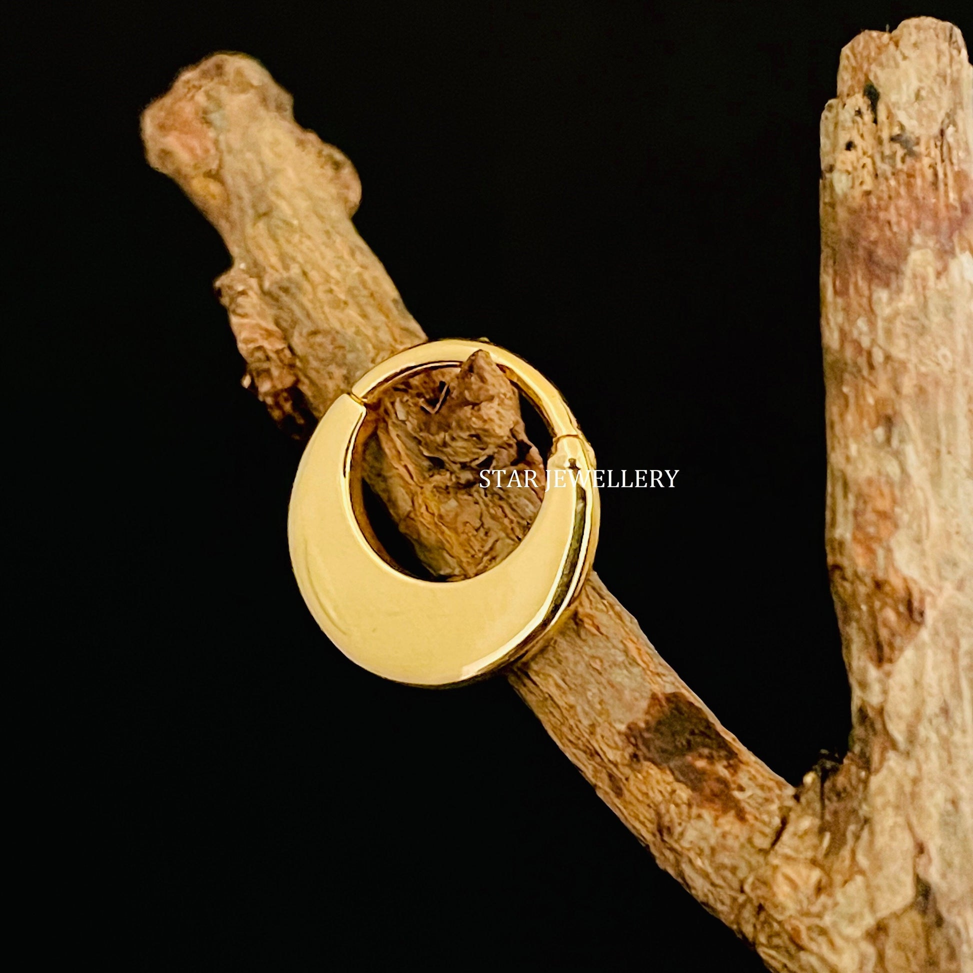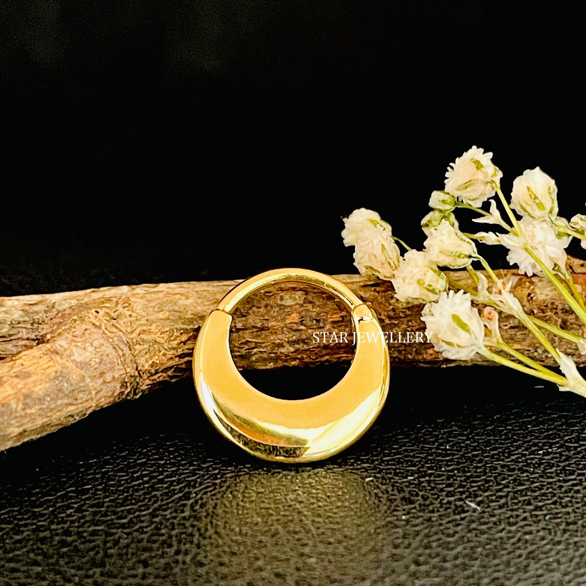 Solid Gold Crescent Moon Septum Clicker Piercing, Plain Gold Bridal Septum Piercing, 14K Solid Gold Crescent Delicate Septum Earring