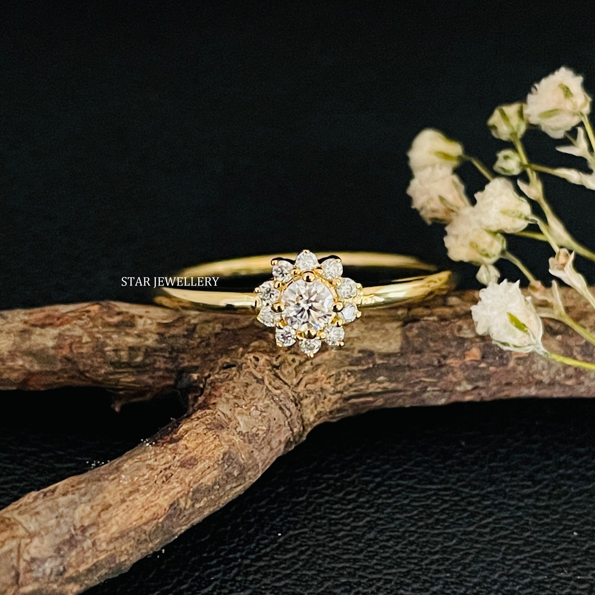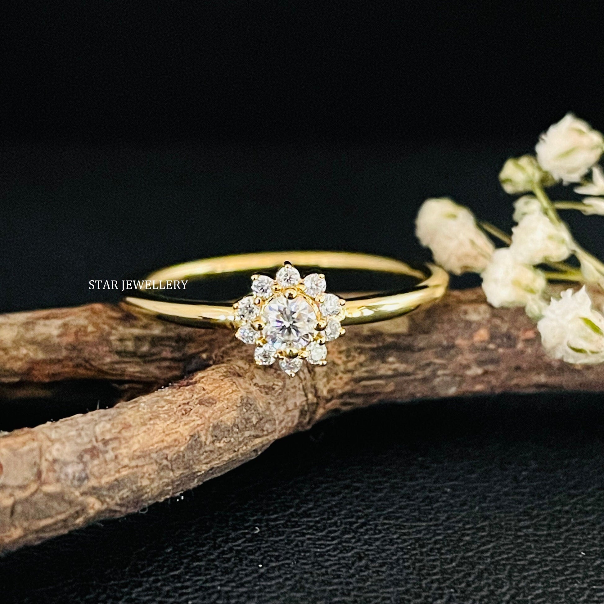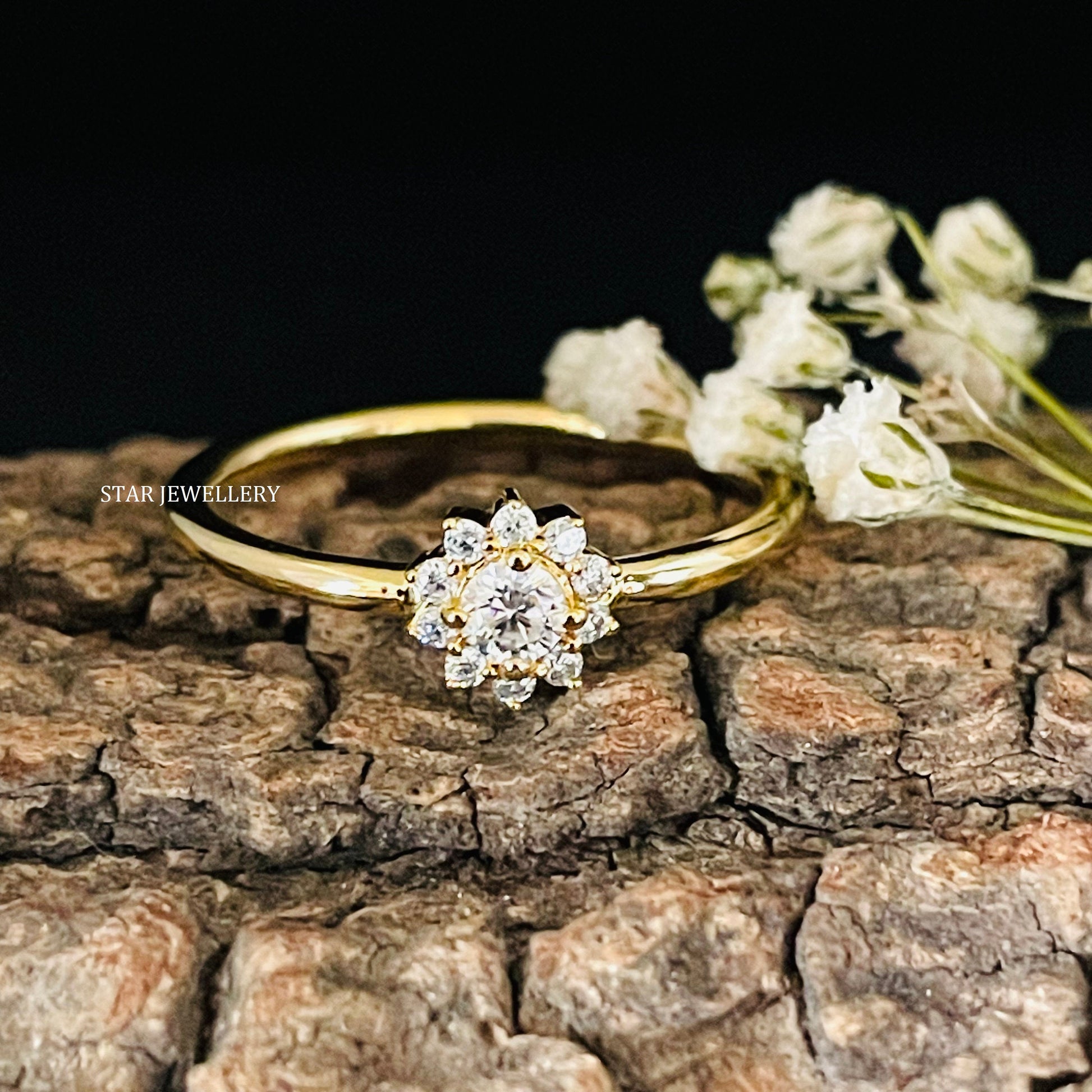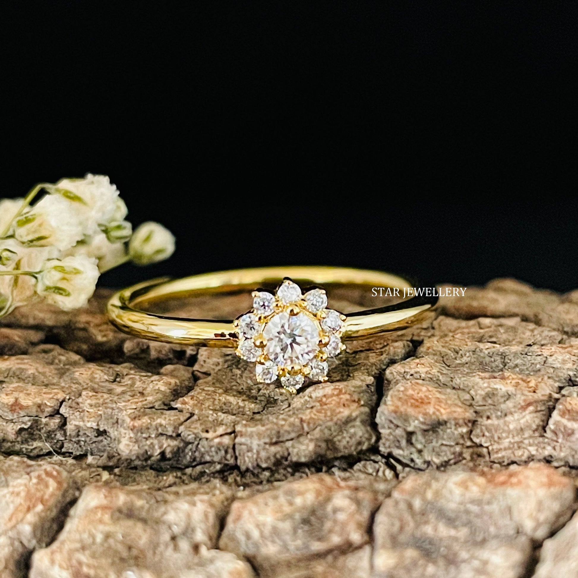 Solid Gold CVD Diamond Dainty Flower Minimalist Ring