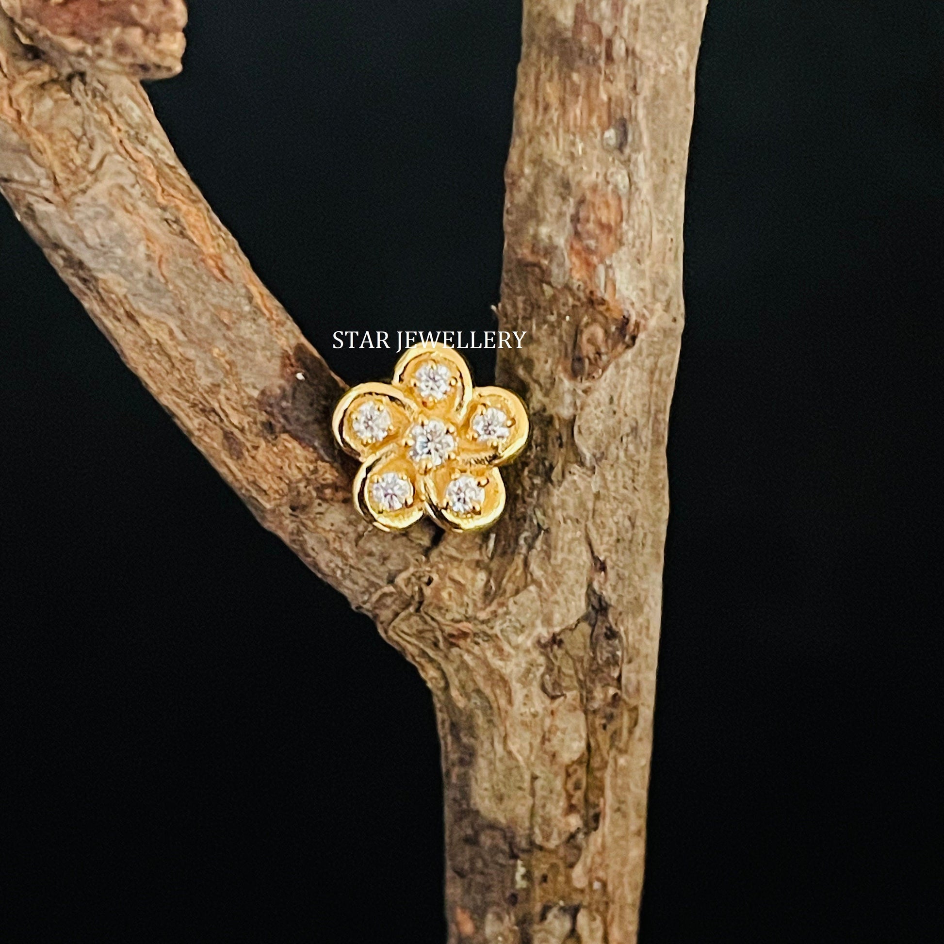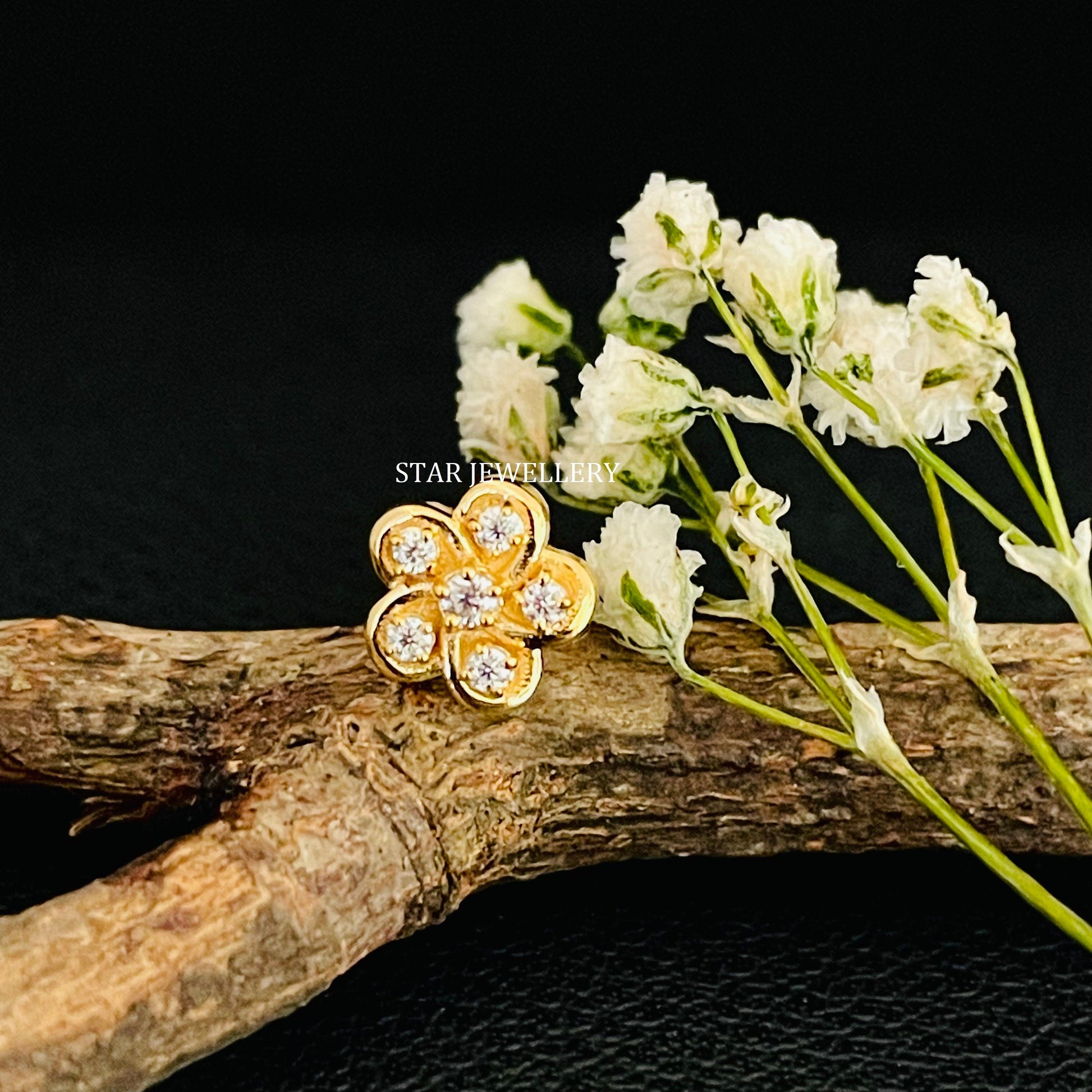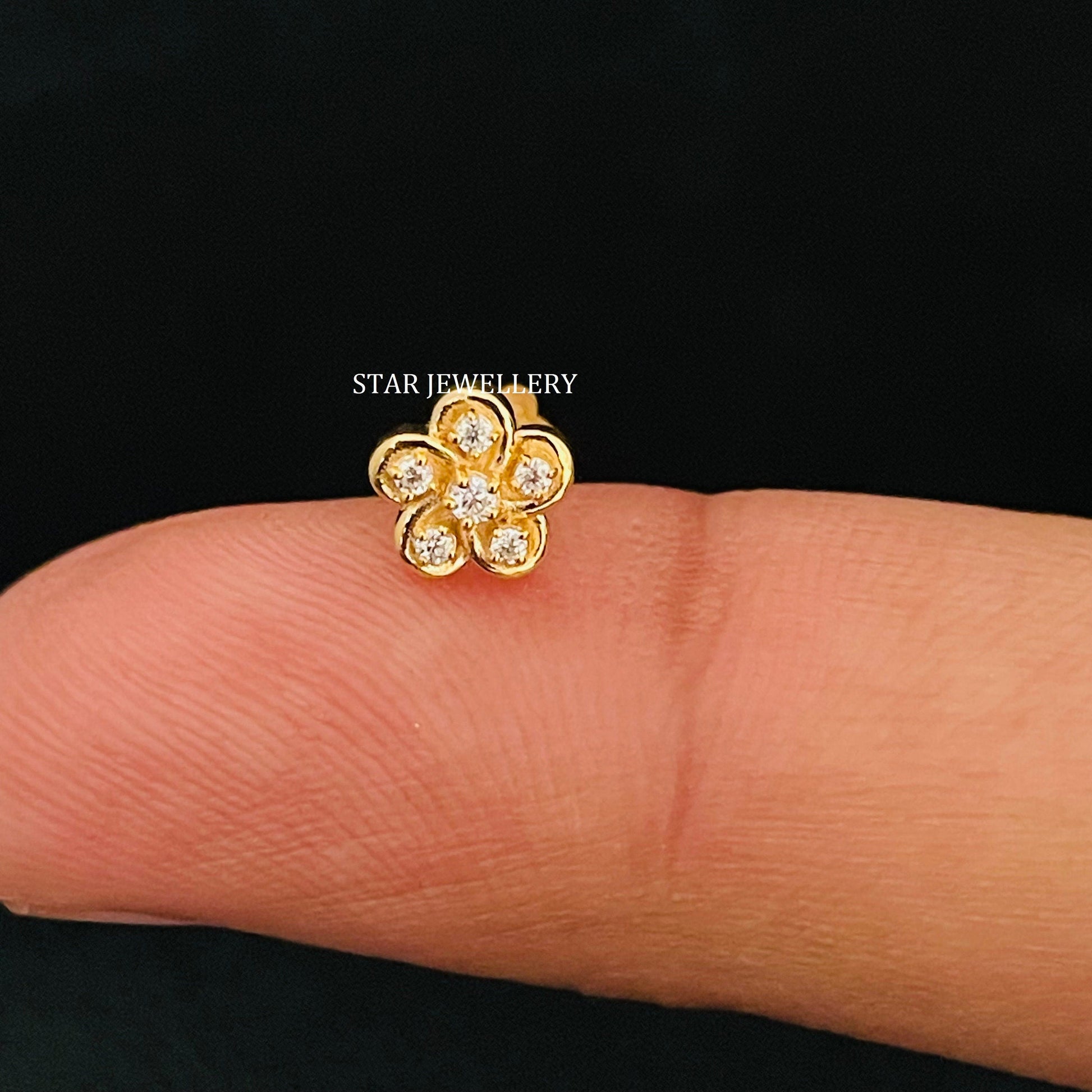 â–¶ Solid Gold Genuine Diamond Cluster Ear Piercing, Natural Diamond 5 Petal Twist Flower Piercing for Nose, Helix, Conch, Earlobe, Rook, Tragus
