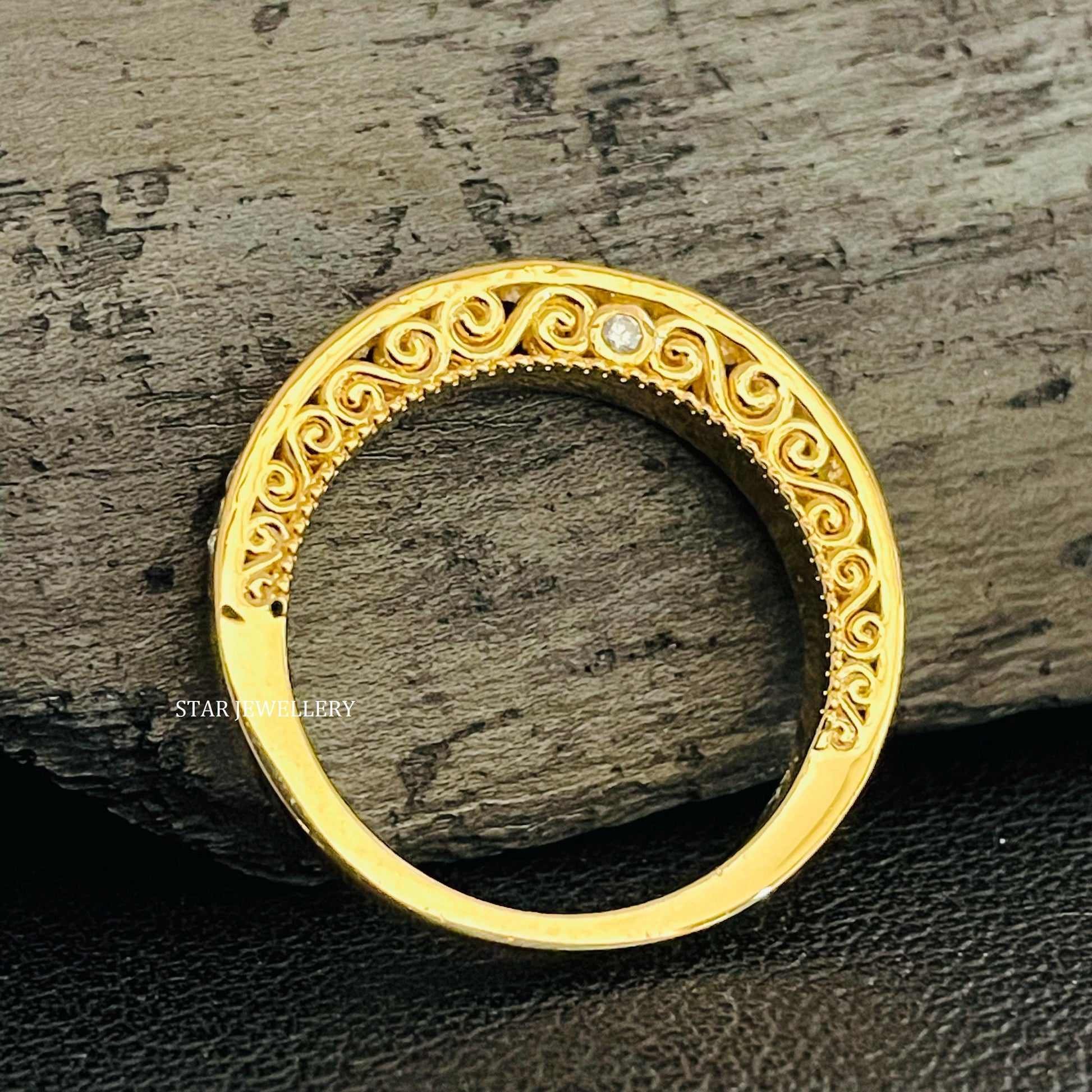 Solid Gold Half Eternity LAB Diamond Miligrain Ring, 14K Gold Natural Diamond Miligran Ring, Natural Diamond Solid Gold Thin Ring for her, Graduation Gift