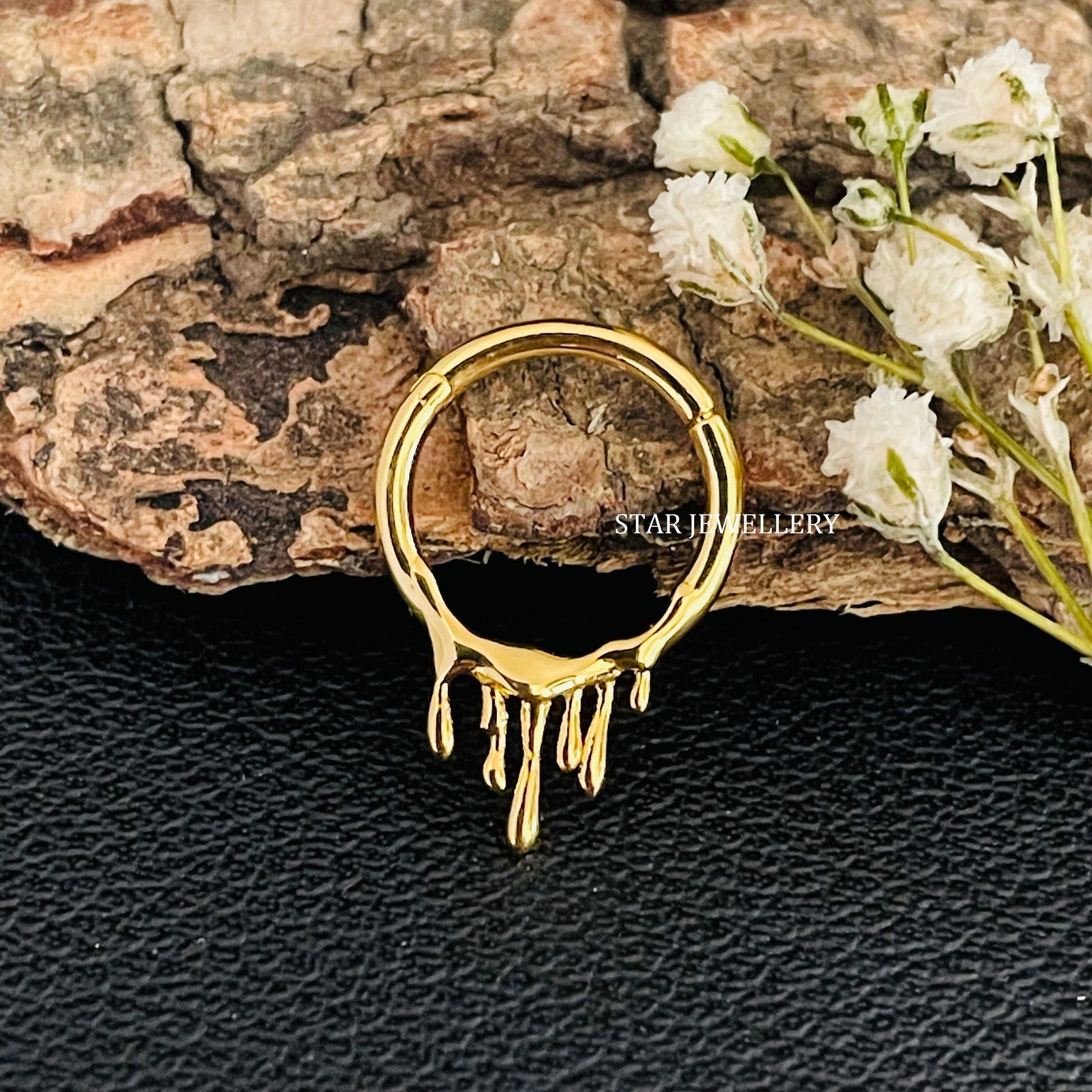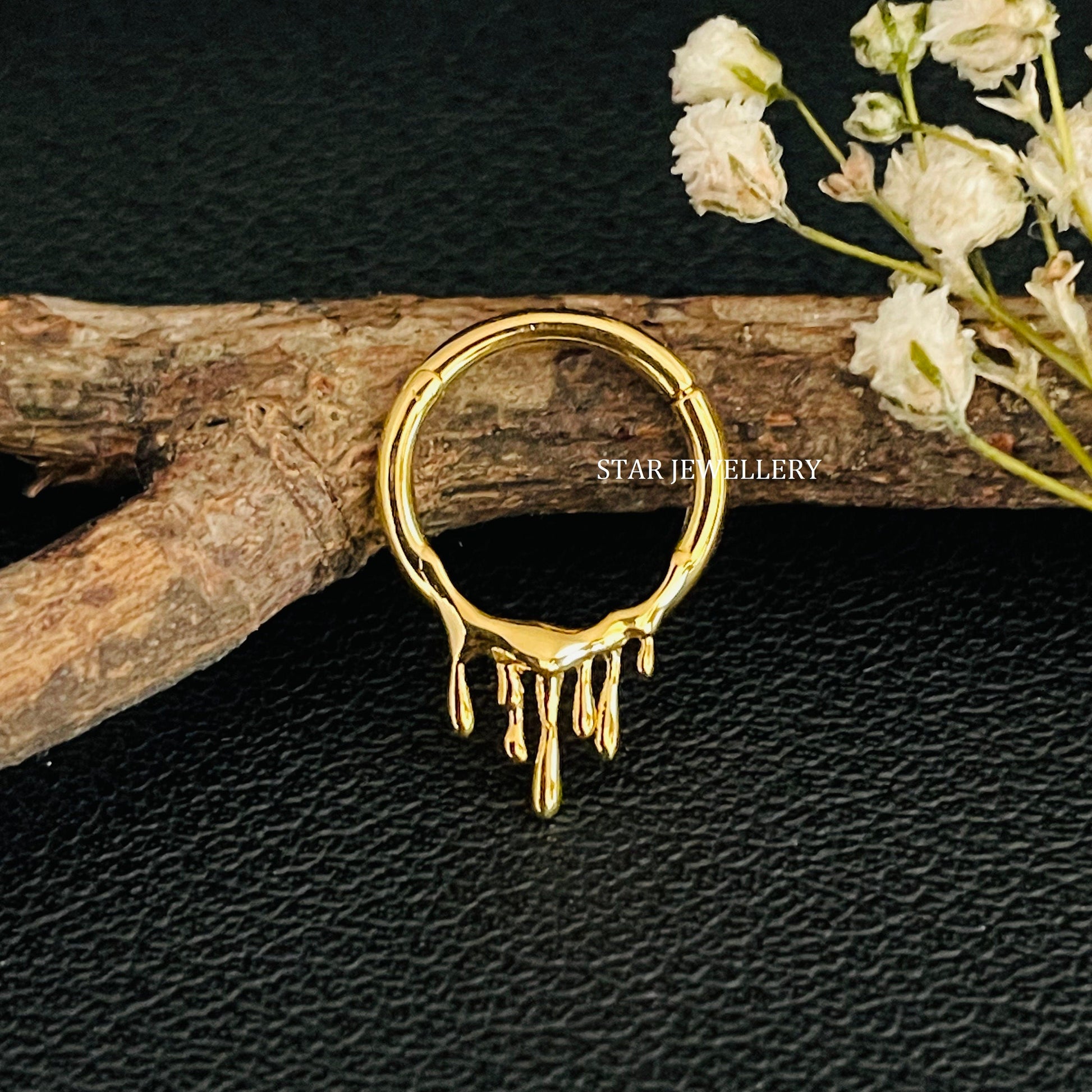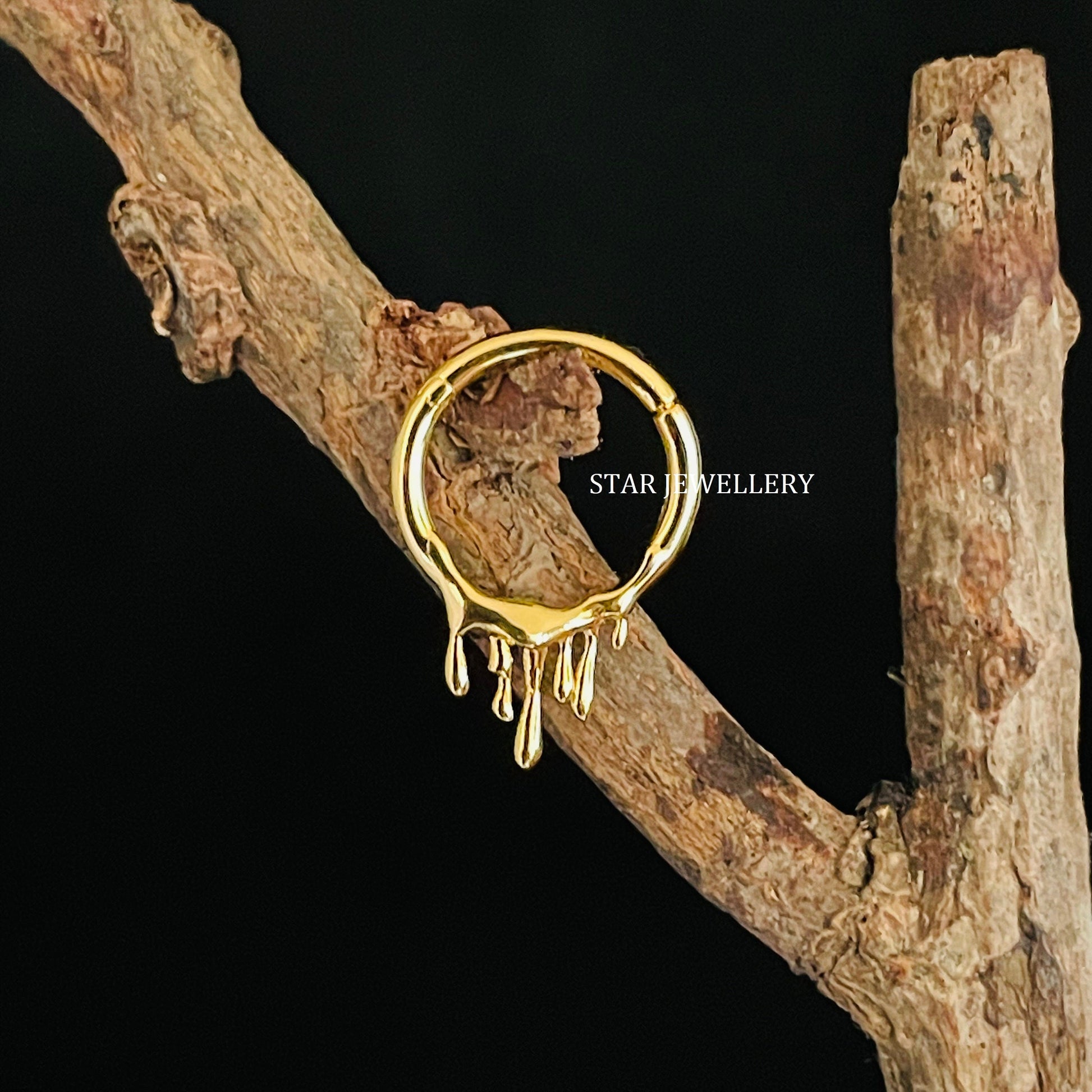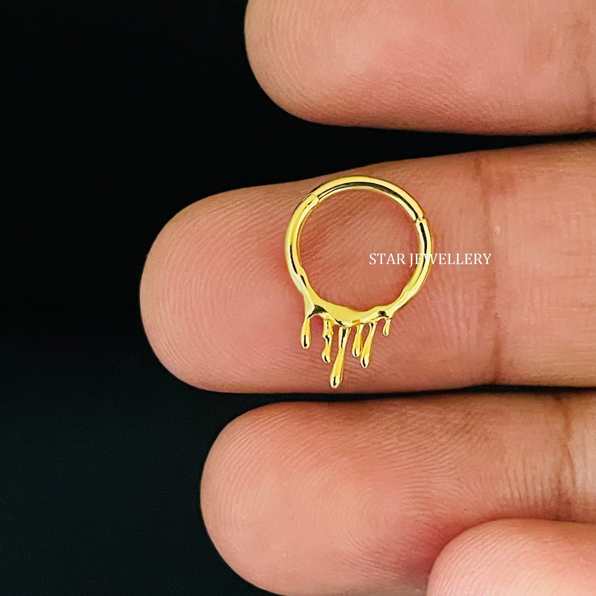 Solid Gold Lava Septum Piercing, 14K Solid Gold Melting Effect Diamond Septum Piercing, Solid Gold Lava Septum Graduation Gift Piercing