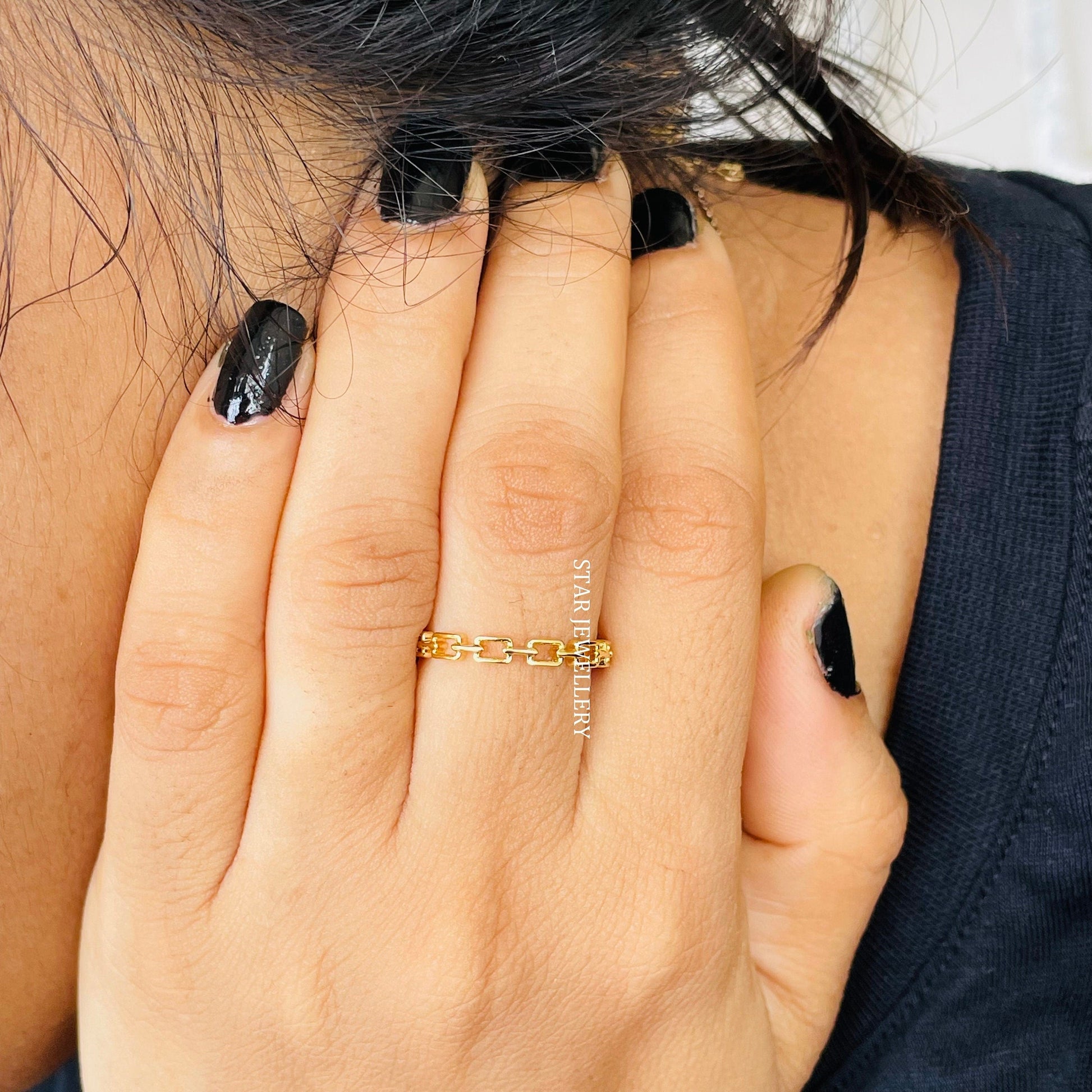 Solid Gold Link Ring, Everyday Wear Solid Gold Plain Link Ring for her, 14K Gold Minimalist Link Ring for her, Graduation Gift for her
