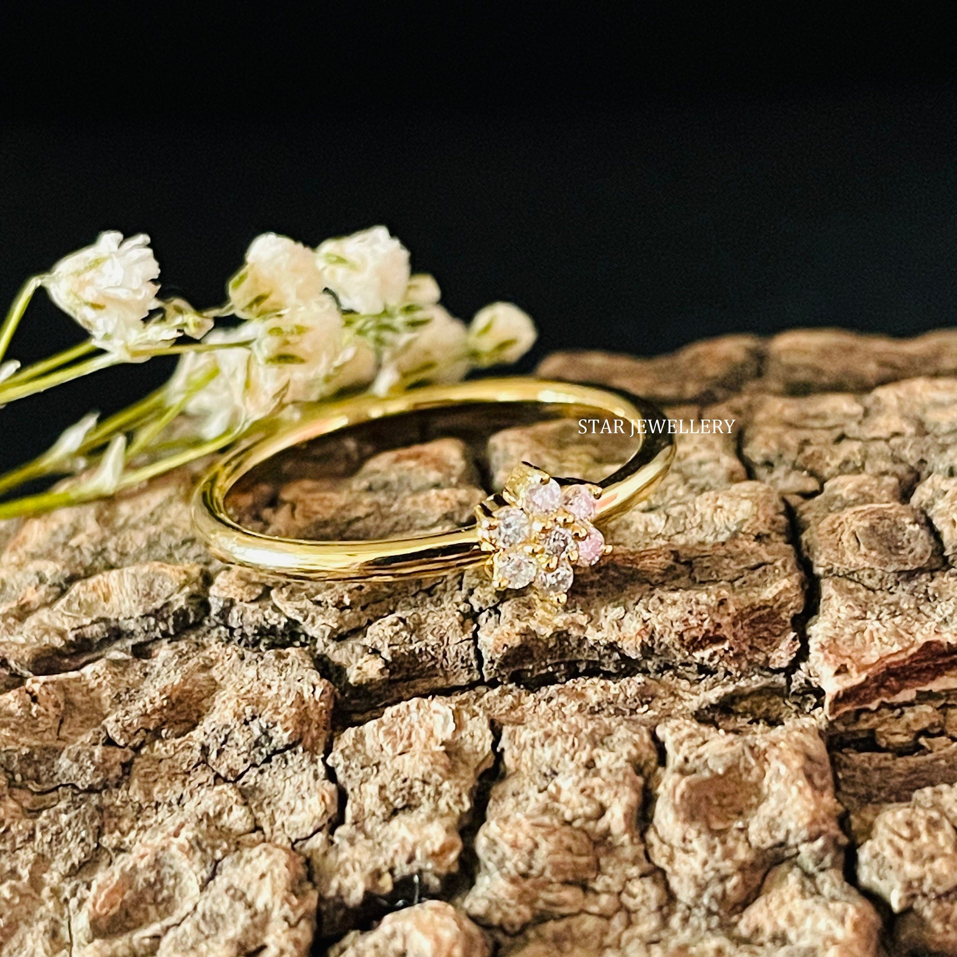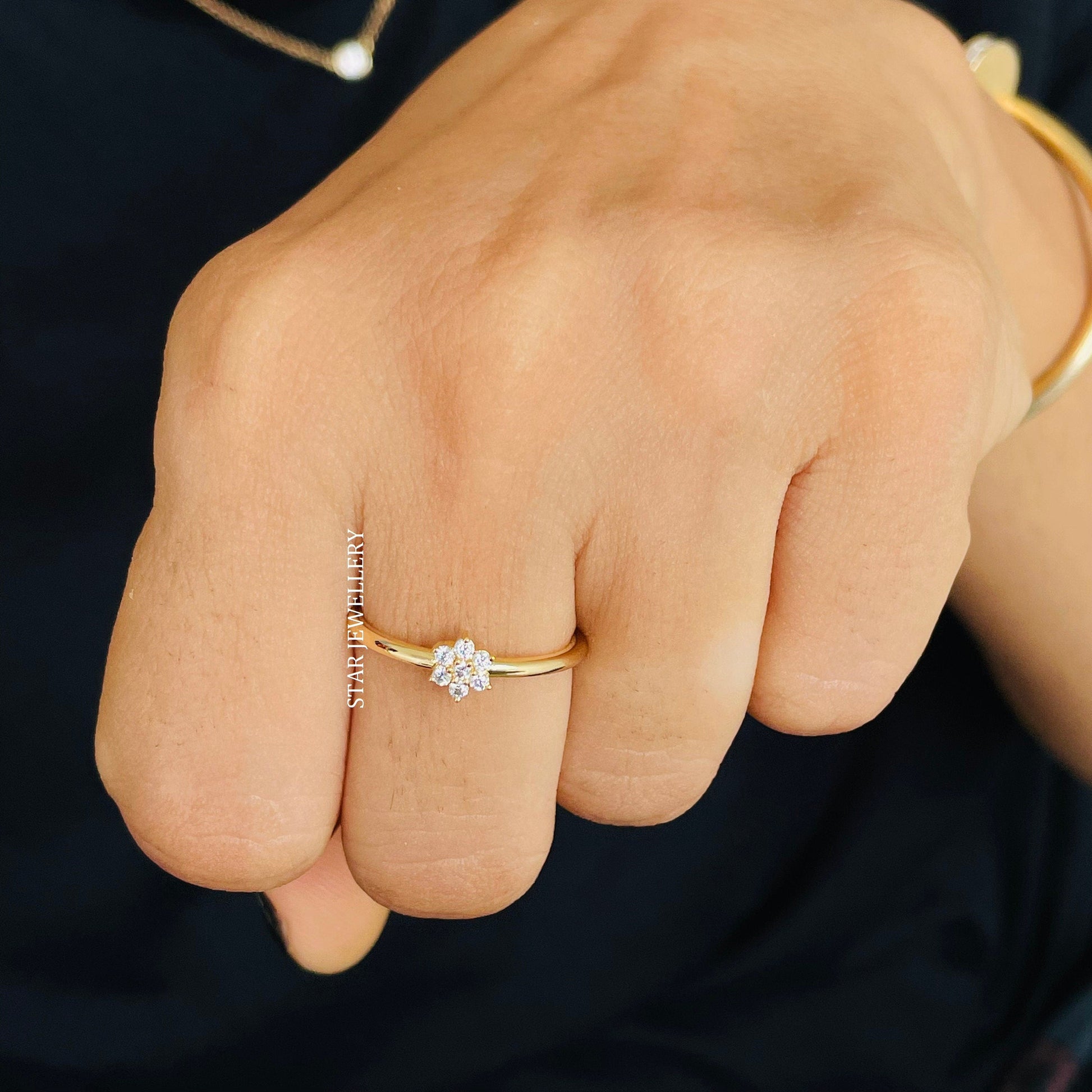Solid Gold Natural Diamond Dainty Flower Minimalist Ring for her, 14K Solid Gold Multi Stone Flower Ring, Dainty Flower Ring Graduation Gift