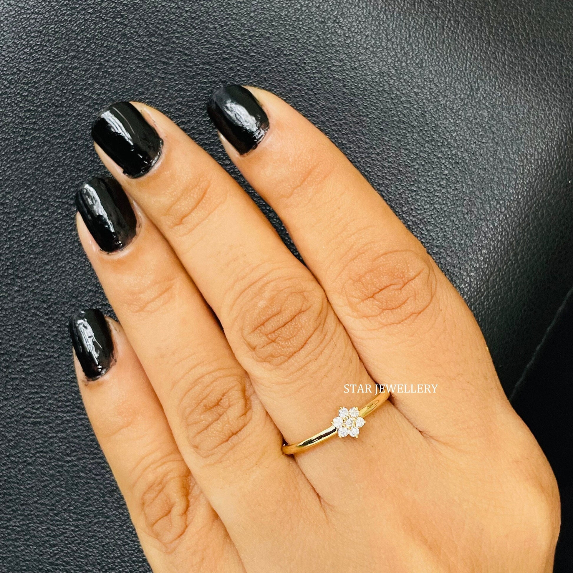 Solid Gold Natural Diamond Dainty Flower Minimalist Ring