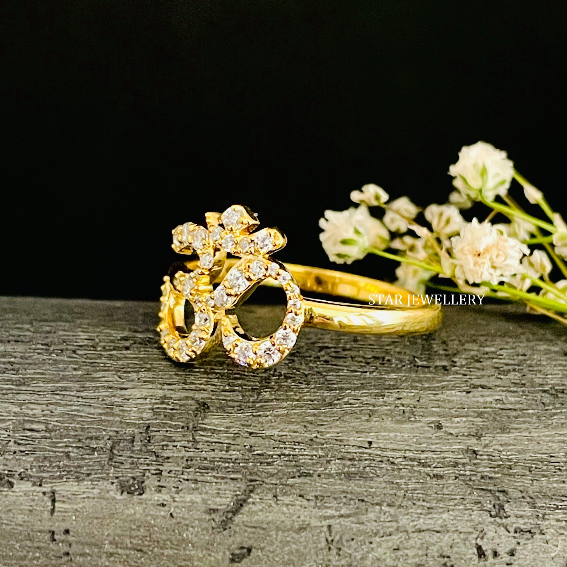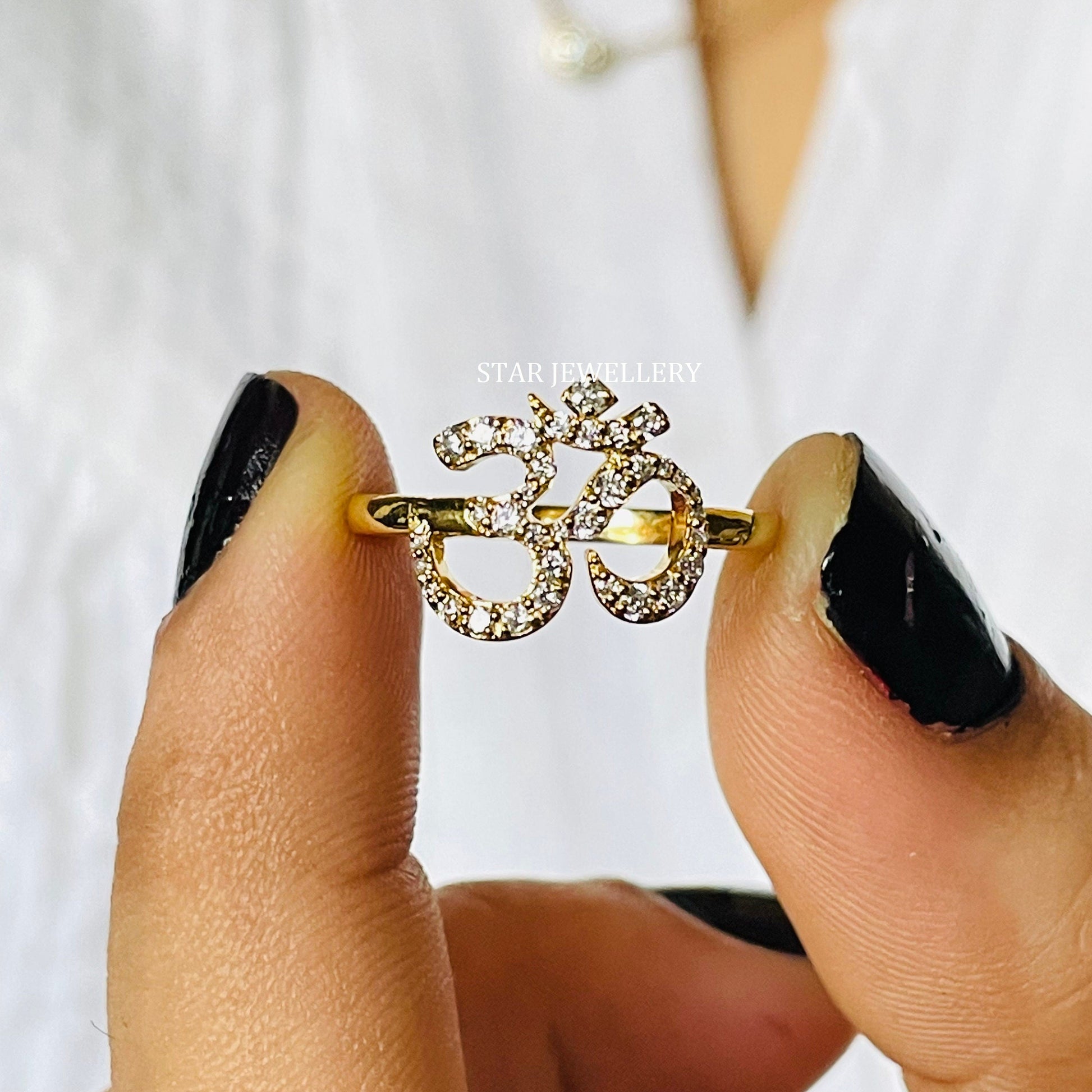 Solid Gold Natural Diamond OM Ring, OM Yoga Diamond Ring, 14K Gold Natural Diamond OM Yoga Ring for her, Genuine Diamond Ohm Yoga Ring