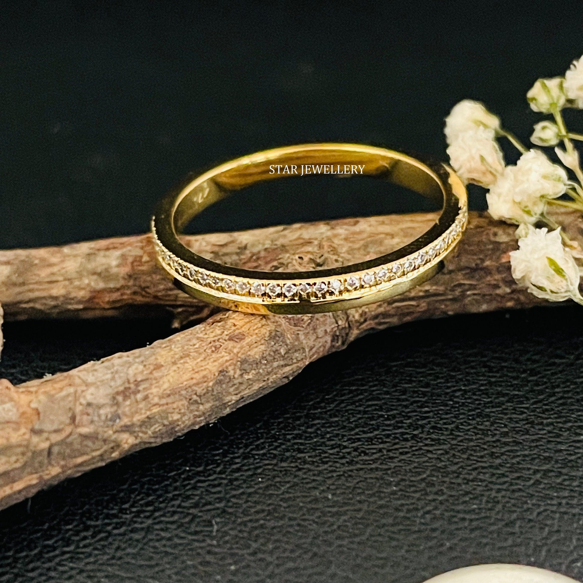 Solid Gold Pave Set Diamond Ring, 14K Gold Pave Diamond Thin Wedding Ring, Lab Diamond Solid Gold Thin Ring for her, Graduation Gift