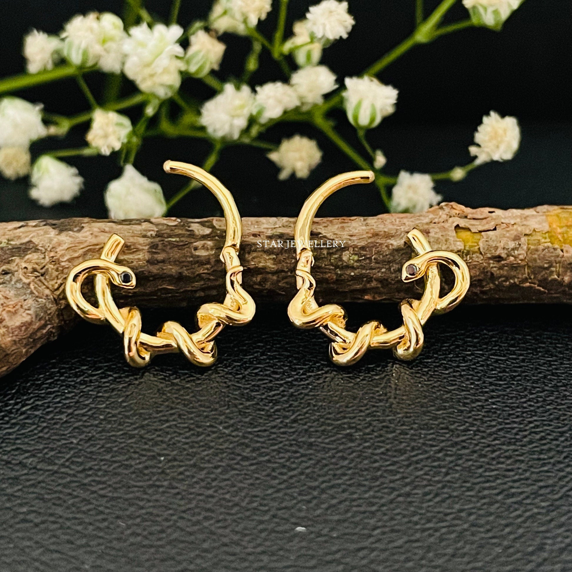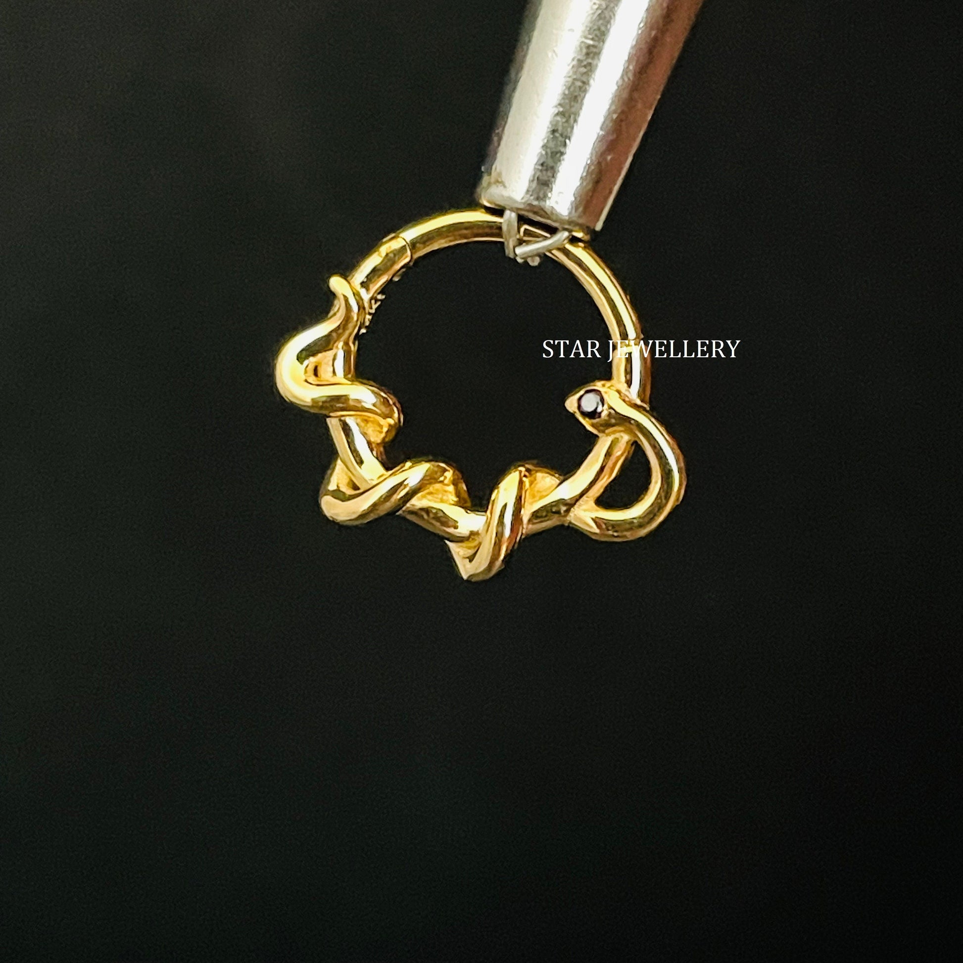 Solid Gold Snake Septum Piercing, 14K Solid Gold Snake Daith Piercing for her, Snake Daith Earring, Gold Snake Septum Nose Ring, Daith Ring